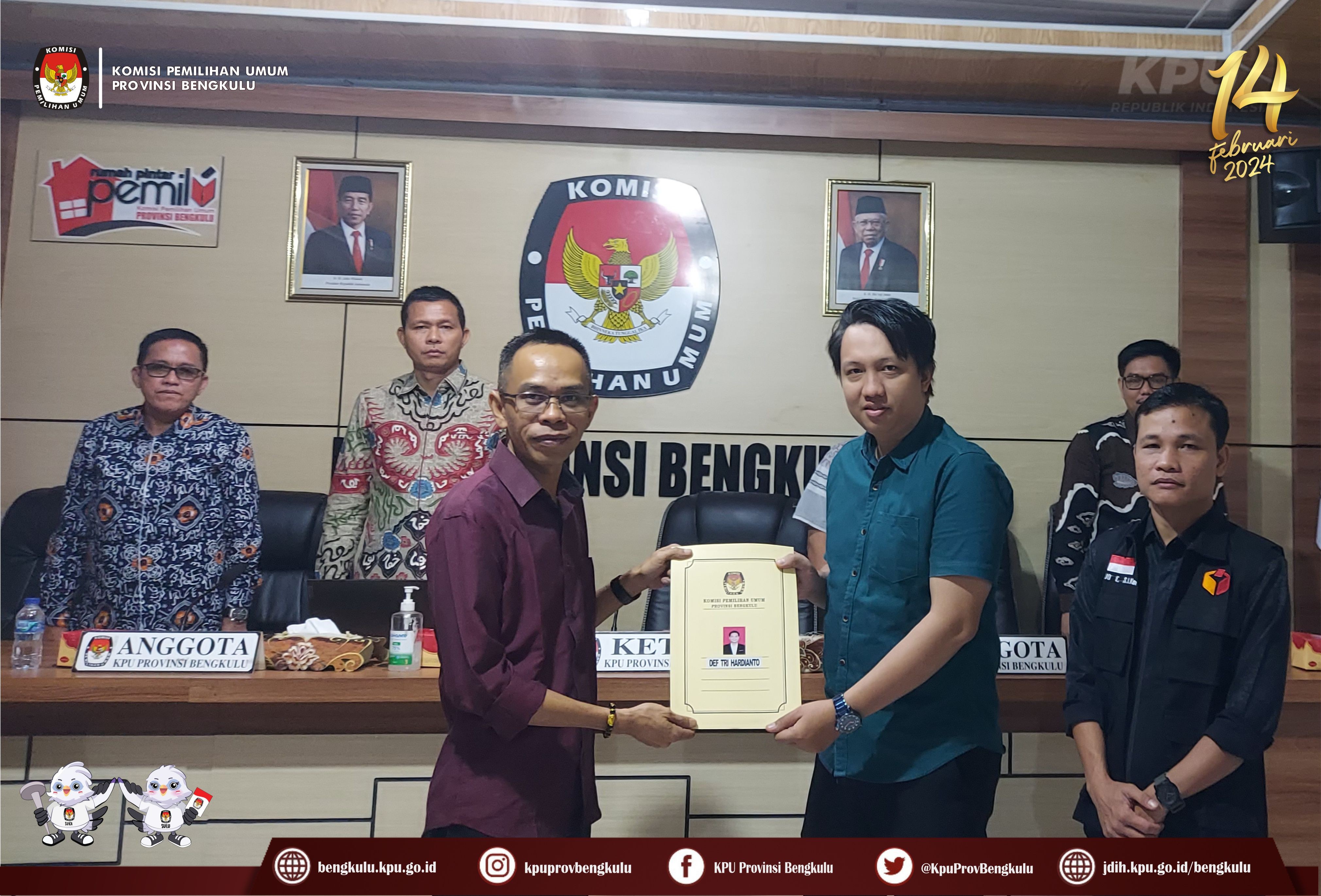 Penyampaian Berita Acara Hasil Verifikasi Administrasi Dokumen Persyaratan Bakal Calon Anggota Dewan Perwakilan Daerah (DPD) Daerah Pemilihan Provinsi Bengkulu