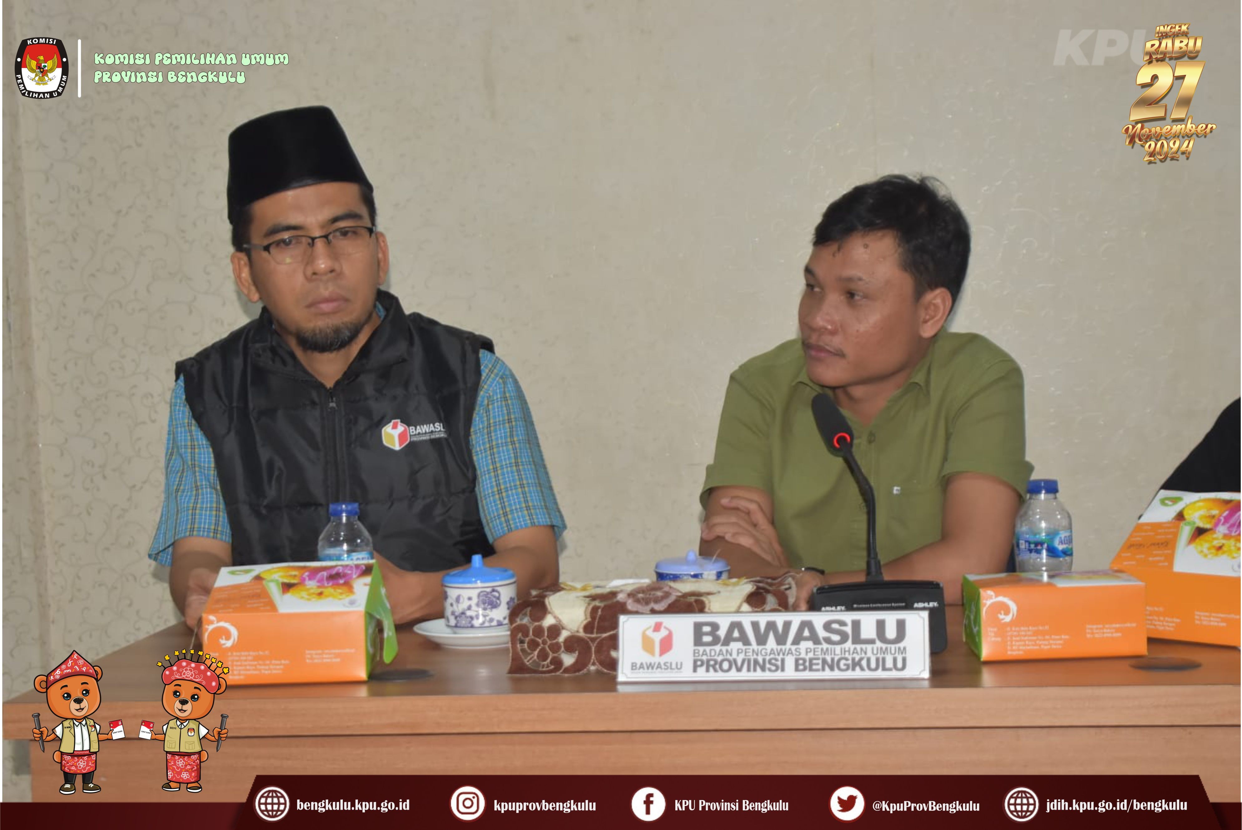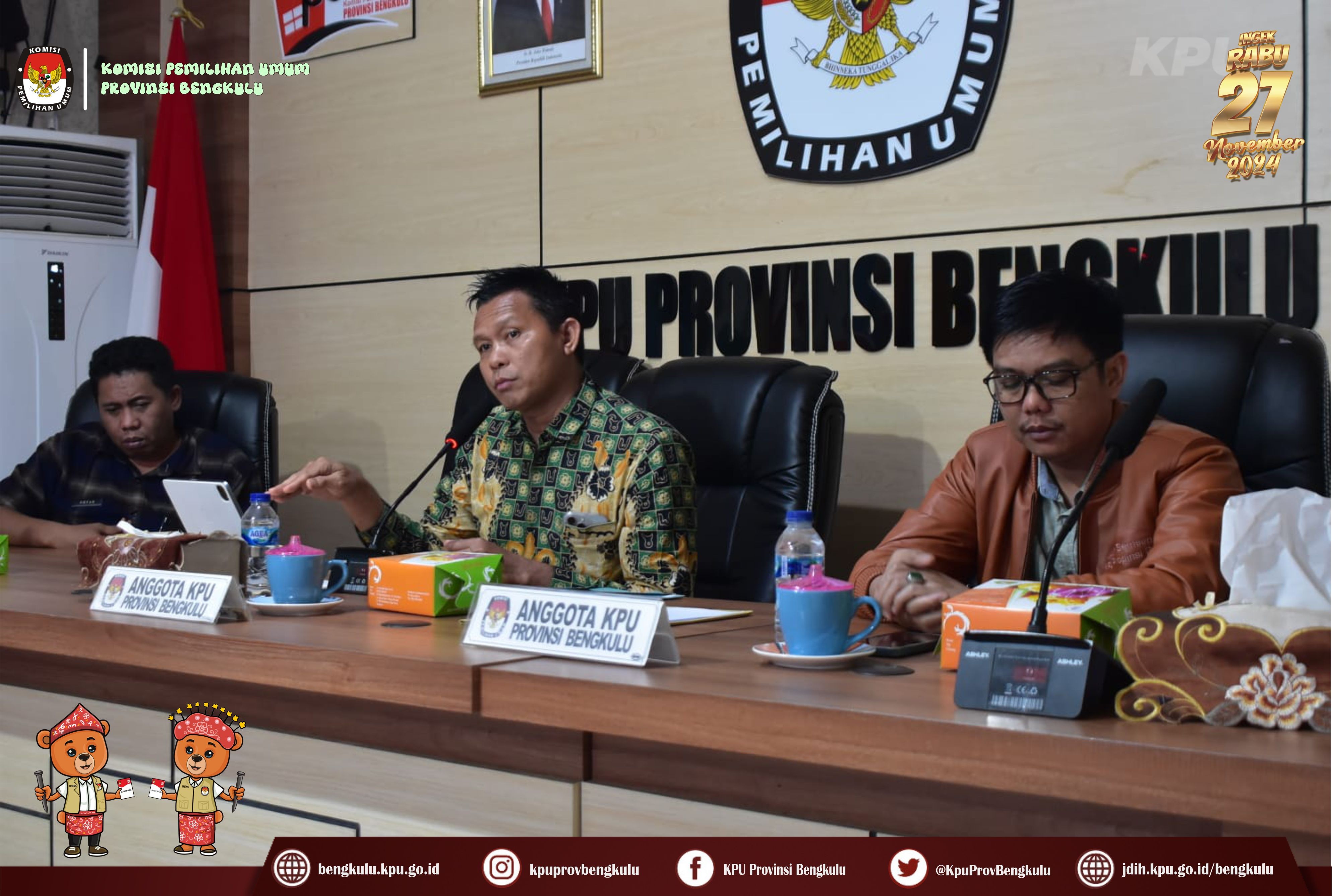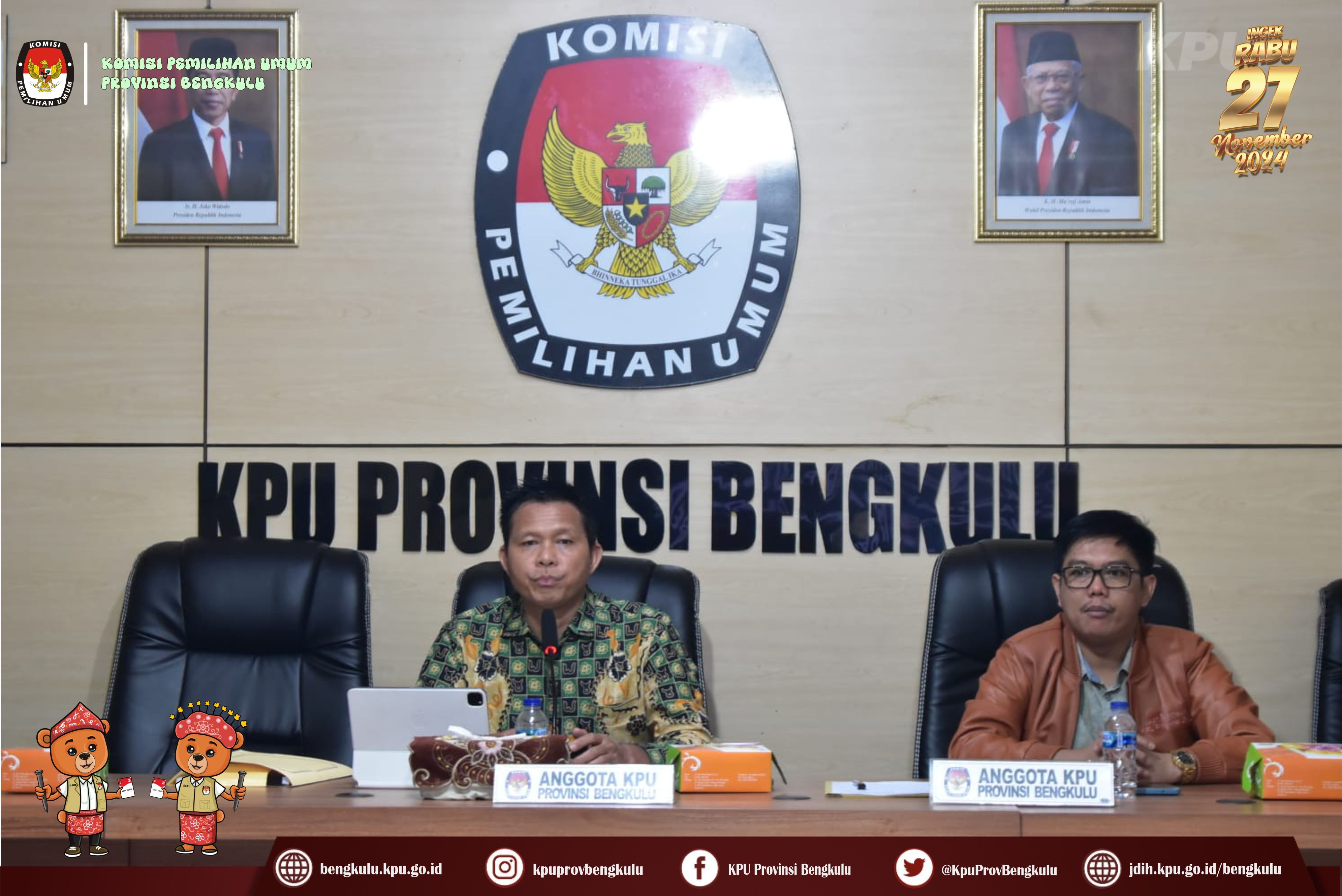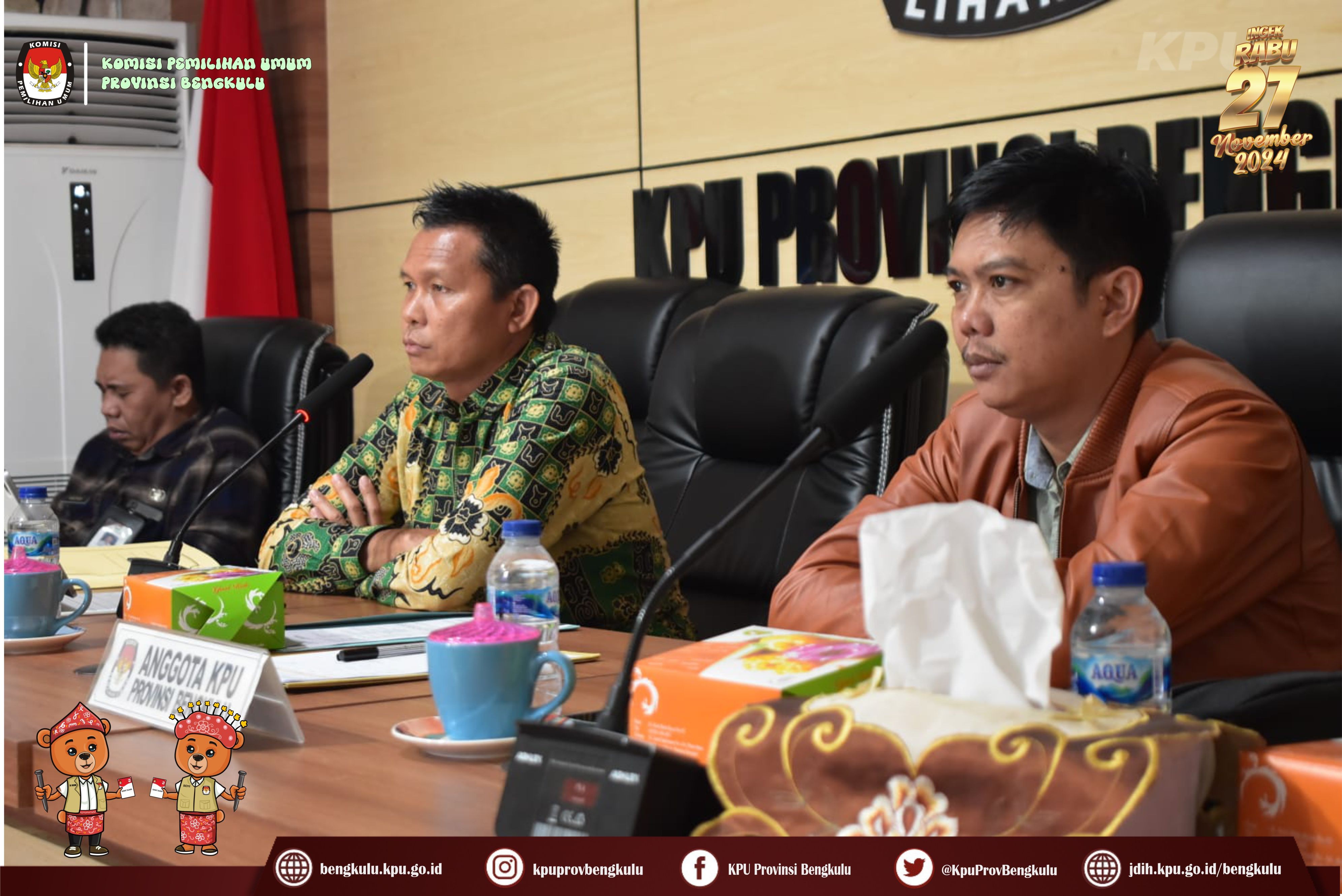 Bengkulu, bengkulu.kpu.go.id - Anggota KPU Provinsi Bengkulu Sarjan Efendi bersama Alpin Samsen serta Kabag THPS Oktan Huzaeiry melaksanakan Penyampaian Berita Acara Hasil Verifikasi Administrasi Perbaikan kedua Dokumen Syarat Dukungan Bakal Pasangan Calon Perseorangan Pemilihan Gubernur dan Wakil Gubernur Tahun 2024, Minggu (28/7/2024) di Ruang Audio Visual Rumah Pintar Pemilu. Penyampaian berita acara diserahkan langsung kepada Petugas Penghubung (LO) Bakal Pasangan Gubernur dan Wakil Gubernur Dempo Xler dan Ahmad Kanedi disaksikan oleh Anggota Bawaslu Provinsi Bengkulu Natijo Elem.