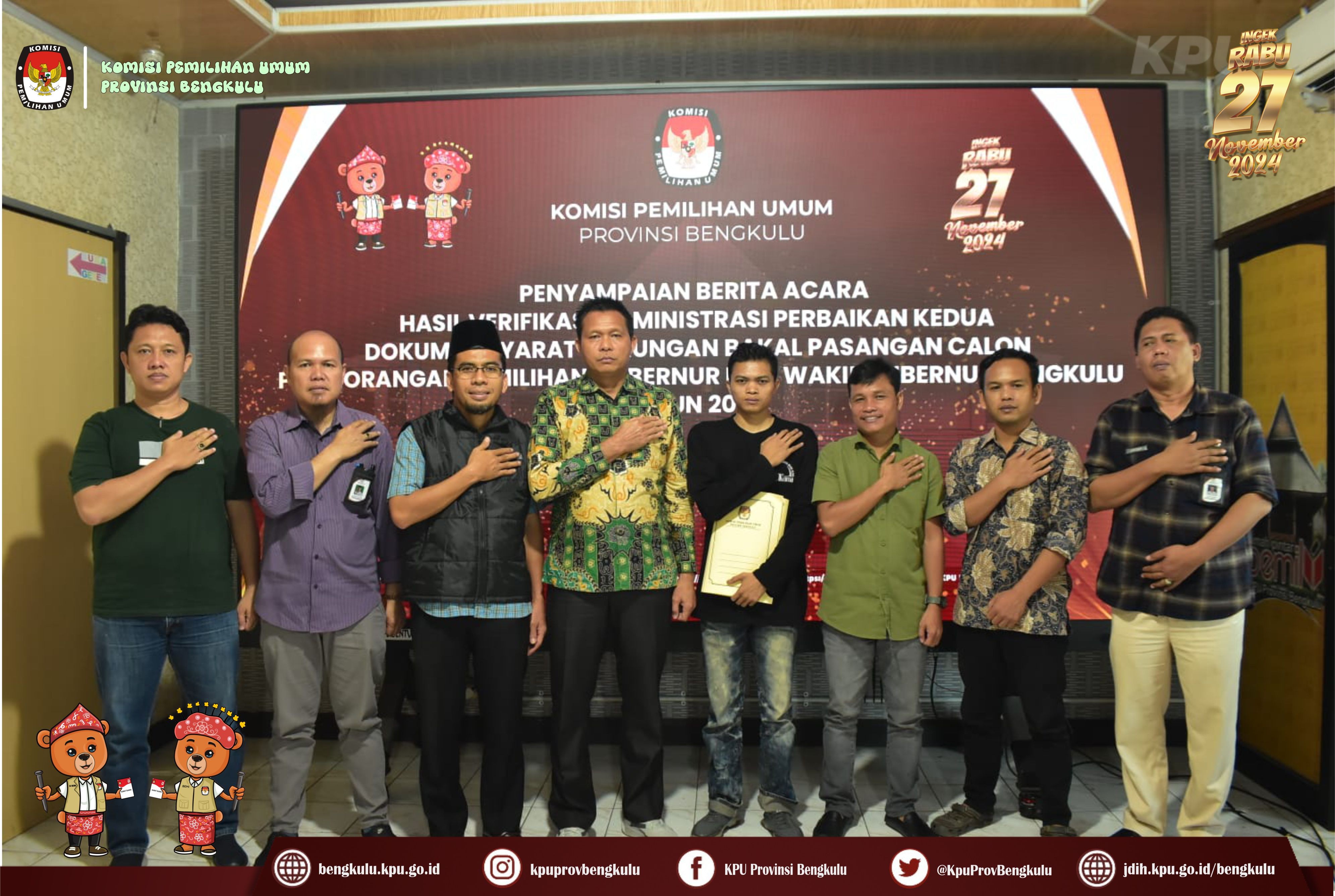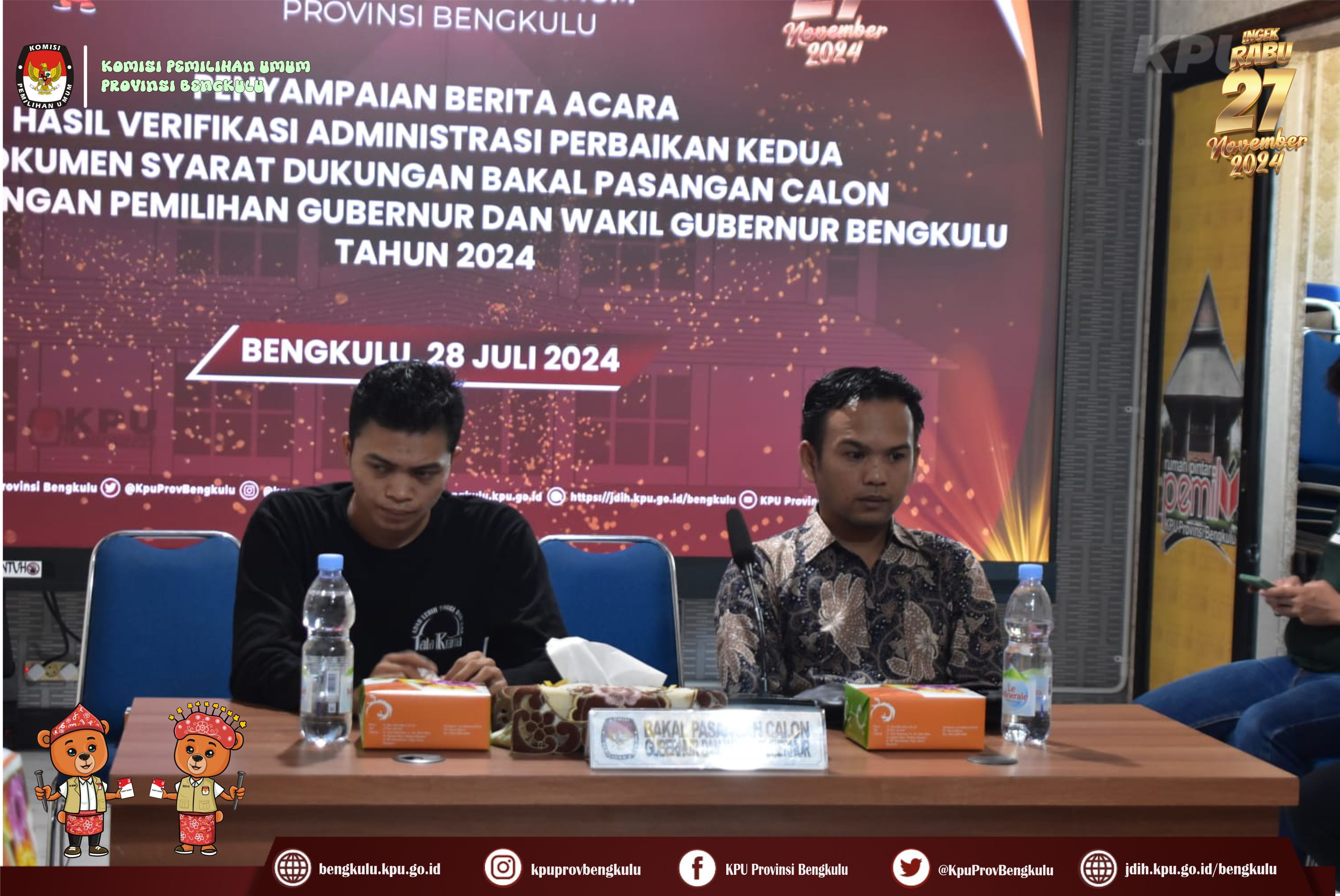 Penyampaian Berita Acara Hasil Verifikasi Administrasi Perbaikan kedua Dokumen Syarat Dukungan Bapaslon Perseorangan Pemilihan Gubernur dan Wakil Gubernur Tahun 2024