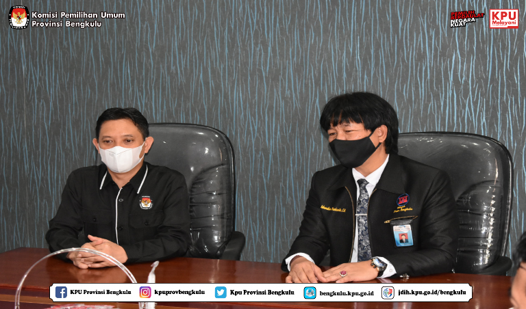 Ketua KPU Provinsi Bengkulu Irwan Saputra didampingi Sekretaris Kemas M Ajir, Kabag Keuangan Umum dan Logistik Sudirman serta Kasubbag Keuangan M Benny Eka Putra menyambangi BPKP Perwakilan Provinsi Bengkulu. Kedatangan KPU Provinsi Bengkulu ini dalam rangka penyampaian Laporan Penggunaan Dana Akhir Pemilihan Gubernur dan Wakil Gubernur Bengkulu Tahun 2020 sekaligus penyerahan Piagam Penghargaan sebagai bentuk apresiasi KPU Provinsi Bengkulu kepada BPKP Perwakilan Provinsi Bengkulu. Jajaran KPU Provinsi Bengkulu diterima dan disambut hangat oleh Kepala BPKP Perwakilan Provinsi Bengkulu Iskandar Novianto dan Jajarannya pada Selasa (29/6) di ruang kerjanya.