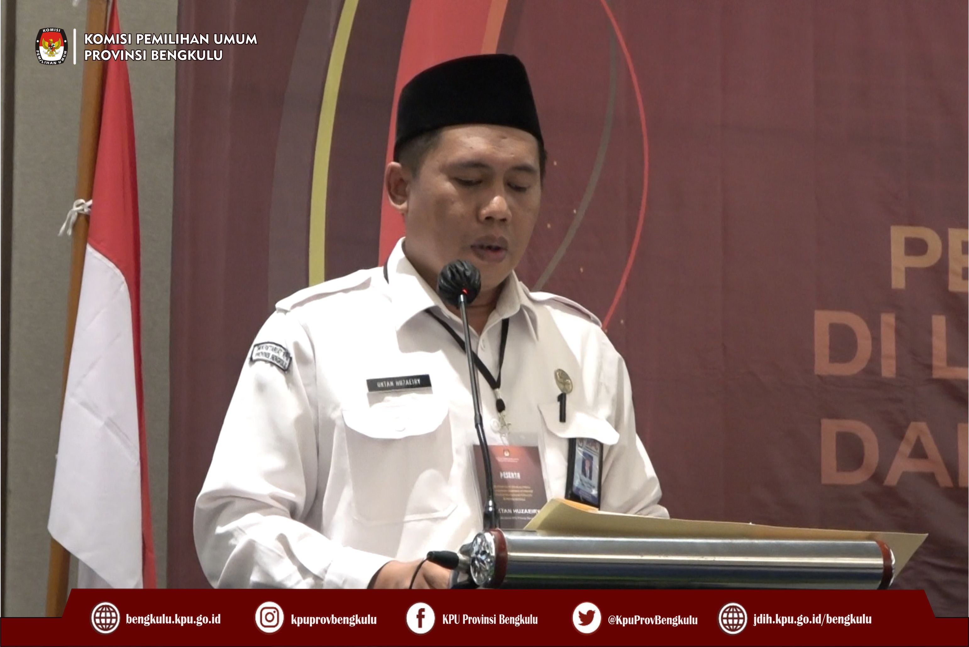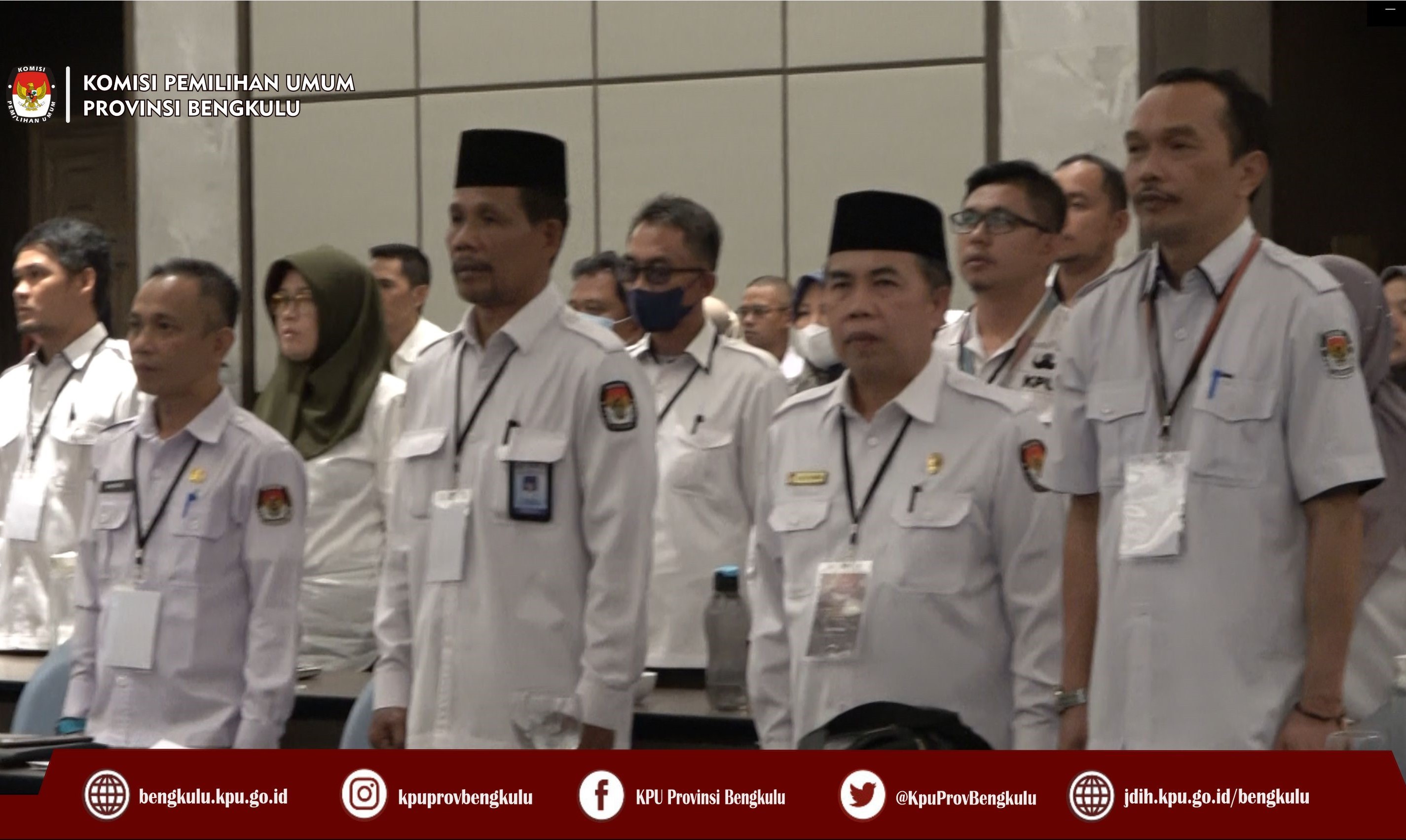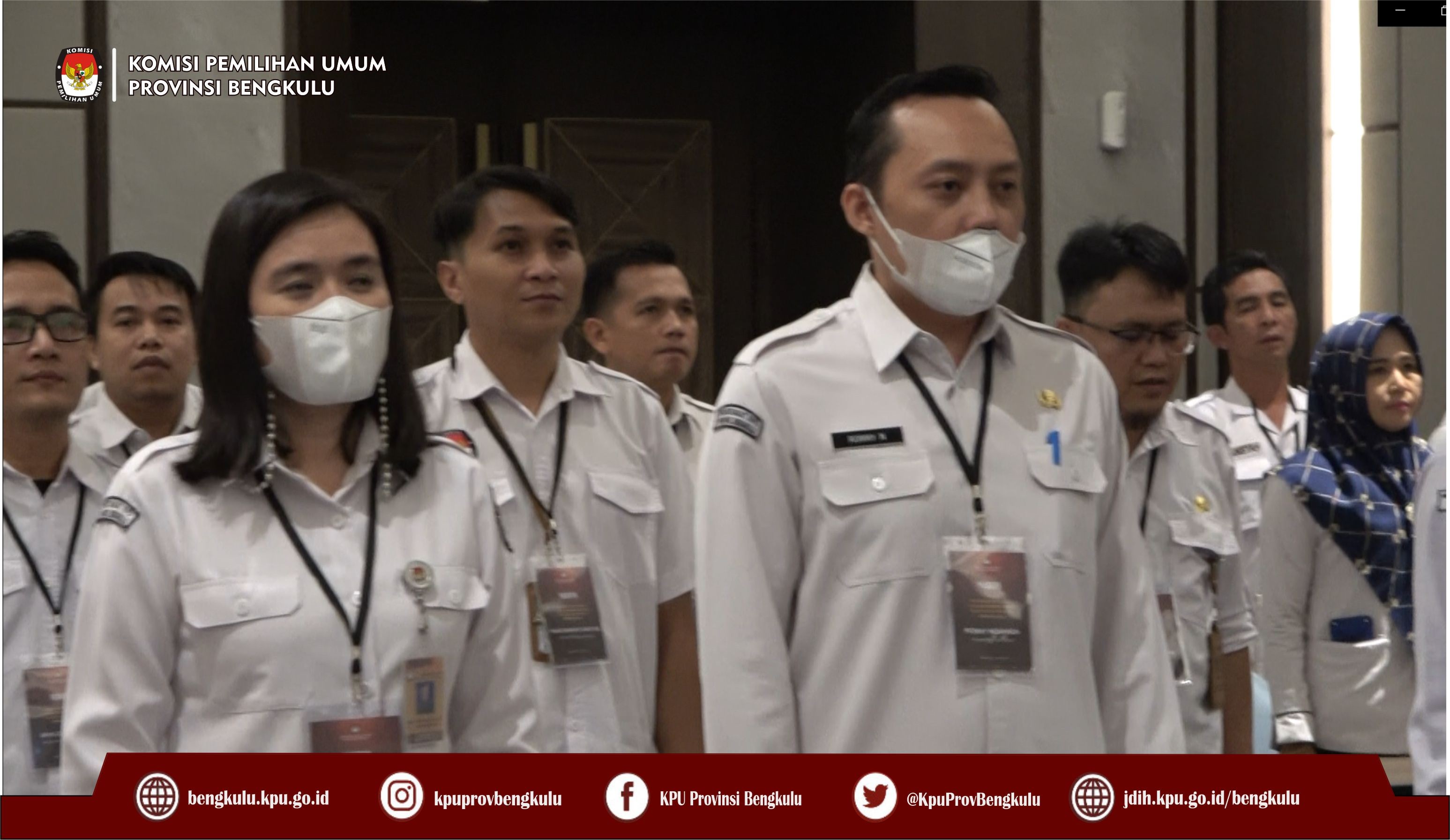 Setelah itu, dilanjutkan dengan pembacaan pakta integritas oleh seluruh ASN di Lingkungan Sekretariat KPU Provinsi dan Sekretariat KPU Kabupaten/Kota Se-Provinsi Bengkulu, disaksikan oleh Ketua KPU Provinsi Bengkulu Bapak Irwan Saputra, Anggota KPU Provinsi Bengkulu Bapak Eko Sugianto, Ibu Siti Baroroh, Bapak Darlinsyah, Bapak Emex Verzoni dan Sekretaris Bapak Kemas M Ajir.