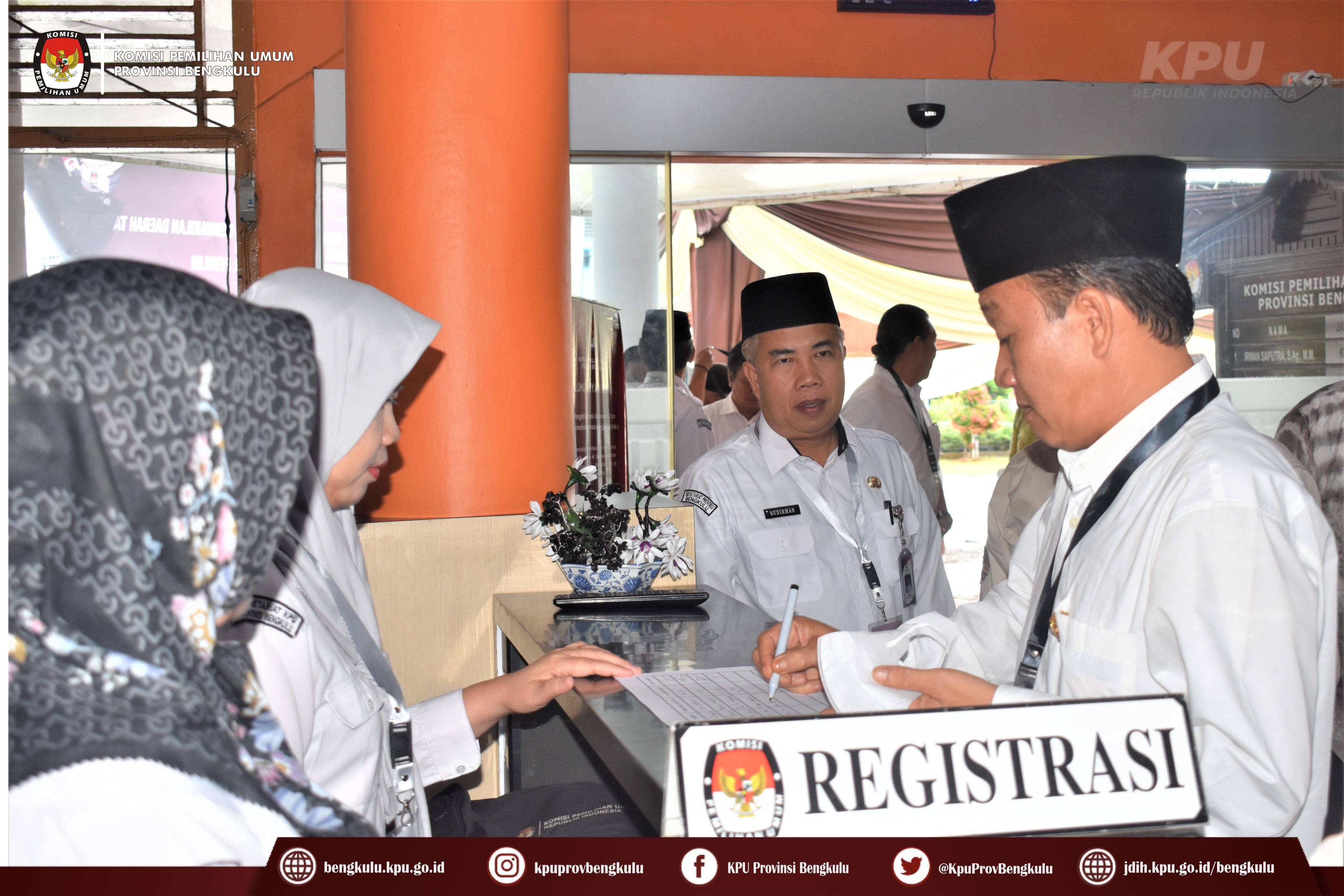 Bakal Calon Edi Agusdin menyerahkan dukungan minimal pemilih bersama Petugas Penghubung, Admin, dan Tim Pendukung kepada Ketua KPU Provinsi Bengkulu Irwan Saputra disaksikan Sekretariat Bawaslu Provinsi Bengkulu. Selanjutnya Operator SILON melakukan pemeriksaan berkas diserahkan tersebut. Kegiatan penyerahan dukungan tersebut disiarkan melalui live streaming youtube KPU Provinsi Bengkulu. Selain itu, KPU Provinsi Bengkulu juga menyiapkan wadah bagi bakal calon untuk konferensi pers.