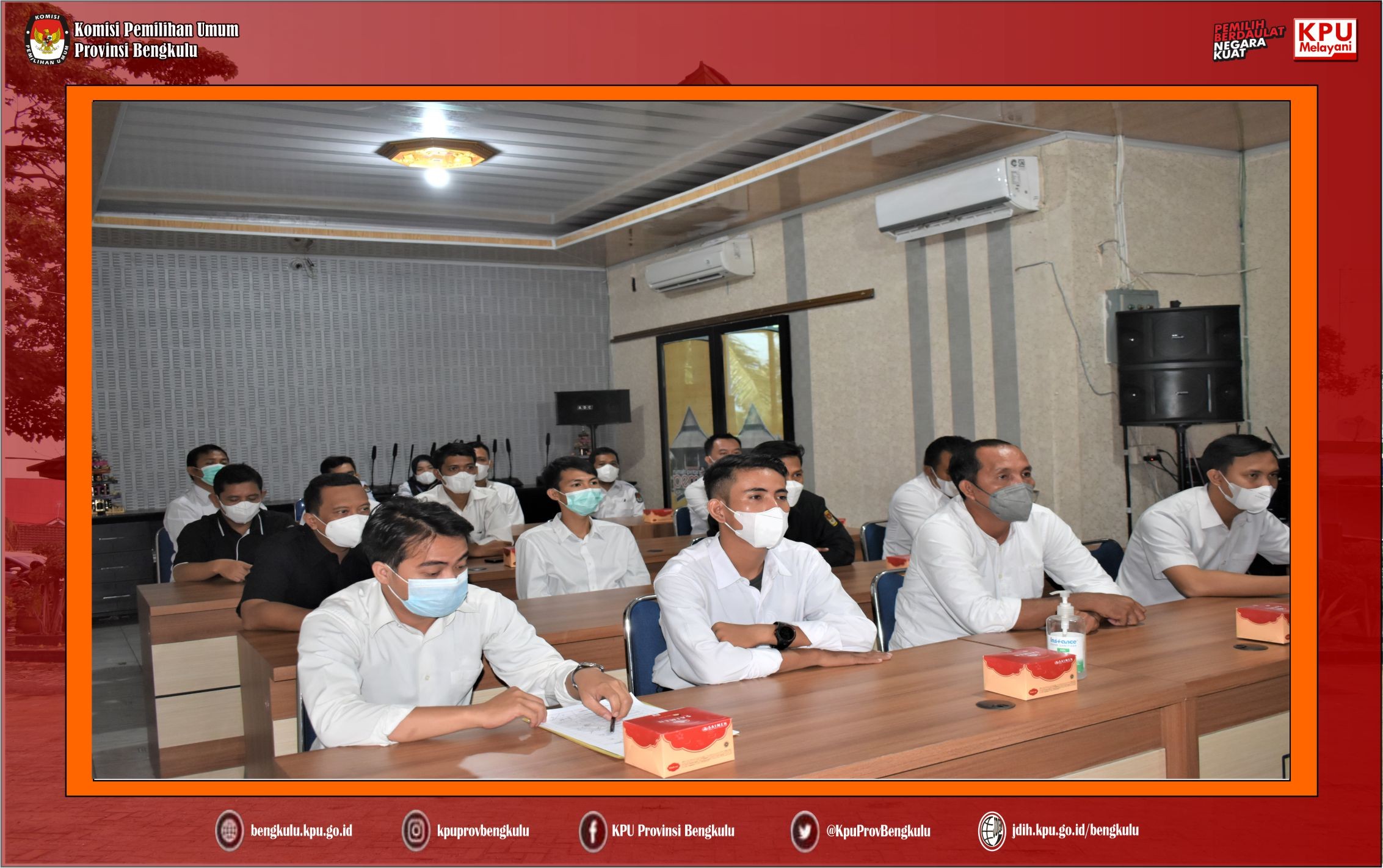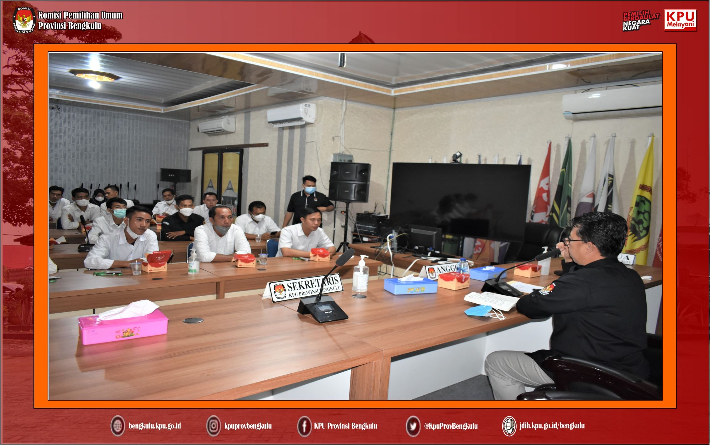 #TemanPemilih, Ketua Divisi Sosdiklih Parmas dan SDM KPU Provinsi Bengkulu Darlinsyah, Sekretaris Kemas M Ajir, Kabag Keuangan Umum Logistik Sudirman dan Kabag Teknis Penyelenggaraan pemilih, Partisipasi, Hubungan Masyarakat, Hukum dan SDM Oktan Huzaeiry memberikan pengarahan awal dan Pengantar Tugas kepada Pegawai Pemerintah Non Pegawai Negeri (PPNPN) Sekretariat KPU Provinsi Bengkulu pada Rabu (12/1) bertempat di Ruang Audio Visual Rumah Pintar Pemilu. Dalam arahannya Darlinsyah dan Kemas M Ajir menegaskan dan menekankan bahwa PPNPN Sekretariat KPU Provinsi Bengkulu untuk bekerja secara profesional, berintegritas, dan loyalitas sesuai dengan tugas dan bidang masing-masing. Sesuai dengan Keputusan KPU Republik Indonesia Nomor 652/SDM.01-Kpt/05/SJ/VI/2021 ada 4 (empat) bidang PPNPN, yaitu Keamanan, Pengemudi, Pramubakti dan Operasional Teknis dan Administrasi.