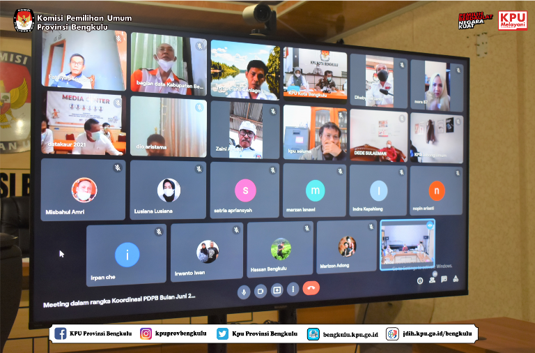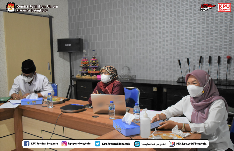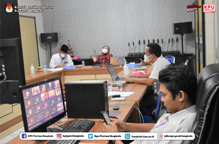Pada Senin (28/6) Anggota KPU Provinsi Bengkulu Siti Baroroh didampingi Kabag Program Data Organisasi dan SDM Hamzah serta Kasubbag Program dan Data Azmiyatun menggelar Rapat Koordinasi Pemutakhiran Data Pemilih Berkelanjutan (PDPB) Bulan Juni Tahun 2021. Rapat koordinasi ini diikuti Ketua, Anggota Divisi Program Data dan Organisasi dan Operator Sidalih KPU Kabupaten/Kota Se-Provinsi Bengkulu.