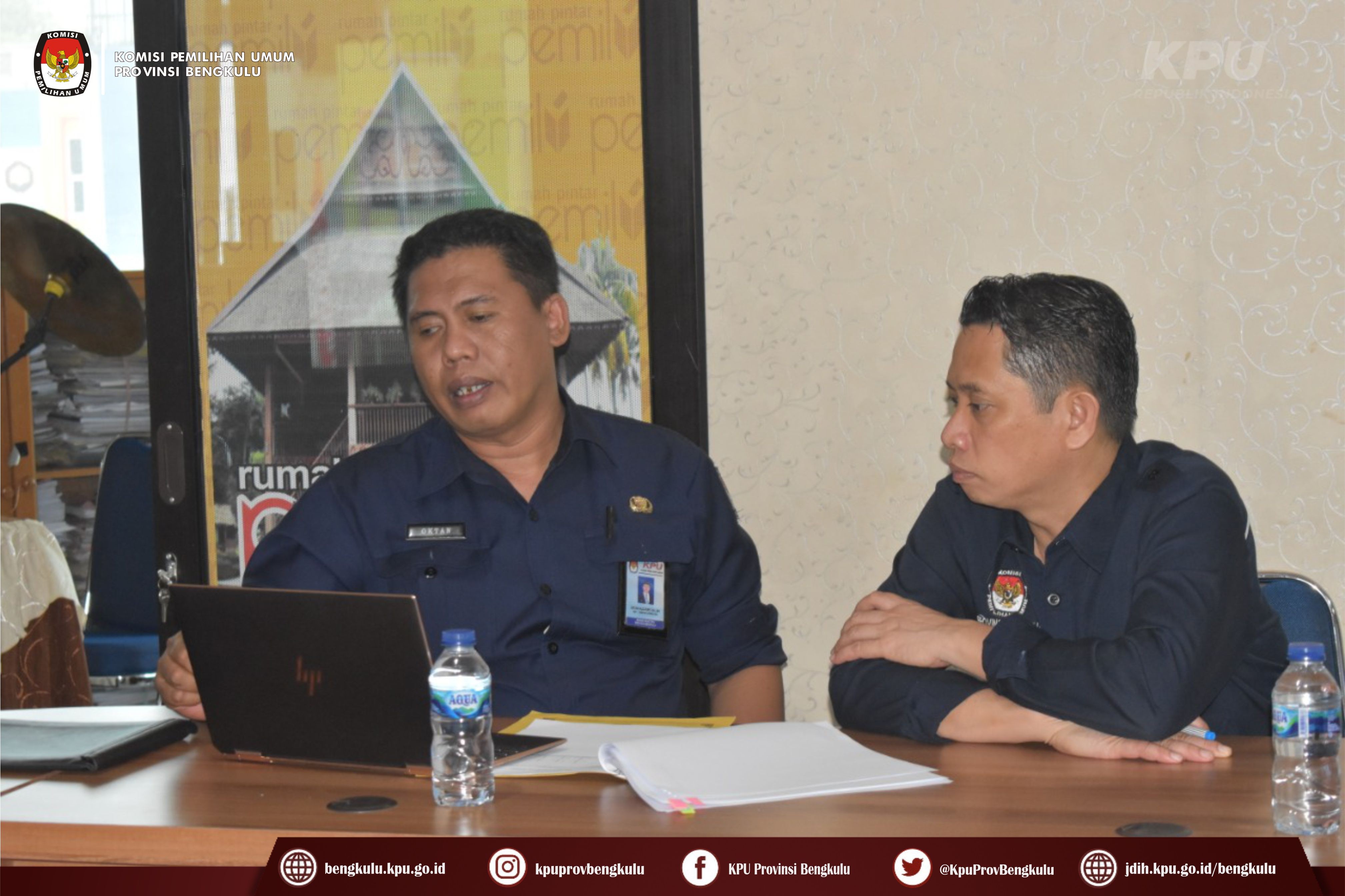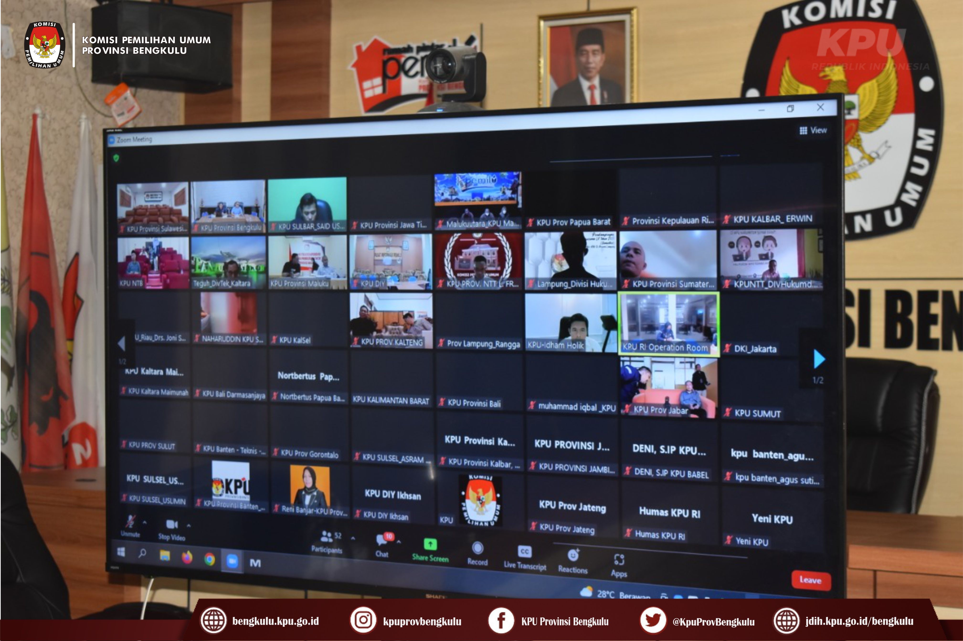Bengkulu-bengkulu.kpu.go.id, Ketua KPU Provinsi Bengkulu Irwan Saputra dan Anggota KPU Provinsi Bengkulu Eko Sugianto, Siti Baroroh dan Emex Verzoni serta Kabag TPPPHHS Oktan Huzaeiry mengikuti Rapat Koordinasi Pelaksanaan Verifikasi Dokumen Persyaratan Partai Politik Calon Peserta Pemilu Tahun 2024 yang diselenggarakan secara daring oleh KPU Republik Indonesia, Selasa (30./8). Kegiatan rapat koordinasi diikuti KPU Provinsi se-Indonesia. Rapat koordinasi diisi dengan arahan Anggota KPU RI Idham Holik dan Betti Ipsilon Idroos.