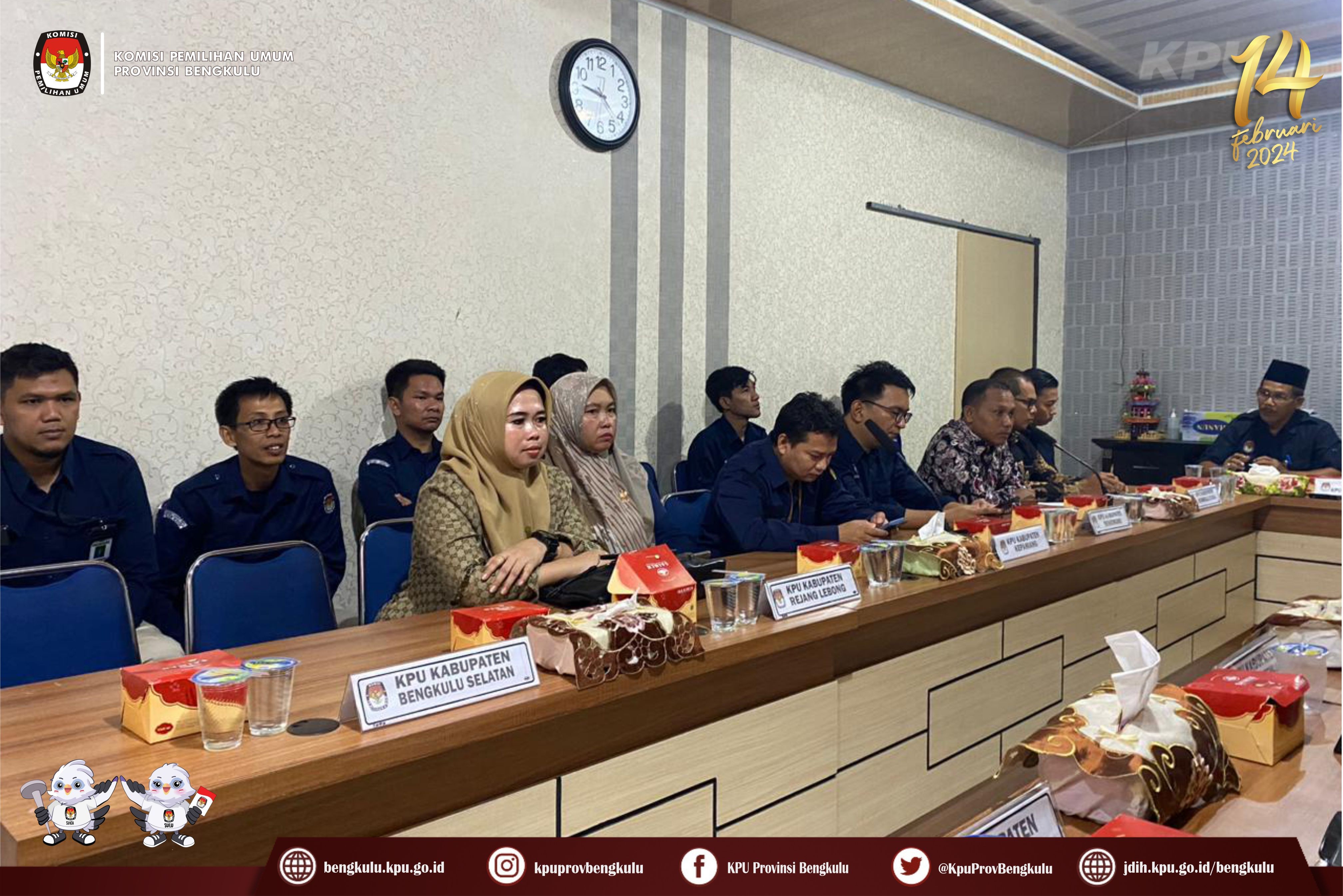 Bengkulu-bengkulu.kpu.go.id, Anggota KPU Provinsi Bengkulu Siti Baroroh, didampingi Kabag Perencanaan Data dan Informasi Hamzah serta Kasubbag Data dan Informasi Yunita Dika Fitri membuka Rapat Kerja Evaluasi Pelaksanaan Penetapan daftar Pemilih Sementara Hasil Perbaikan (DPSHP) Pemilu Tahun 2024 pada Selasa (16/5/2023) di Kantor KPU Provinsi Bengkulu. Hadir dalam rapat tersebut adalah Anggota Divisi Perencanaan Data dan Informasi, Kasubbag Perencanaan Data dan Informasi dan Admin/Operator Sidalih KPU Kabuaten/Kota se-Provinsi Bengkulu. Dalam kesempatan itu, Siti menyampaikan ucapan terima kasih dan apresiasi kepada KPU Kabupaten/Kota yang telah bekerja dengan baik dalam Pelaksanaan Penetapan daftar Pemilih Sementara Hasil Perbaikan (DPSHP) Pemilu Tahun 2024. Rangkaian acara diisi dengan penyampaian laporan DPSHP di Kabupaten/Kota secara bergantian.