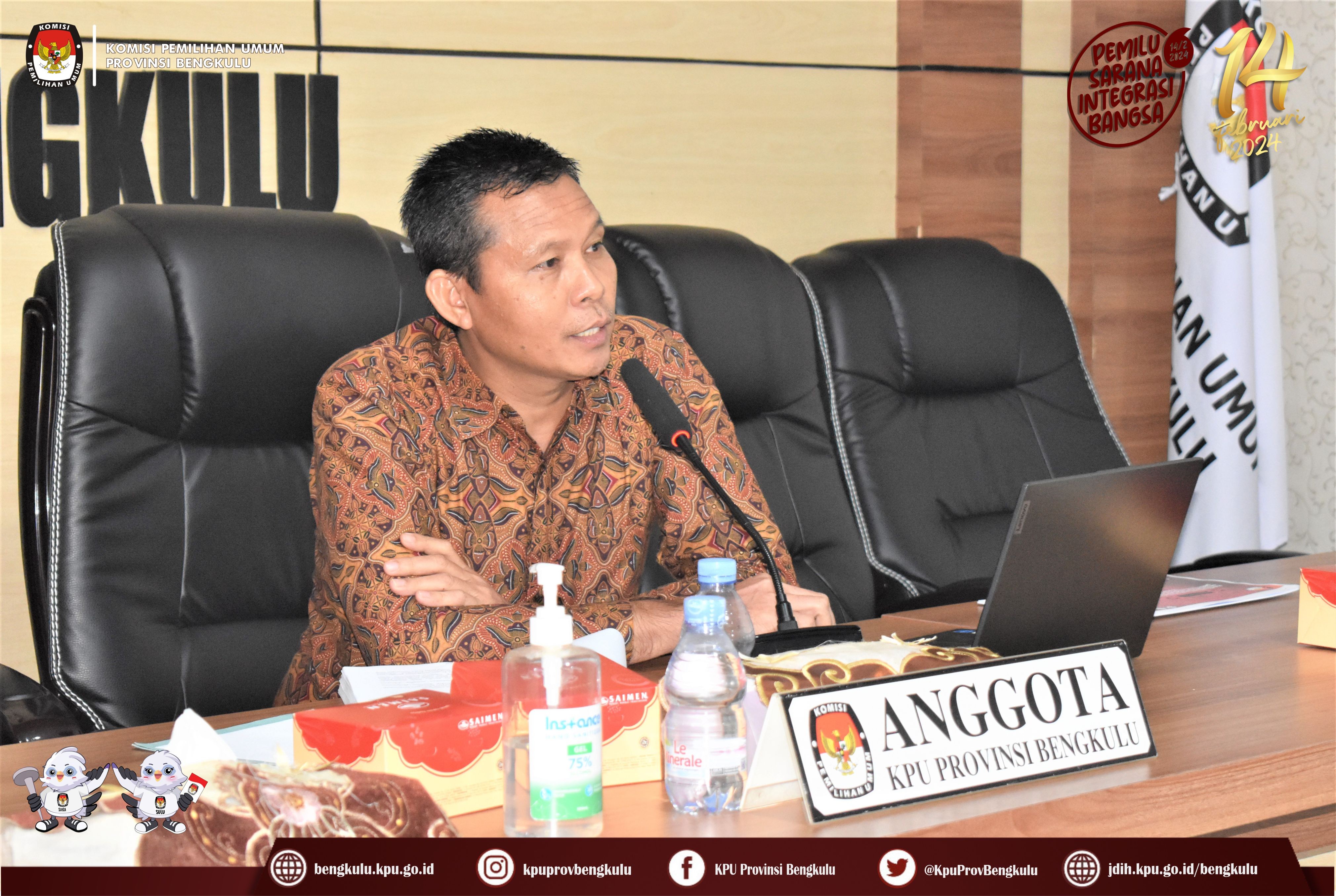 Rapat Koordinasi dalam rangka Tahapan Pencermatan Rancangan DCS Anggota DPRD Provinsi Bengkulu pada Pemilu Tahun 2024
