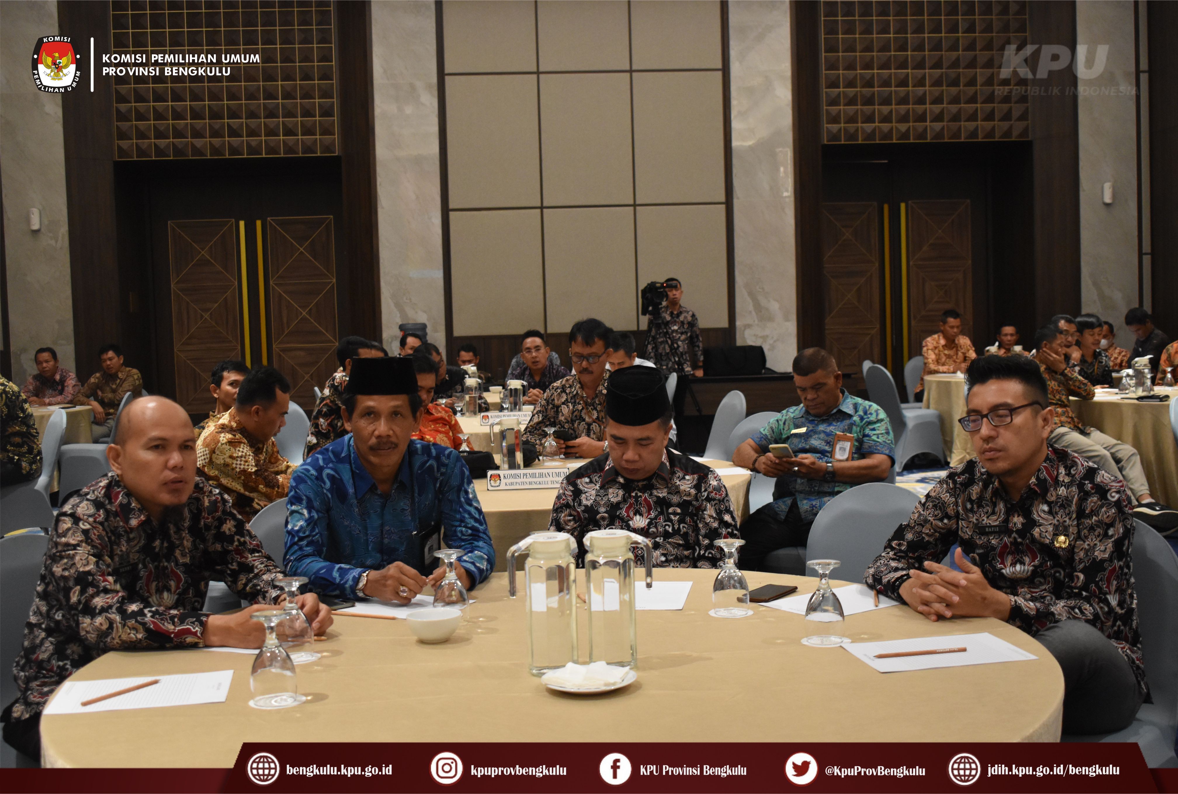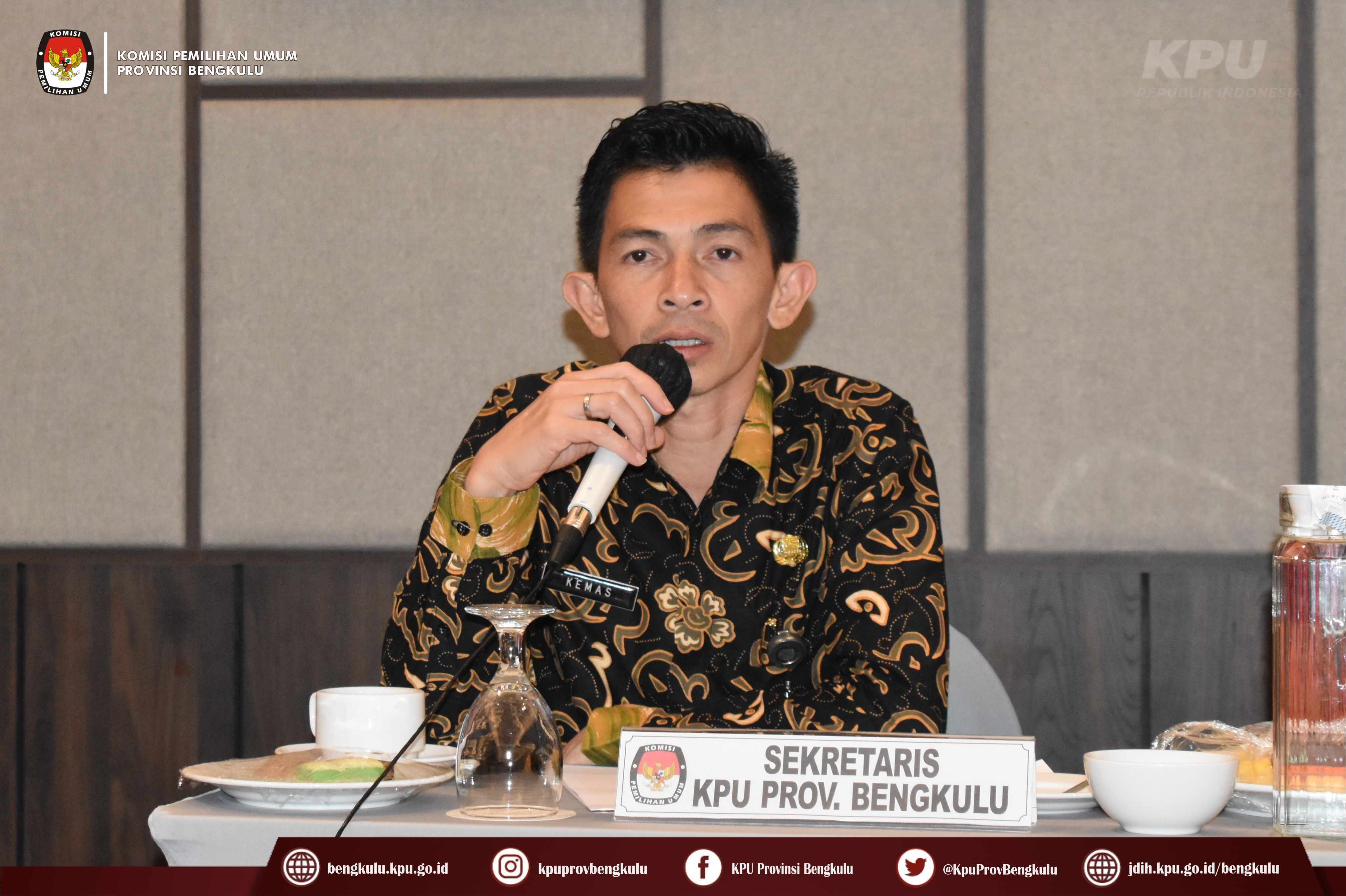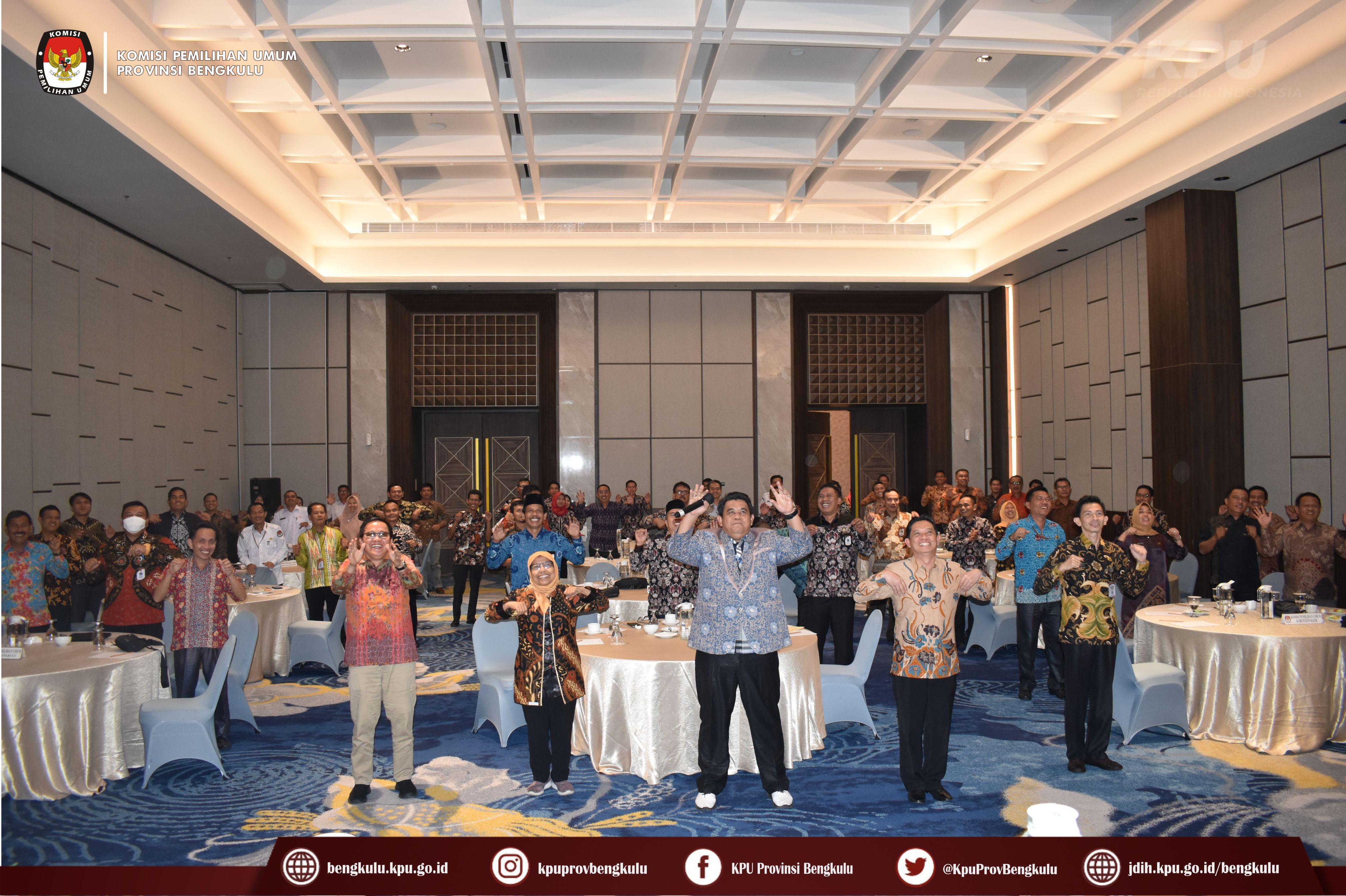 Bengkulu-bengkulu.kpu.go.id, Ketua KPU Provinsi Bengkulu Irwan Saputra dan Anggota Siti Baroroh, Darlinsyah dan Emex Verzoni serta Sekretaris Kemas Mohammad Ajir membuka acara Rapat Koordinasi Divisi Sosialisasi, Pendidikan Pemilih dan Partisipasi Masyarakat Tingkat Provinsi Bengkulu Tahun 2022 di Mercure Hotel Bengkulu, Kamis (6/10). Kegiatan ini diikuti oleh Ketua, Anggota Divisi Sosdiklih Parmas dan SDM, Sekretaris, Kasubbag Teknis Penyelenggaraan Pemilu Partisipasi dan Hubungan Masyarakat dan Operator/Pengelola Media Sosial.