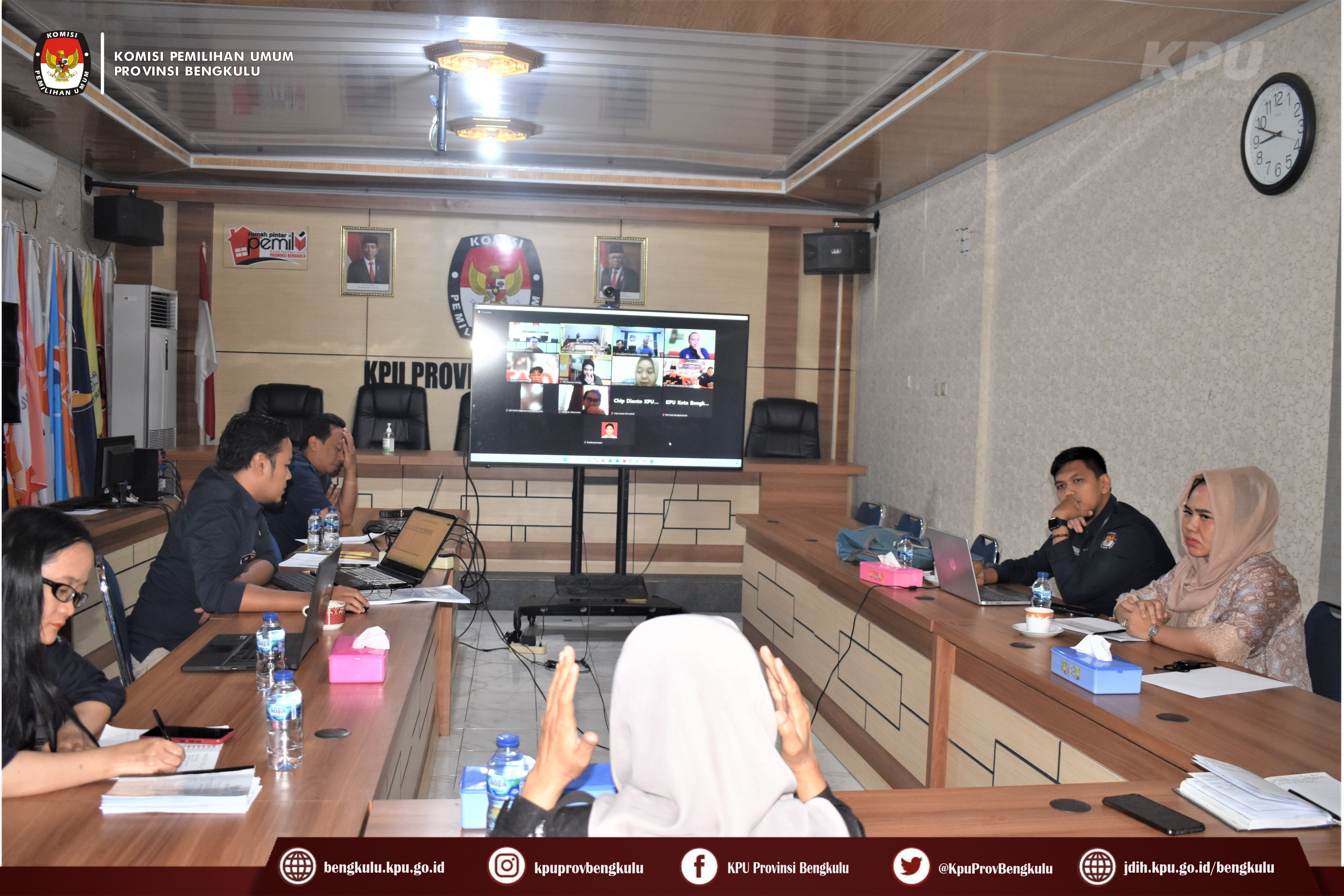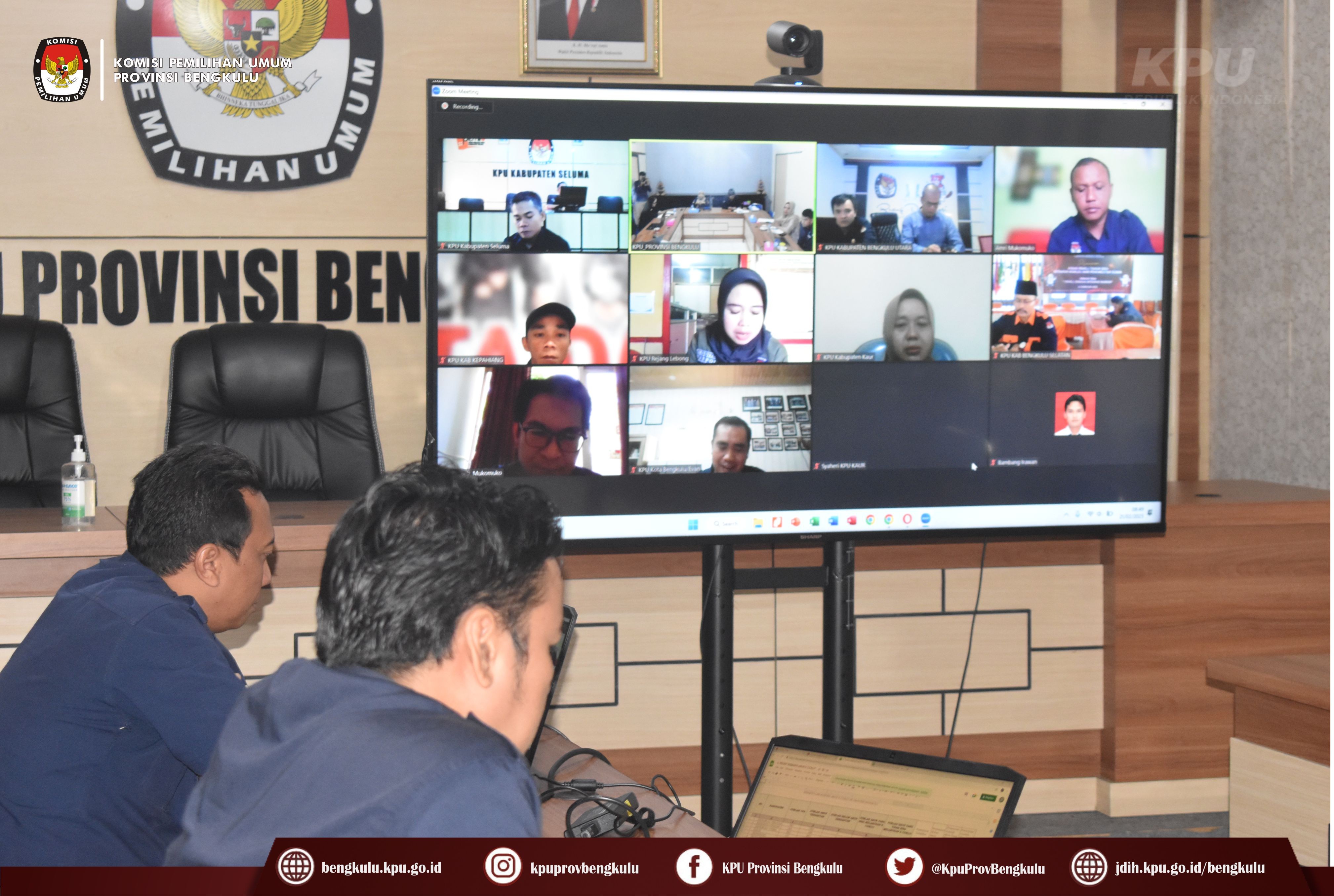 Bengkulu-bengkulu.kpu.go.id, Anggota KPU Provinsi Bengkulu Siti Baroroh membuka Rapat Koordinasi Laporan Tahap 1 (satu) Pelaksanaan Coklit Pemilu Tahun 2024 didampingi Kabag Perencanaan Data dan Informasi Hamzah dan Kasubbag Data dan Informasi Yunita Dika Fitri secara daring (zoom meeting) pada Selasa (21/2/2023). Peserta rapat koordinasi adalah Anggota Divisi Perencanaan Data dan Informasi, Kasubbag dan Admin/Operator Sidalih KPU Kabupaten/Kota se-Provinsi Bengkulu. Dalam kesempatan itu, Siti Baroroh menyampaikan bahwa pelaksanaan coklit telah berlangsung 10 (sepuluh) hari sejak tanggal 12 s.d 21 Februari 2023, untuk mengetahui progres coklit yang telah berjalan tersebut maka dilakukan rapat koordinasi sekaligus diskusi terkait pelaksanaan coklit di kabupaten/kota.
