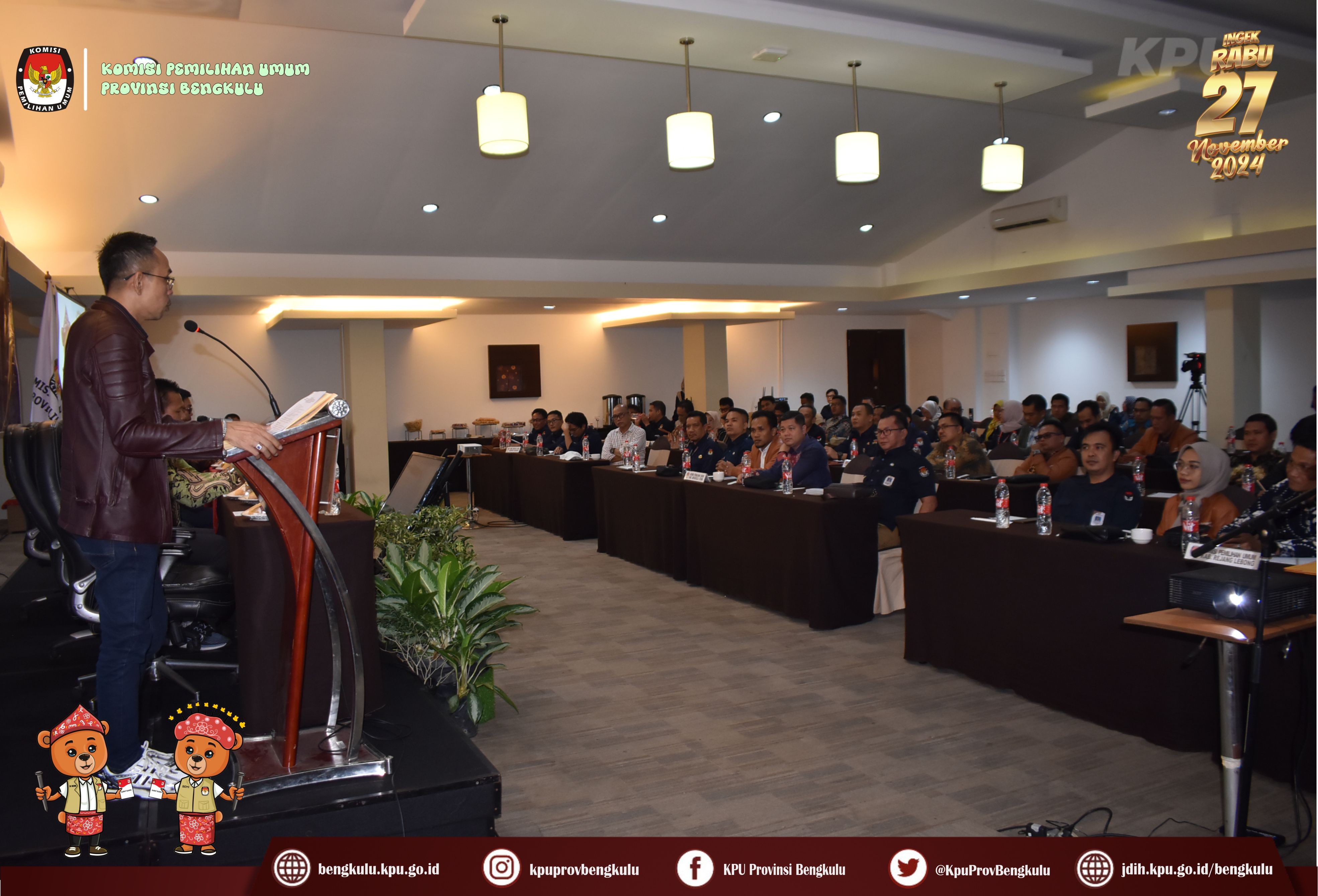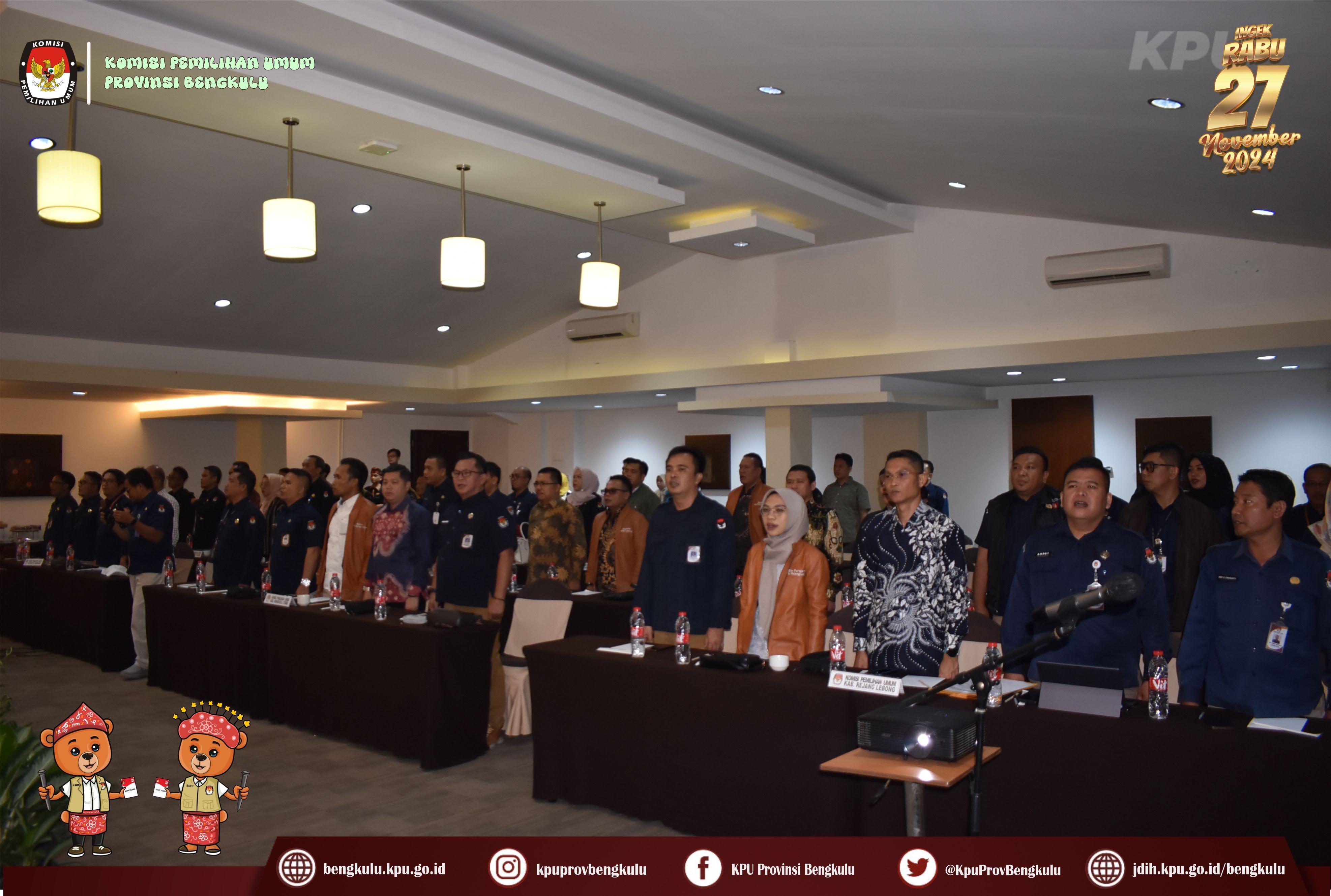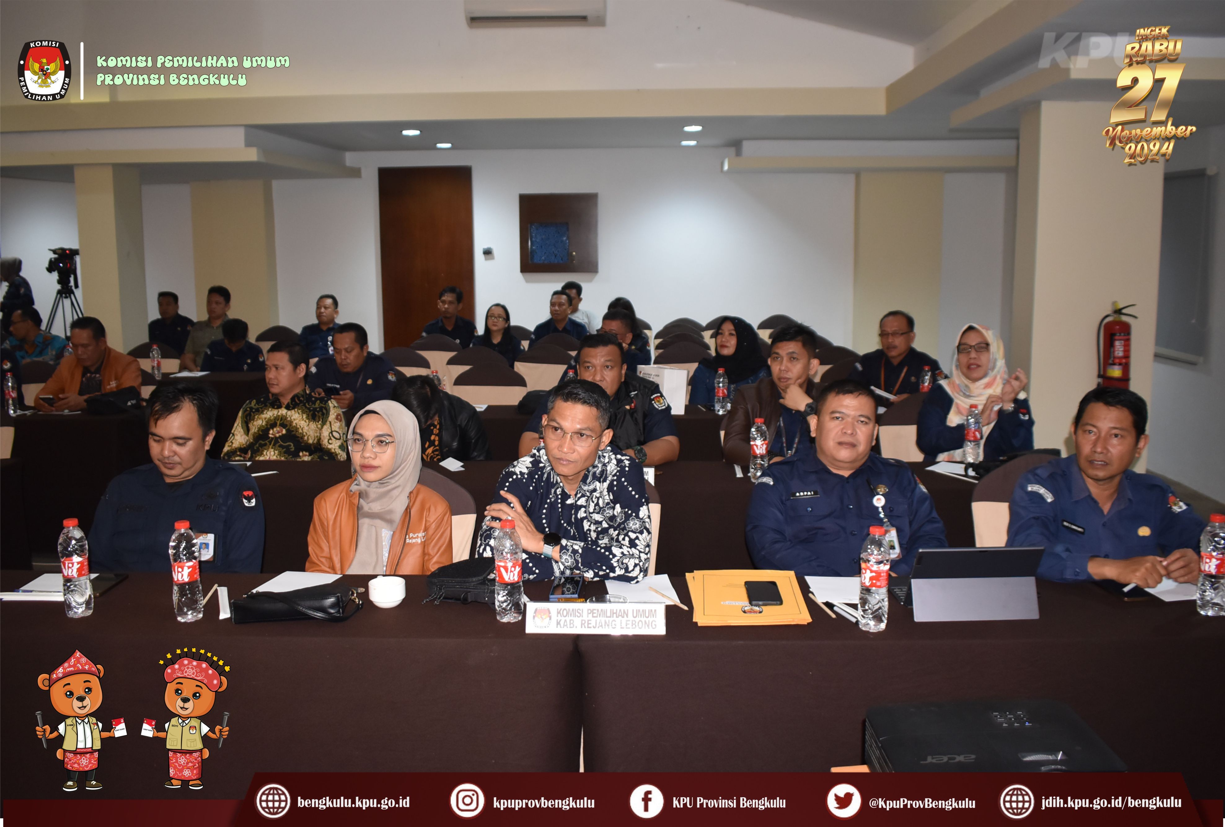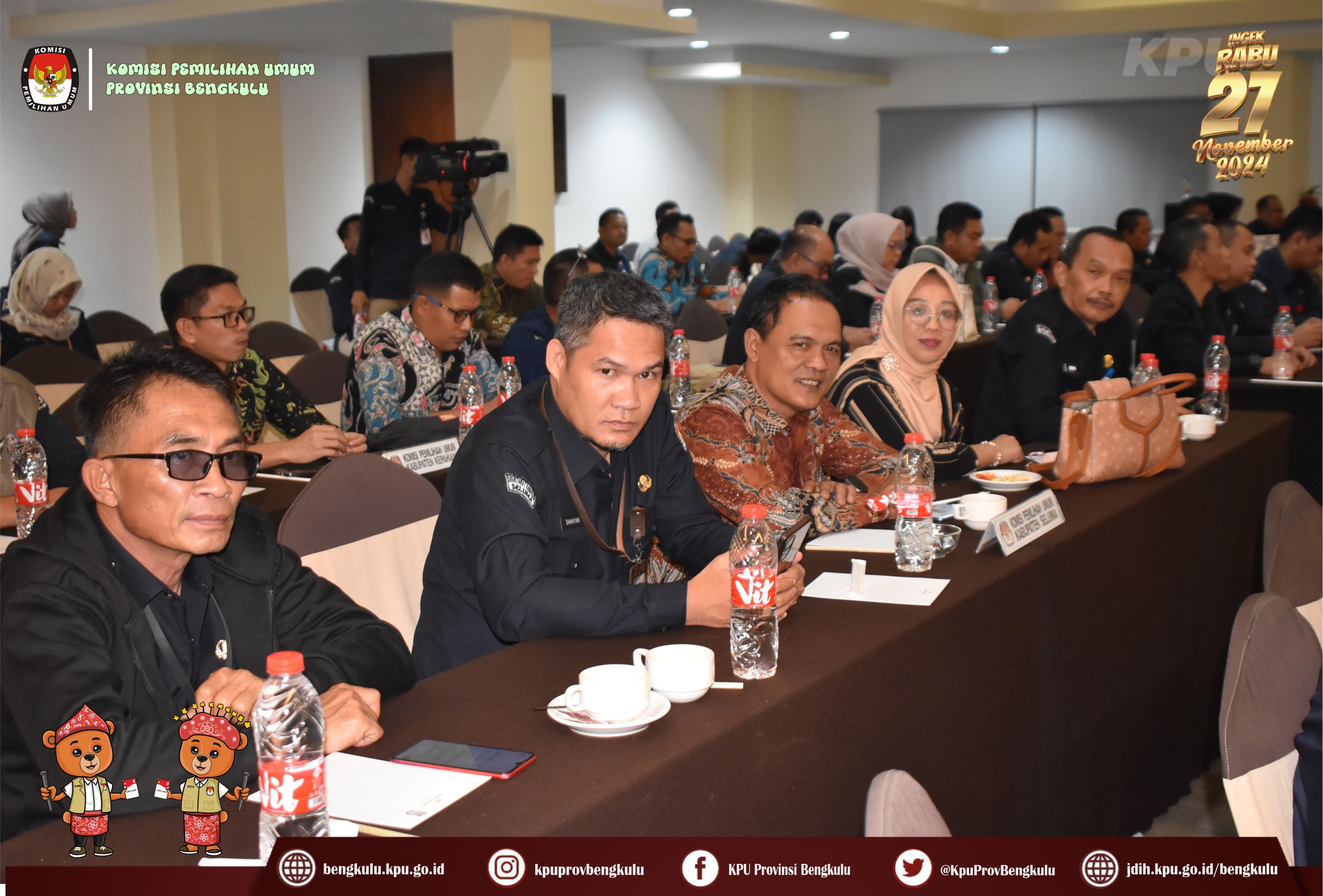 Turut Hadir Ketua, Anggota yang membidangi Divisi Teknis Penyelenggaraan, Sekretaris, Kasubbag Keuangan Umum dan Logstik, dan Kasubbag Teknis Penyelenggaraan Pemilu Partisipasi dan Hubungan Masyarakat KPU Kabupaten/Kota Se-Provinsi Bengkulu