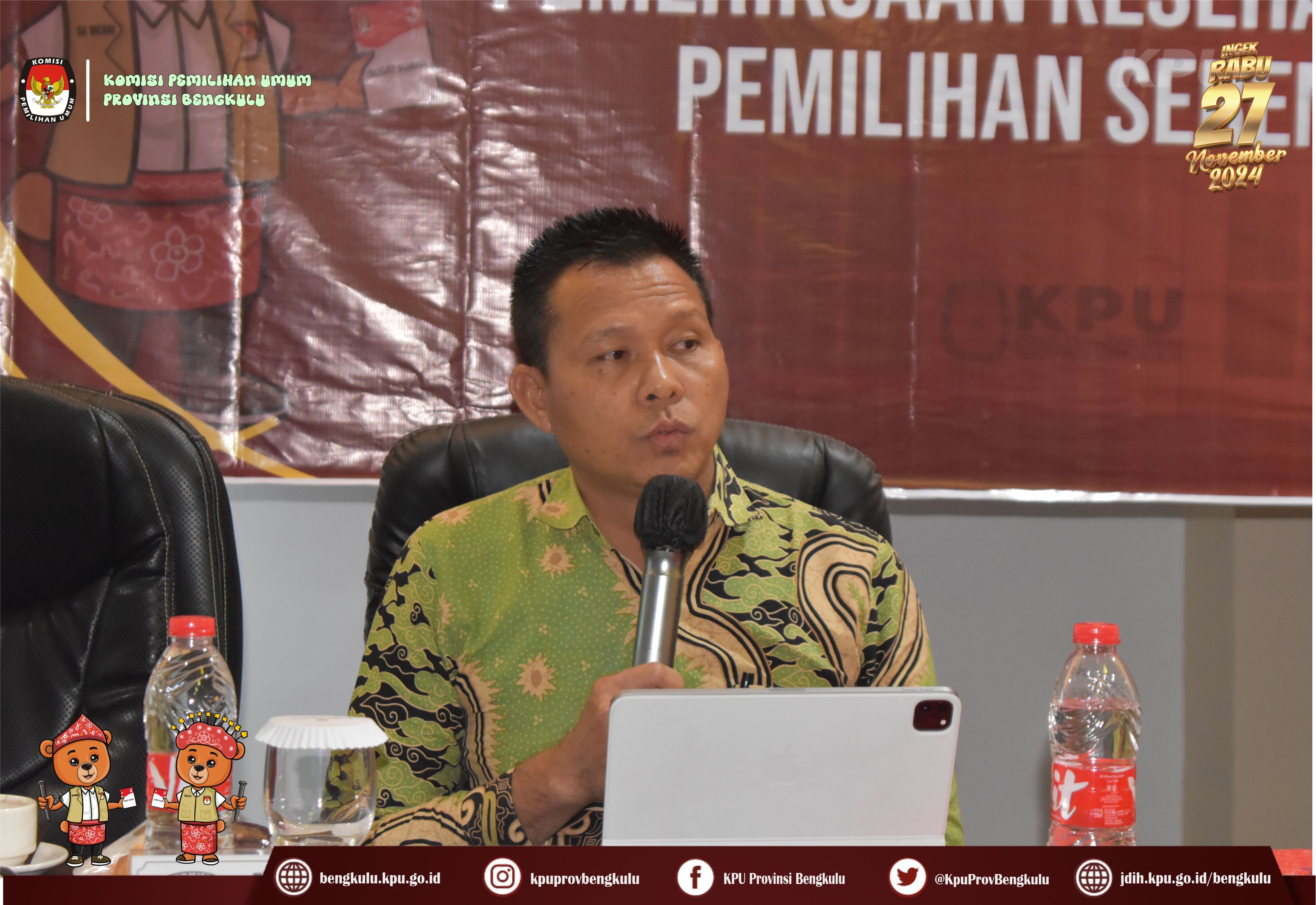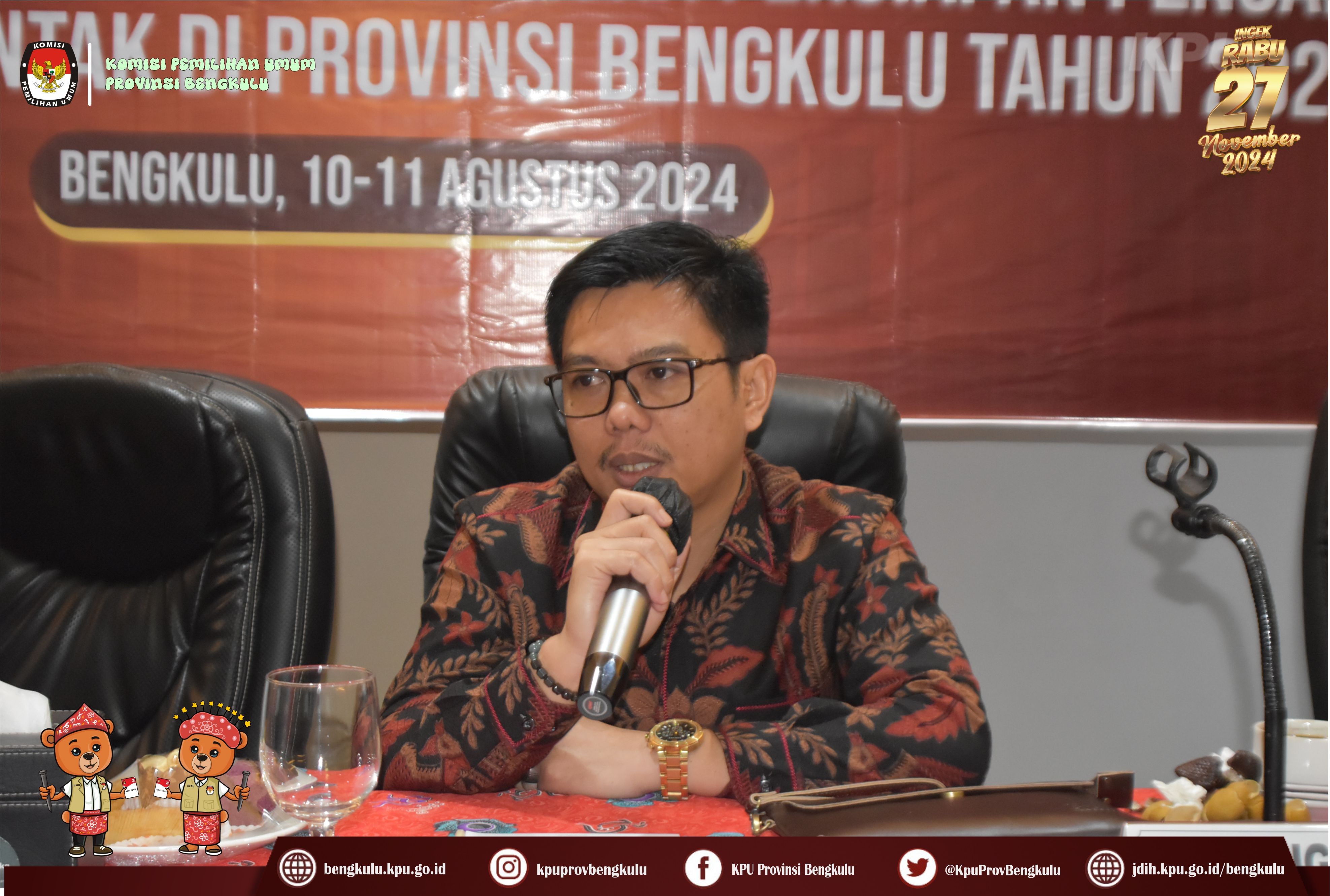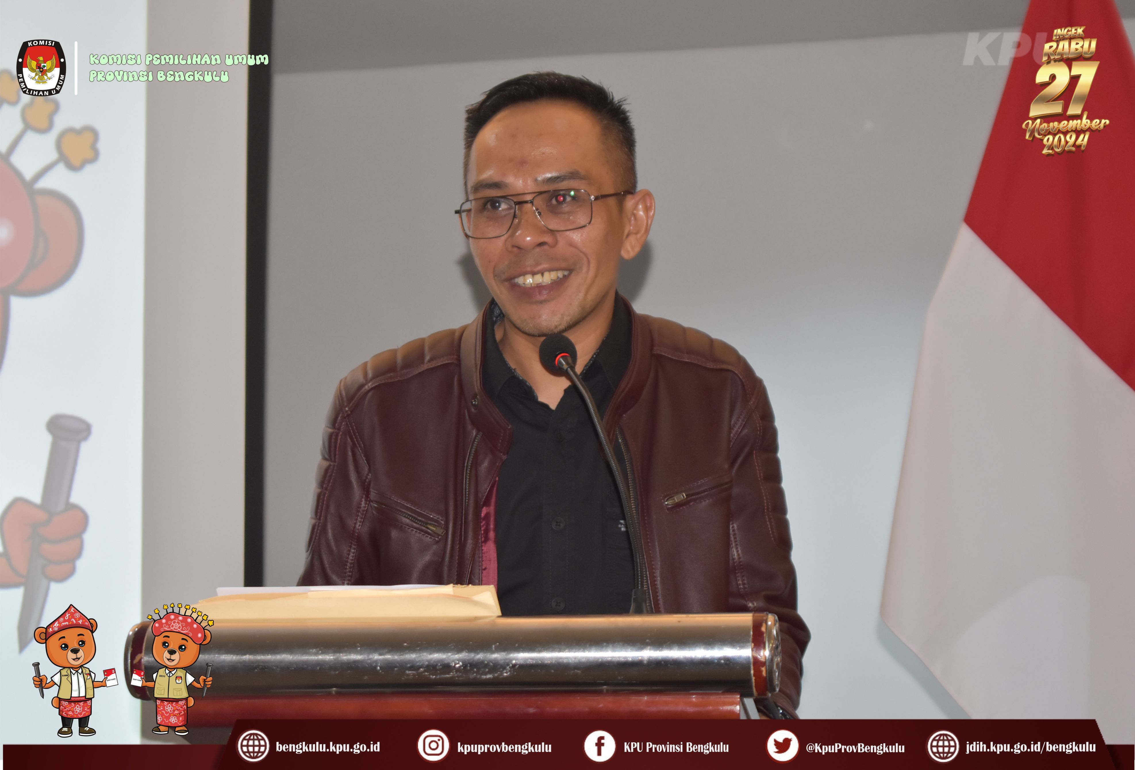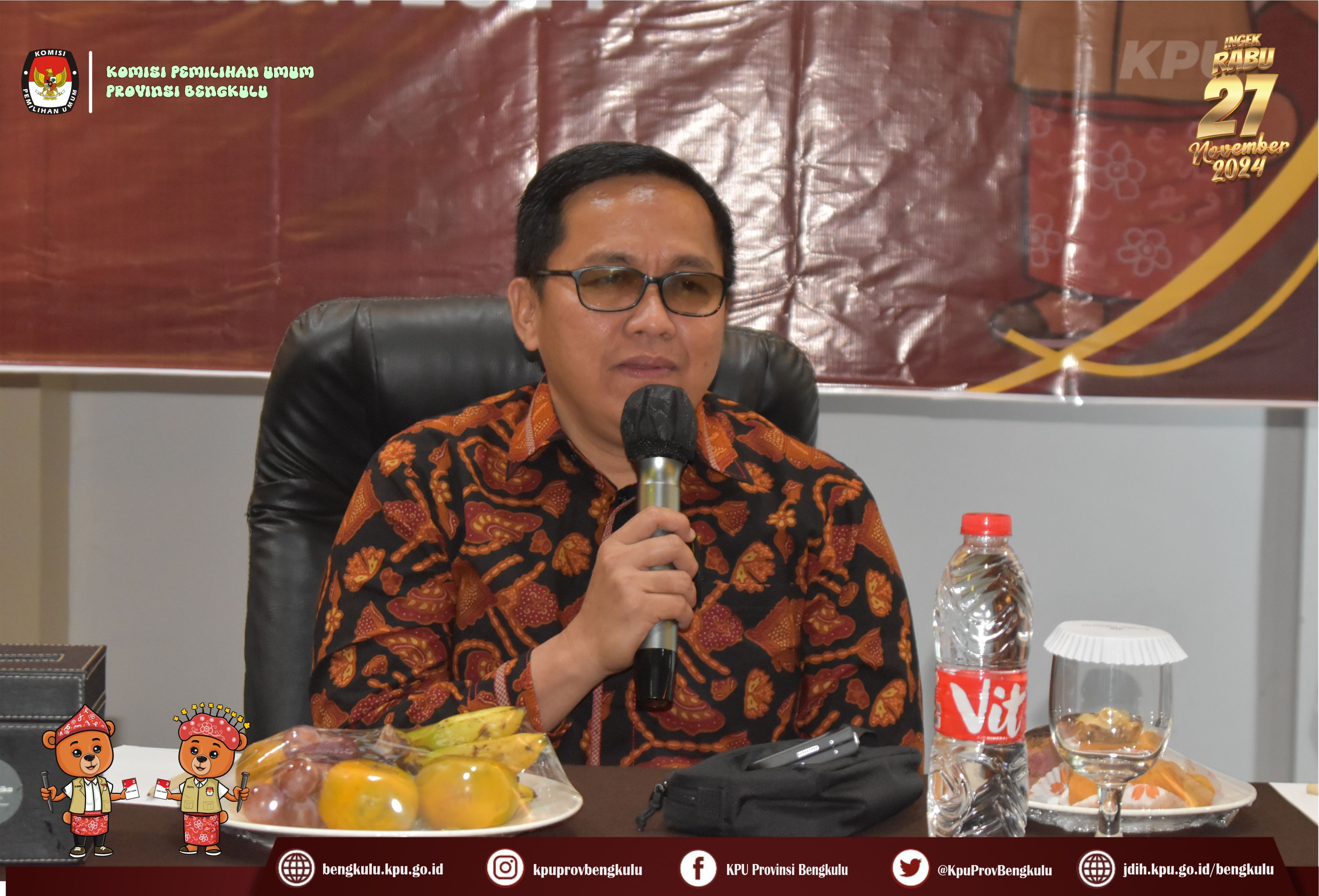 Turut Hadir Ketua, Anggota yang membidangi Divisi Teknis Penyelenggaraan, Sekretaris, Kasubbag Keuangan Umum dan Logstik, dan Kasubbag Teknis Penyelenggaraan Pemilu Partisipasi dan Hubungan Masyarakat KPU Kabupaten/Kota Se-Provinsi Bengkulu