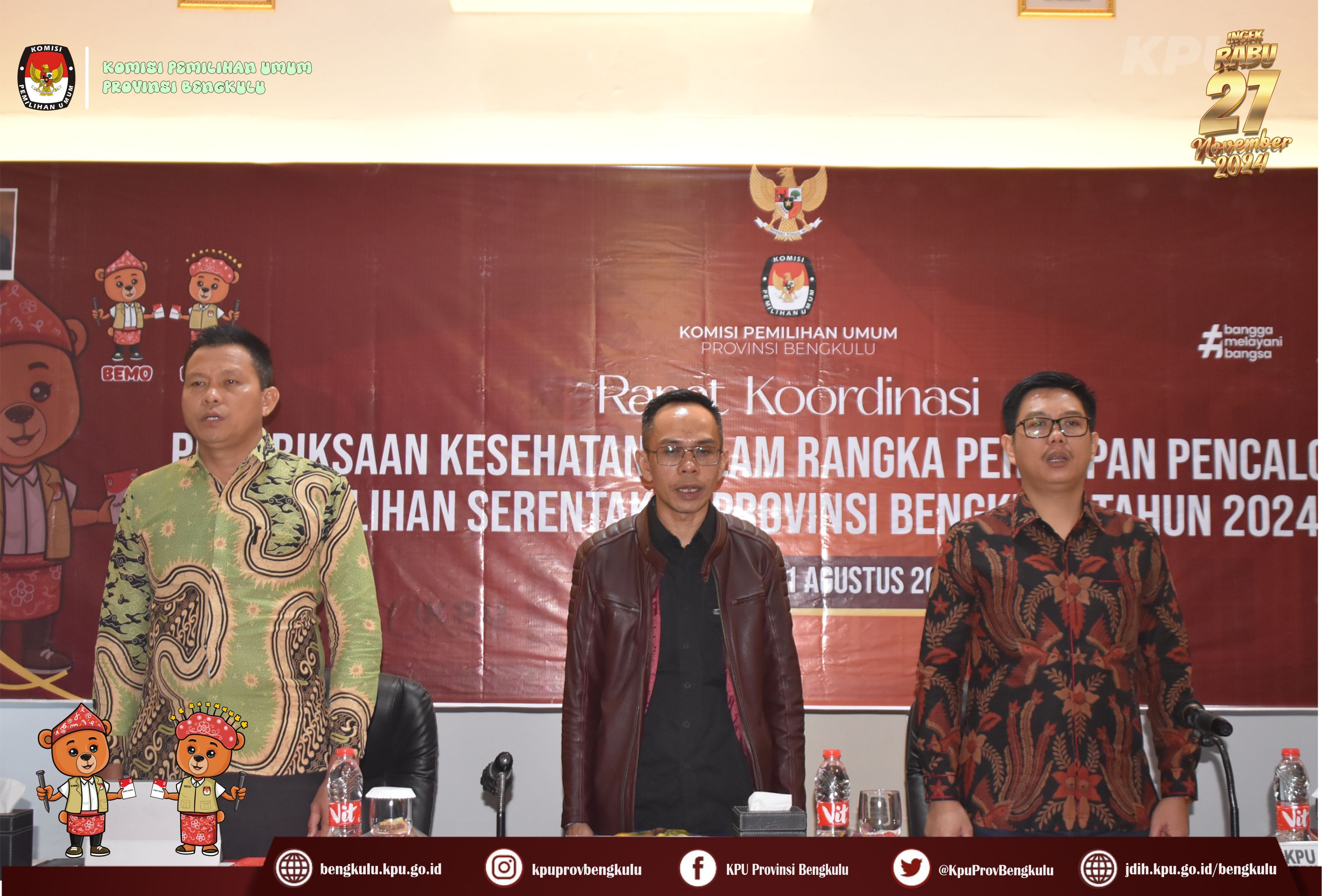 Rapat Koordinasi Pemeriksaan Kesehatan Dalam Rangka Persiapan Pencalonan Pemilihan Serentak di Provinsi Bengkulu Tahun 2024