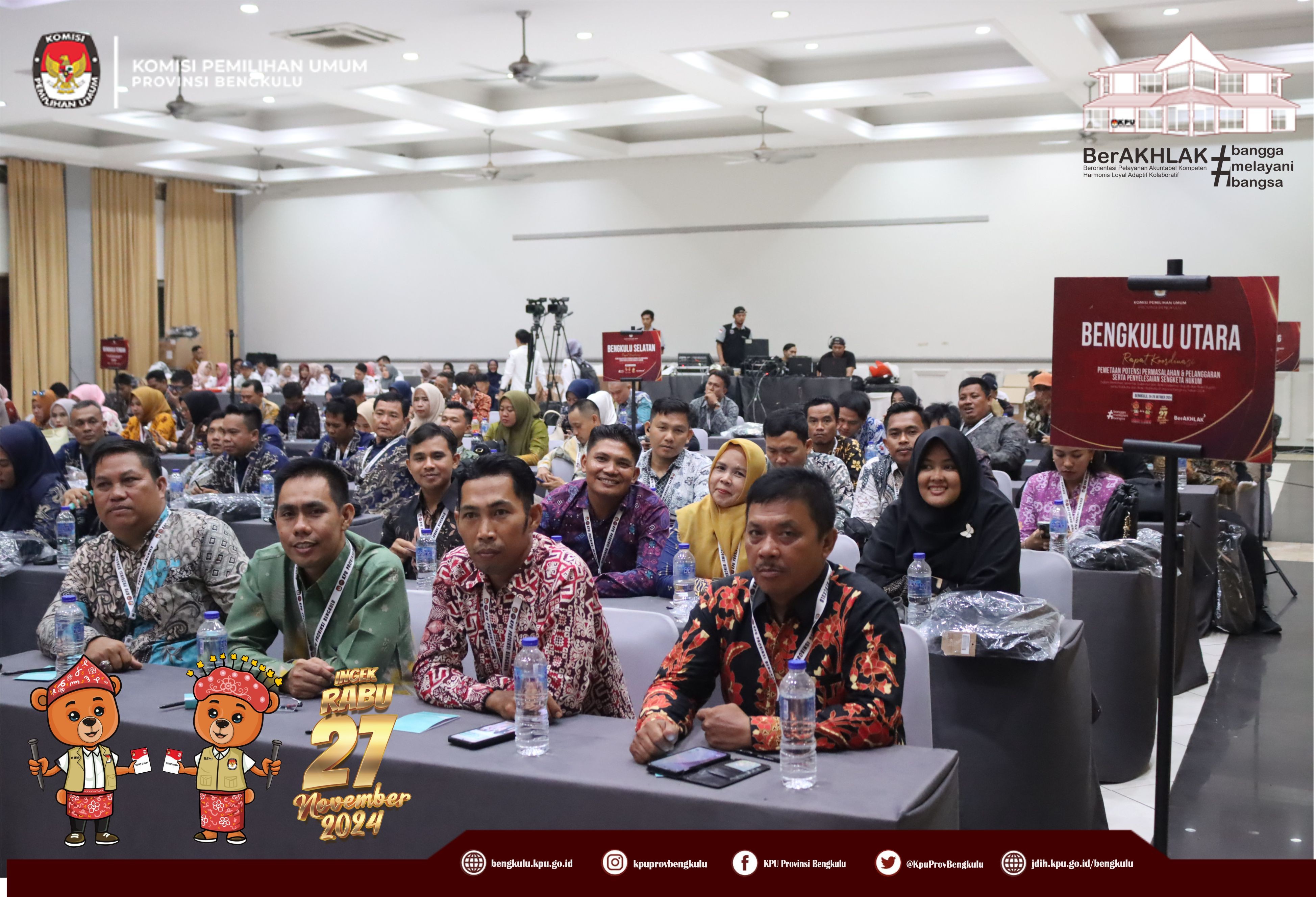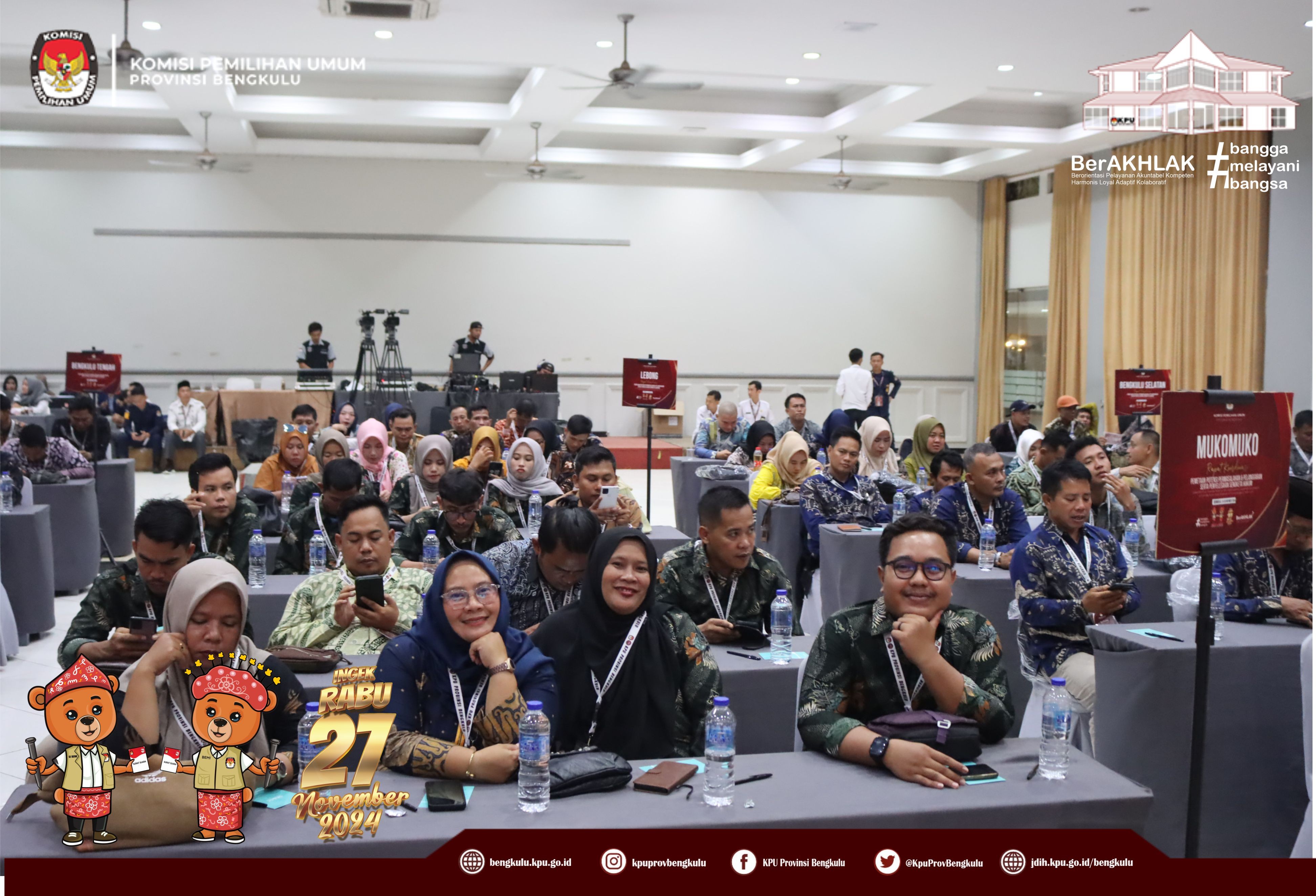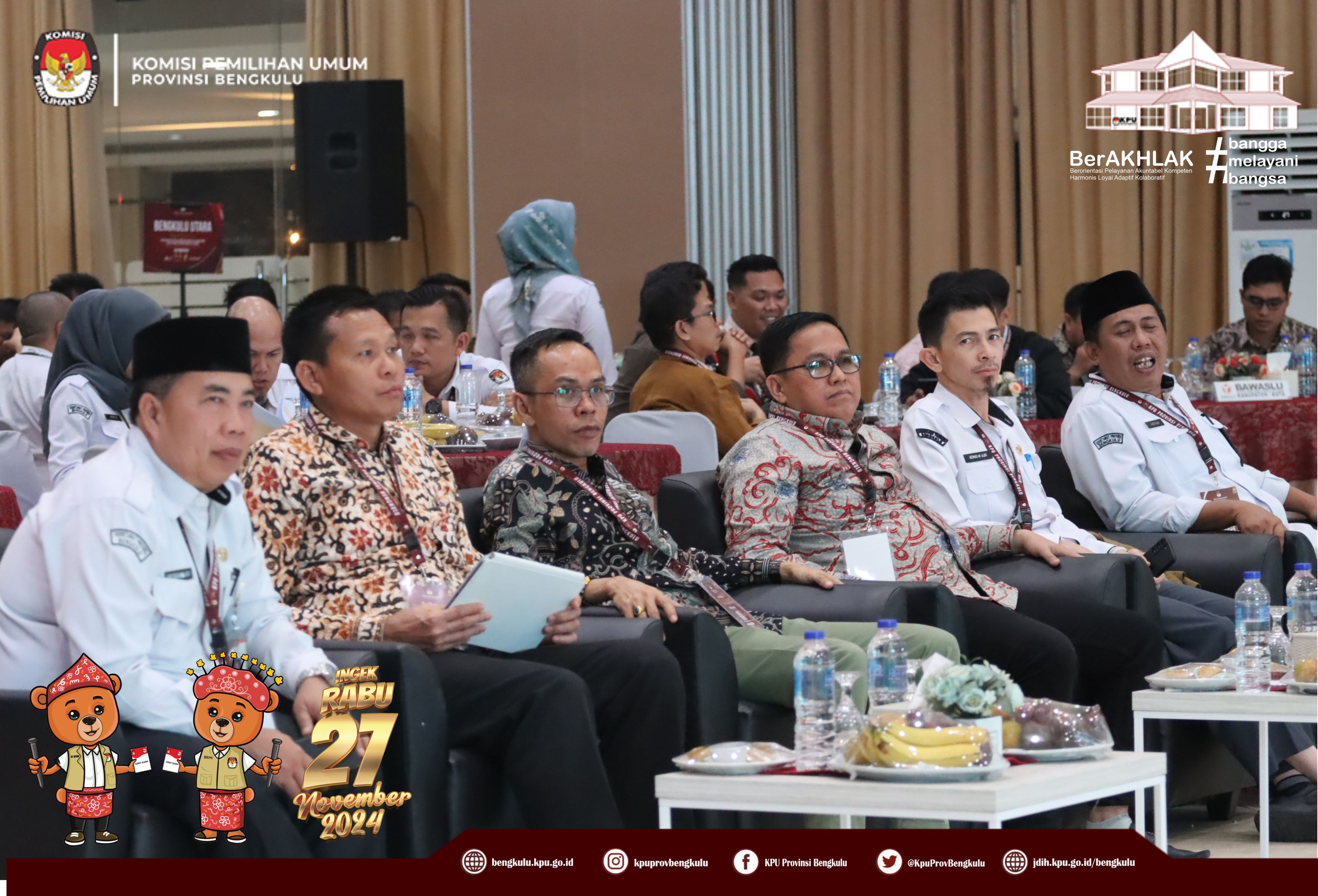 Bengkulu, bengkulu.kpu.go.id - Ketua KPU Provinsi Bengkulu Bapak Rusman Sudarsono, Anggota KPU Provinsi Bengkulu Bapak Emex Verzoni dan Bapak Sarjan Efendi serta Sekretaris KPU Provinsi Bengkulu Bapak Kemas Mohammad Ajir, Kabag KUL Sudirman dan Kabag TPHS Oktan Huzaeiry membuka Rapat Koordinasi Pemetaan Potensi Permasalahan dan Pelanggaran serta Penyelesaian Sengketa Hukum dalam Pemilihan Gubernur dan Wakil Gubernur, Bupati dan Wakil Bupati, serta Walikota dan Wakil Walikota Tahun 2024, Kamis (24/10/2024) di Grage Hotel Bengkulu. Hadir Ketua, Anggota Divisi yang membidang Hukum dan Pengawasan, Anggota KPU yang membidangi Teknis Penyelenggaraan, dan Kasubbag yang membidangi Hukum, KPU Kabupaten/Kota se-Provinsi Bengkulu, Anggota Bawaslu yang membidangi Divisi Hukum Kabupaten/Kota se-Provinsi Bengkulu serta Anggota PPK yang membidangi Divisi Hukum dan Pengawasan se-Provinsi Bengkulu. Bapak Rusman menyampaikan bahwa rapat koordinasi dalam rangka memberikan pemahaman terkait Potensi Permasalahan dan Pelanggaran serta Penyelesaian Sengketa Hukum dalam Pemilihan Serentak Tahun 2024. Bapak Sarjan menyampaikan bahwa dalam pelaksanaan tahapan pemilihan Serentak Tahun 2024 potensi permasalahan dapat terjadi maka penting bagi KPU selaku penyelenggara untuk mendokumentasikan setiap tahapan secara tertib dan rapi. Bapak Emex menyampaikan kegiatan ini dalam rangka menambah wawasan dan penyamaan pemahaman dalam memetakan atau memitigasi Potensi Permasalahan dan Pelanggaran serta Penyelesaian Sengketa Hukum pada Pilkada Serentak 2024 dan berharap seluruh peserta kegiatan untuk serius dan sungguh-sungguh dalam mengikuti kegiatan ini sampai dengan selesai.