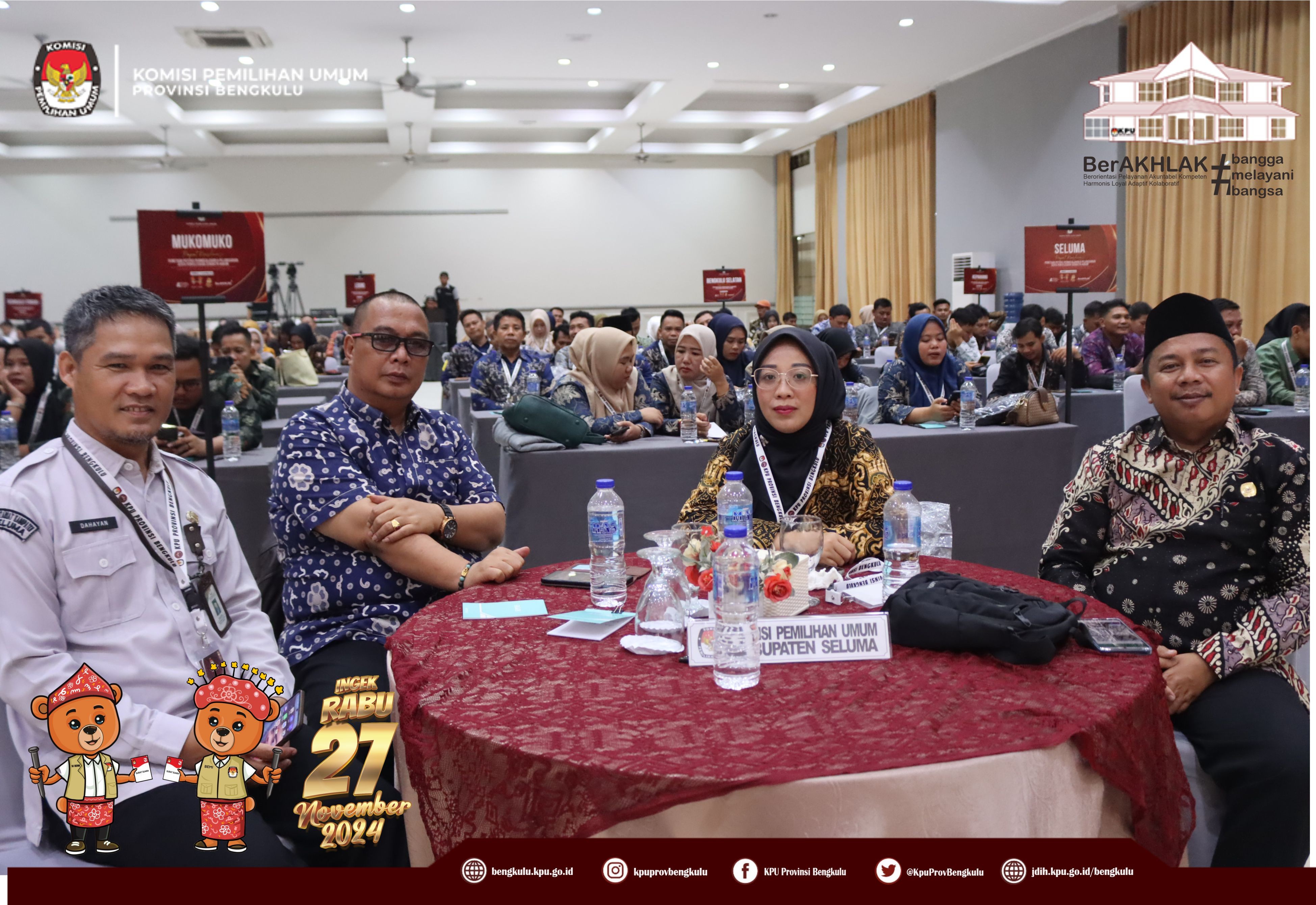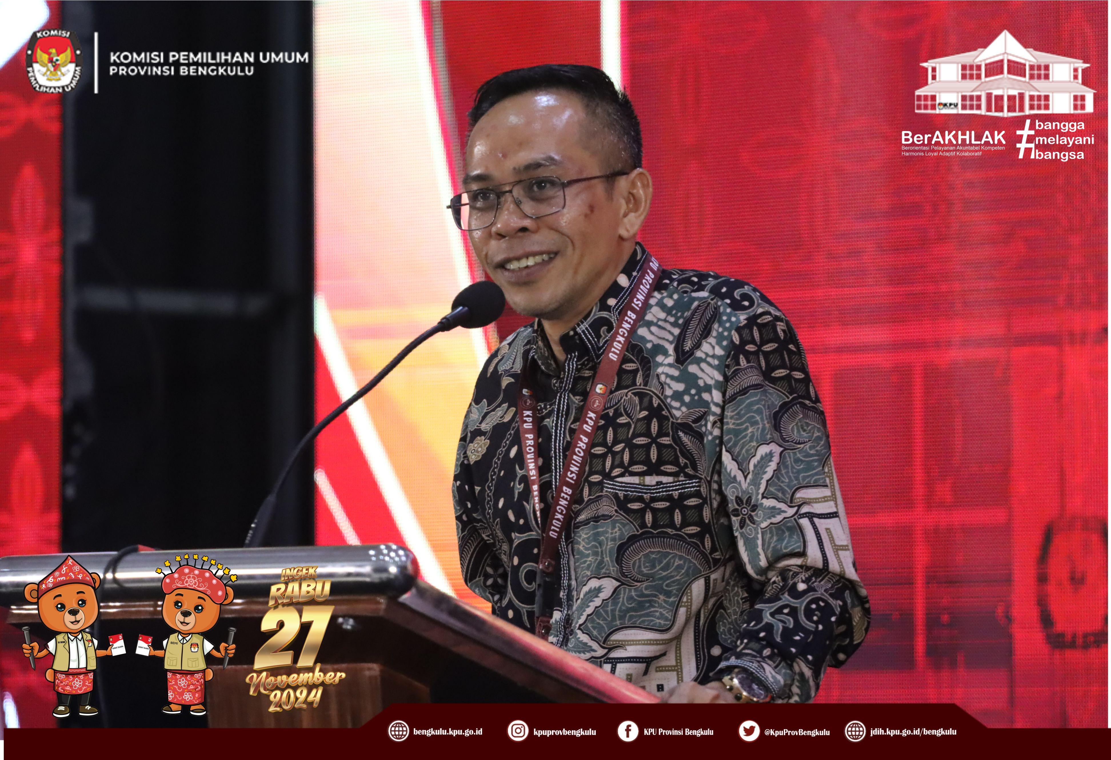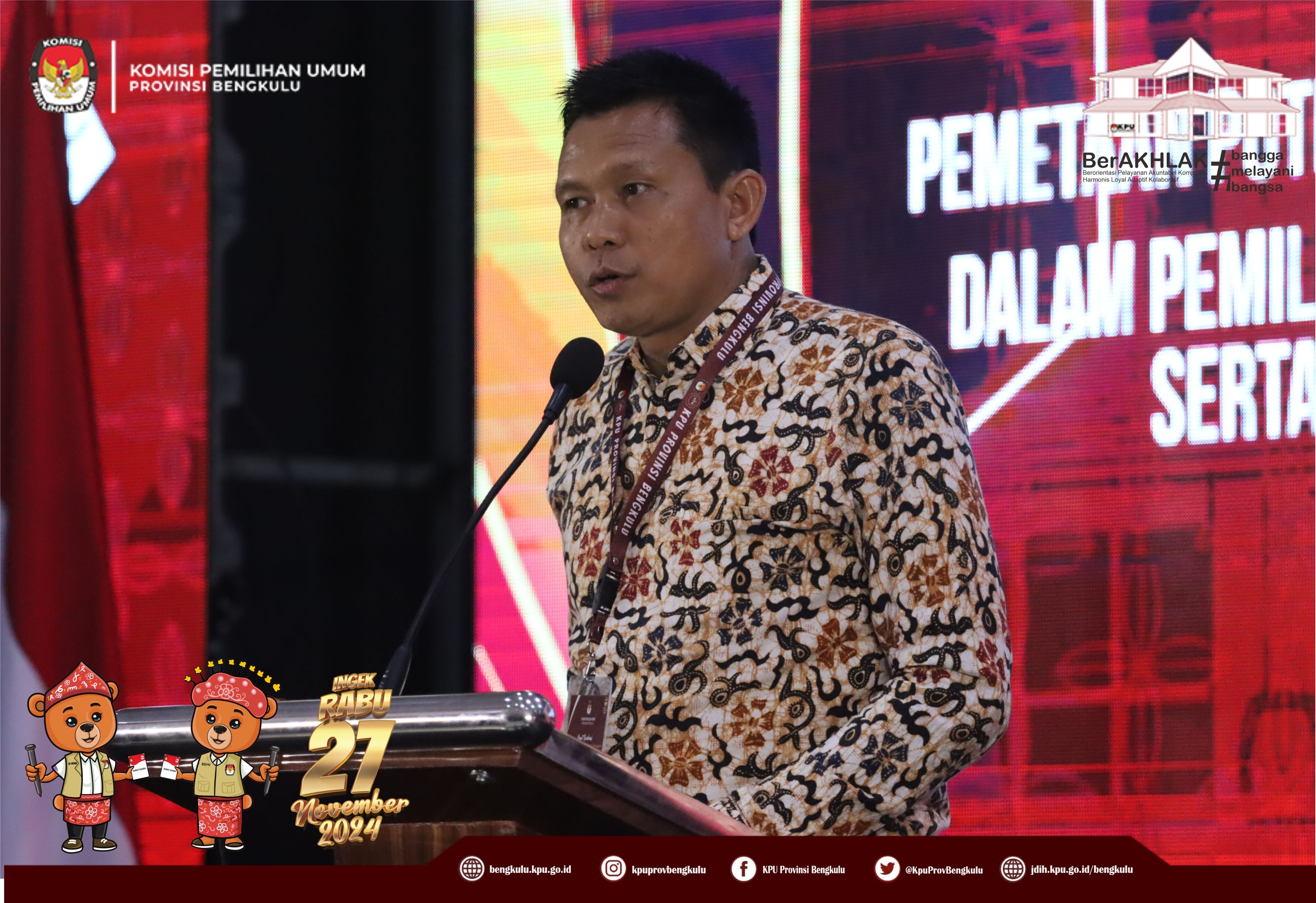 Bengkulu, bengkulu.kpu.go.id - Ketua KPU Provinsi Bengkulu Bapak Rusman Sudarsono, Anggota KPU Provinsi Bengkulu Bapak Emex Verzoni dan Bapak Sarjan Efendi serta Sekretaris KPU Provinsi Bengkulu Bapak Kemas Mohammad Ajir, Kabag KUL Sudirman dan Kabag TPHS Oktan Huzaeiry membuka Rapat Koordinasi Pemetaan Potensi Permasalahan dan Pelanggaran serta Penyelesaian Sengketa Hukum dalam Pemilihan Gubernur dan Wakil Gubernur, Bupati dan Wakil Bupati, serta Walikota dan Wakil Walikota Tahun 2024, Kamis (24/10/2024) di Grage Hotel Bengkulu. Hadir Ketua, Anggota Divisi yang membidang Hukum dan Pengawasan, Anggota KPU yang membidangi Teknis Penyelenggaraan, dan Kasubbag yang membidangi Hukum, KPU Kabupaten/Kota se-Provinsi Bengkulu, Anggota Bawaslu yang membidangi Divisi Hukum Kabupaten/Kota se-Provinsi Bengkulu serta Anggota PPK yang membidangi Divisi Hukum dan Pengawasan se-Provinsi Bengkulu. Bapak Rusman menyampaikan bahwa rapat koordinasi dalam rangka memberikan pemahaman terkait Potensi Permasalahan dan Pelanggaran serta Penyelesaian Sengketa Hukum dalam Pemilihan Serentak Tahun 2024. Bapak Sarjan menyampaikan bahwa dalam pelaksanaan tahapan pemilihan Serentak Tahun 2024 potensi permasalahan dapat terjadi maka penting bagi KPU selaku penyelenggara untuk mendokumentasikan setiap tahapan secara tertib dan rapi. Bapak Emex menyampaikan kegiatan ini dalam rangka menambah wawasan dan penyamaan pemahaman dalam memetakan atau memitigasi Potensi Permasalahan dan Pelanggaran serta Penyelesaian Sengketa Hukum pada Pilkada Serentak 2024 dan berharap seluruh peserta kegiatan untuk serius dan sungguh-sungguh dalam mengikuti kegiatan ini sampai dengan selesai.