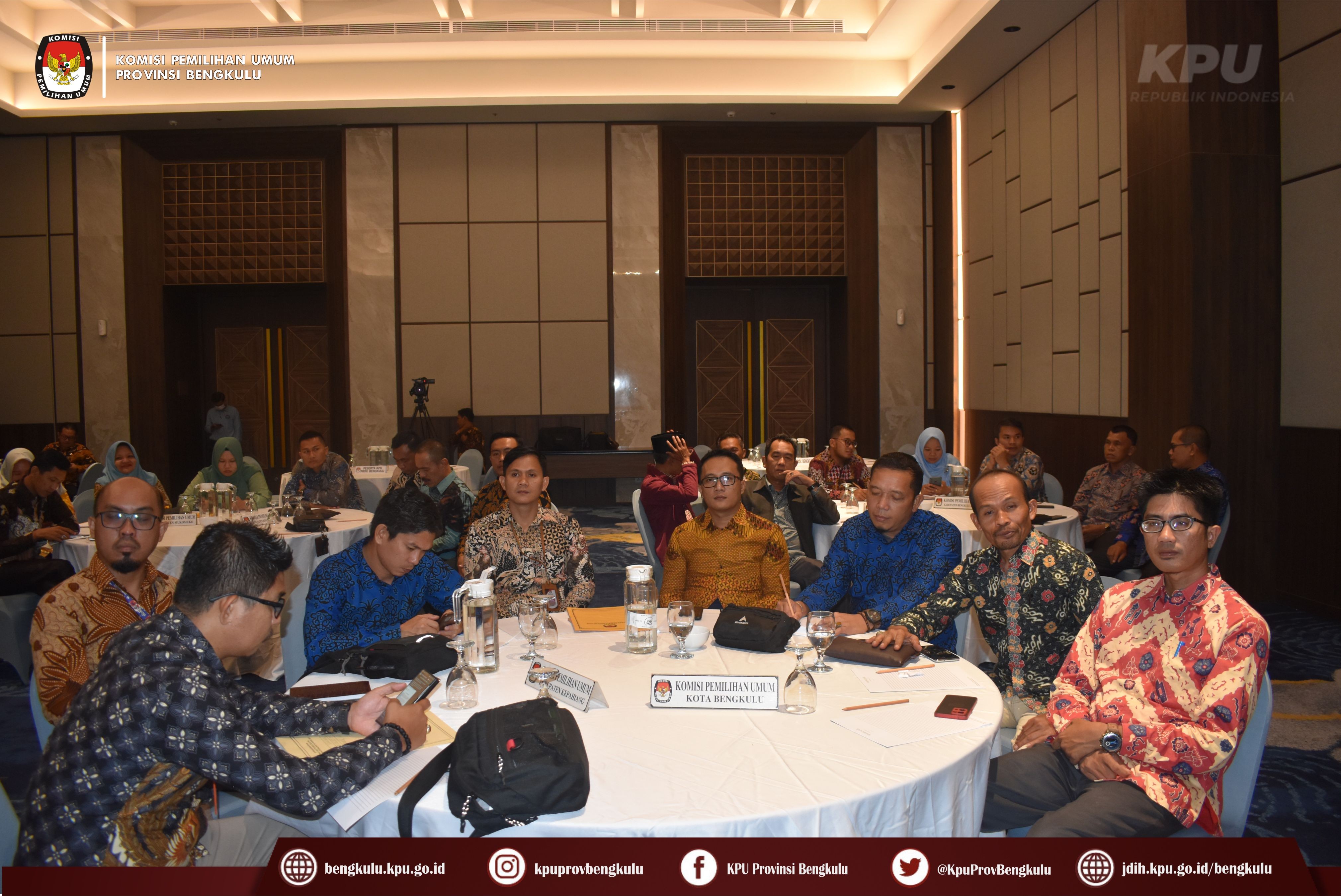 Peserta yang hadir adalah Anggota Divisi Hukum dan Pengawasan, Anggota Divisi Teknis Penyelenggaraan, Kasubbag Hukum dan SDM, serta Operator JDIH KPU Kabupaten/Kota se-Provinsi Bengkulu.