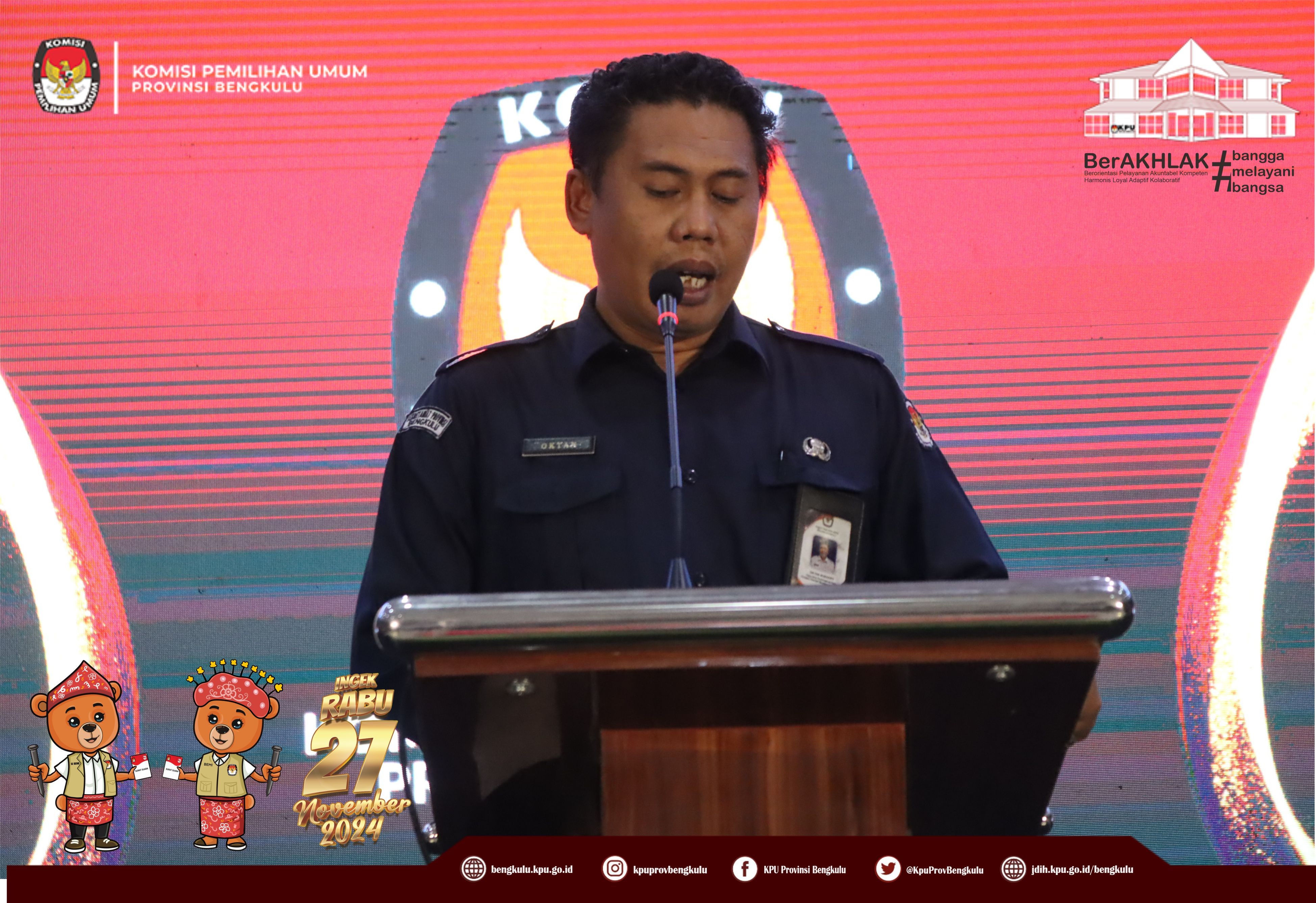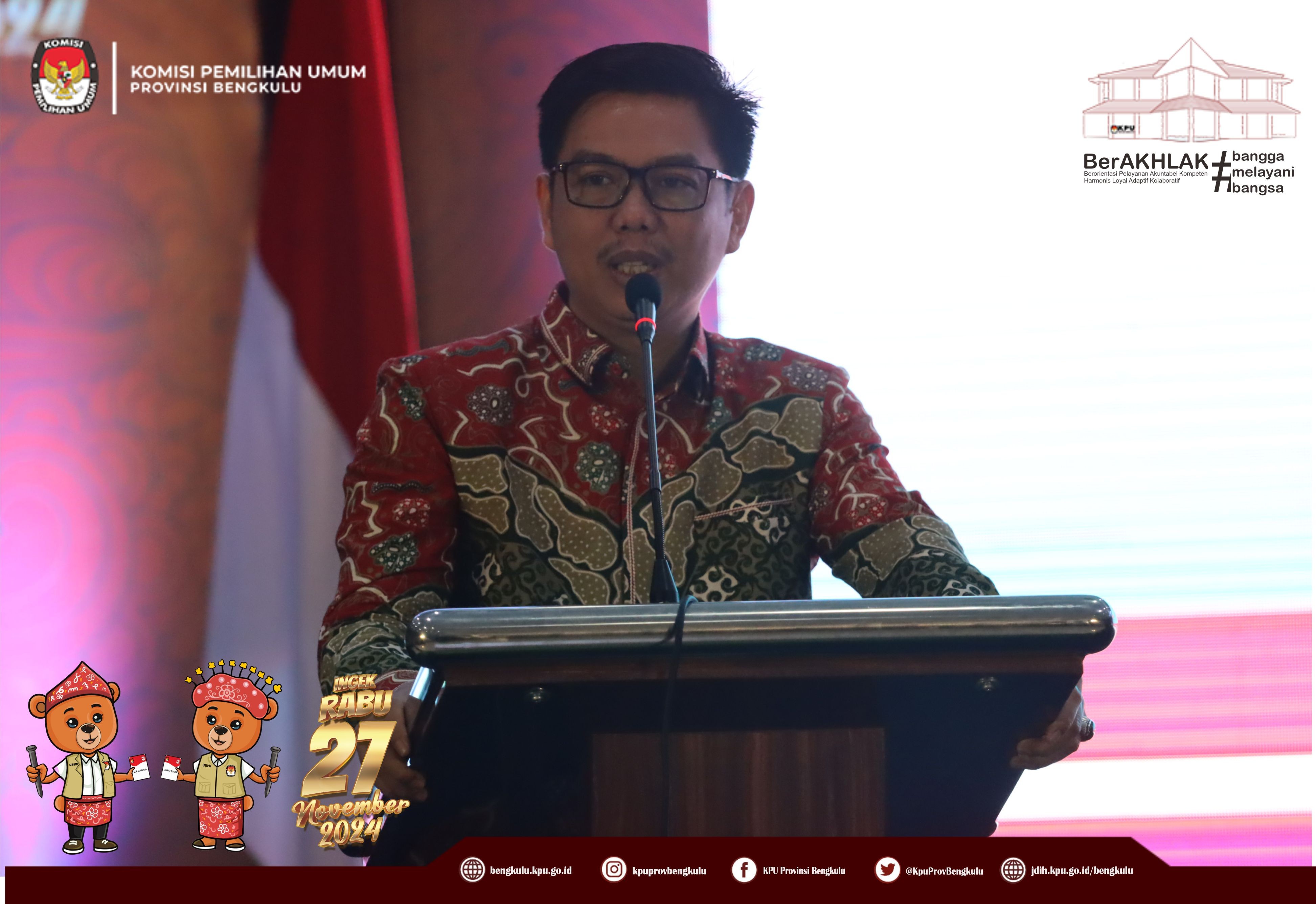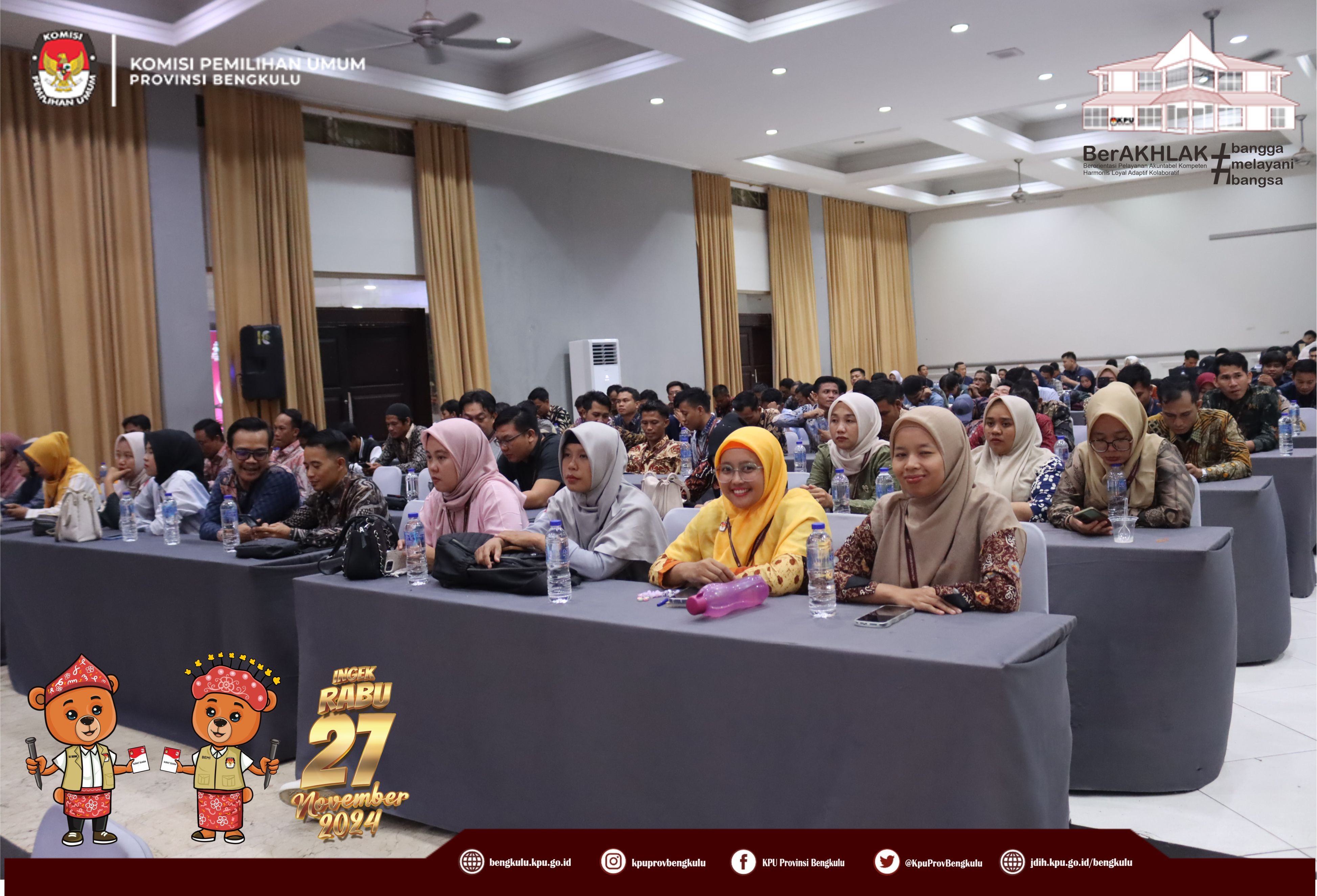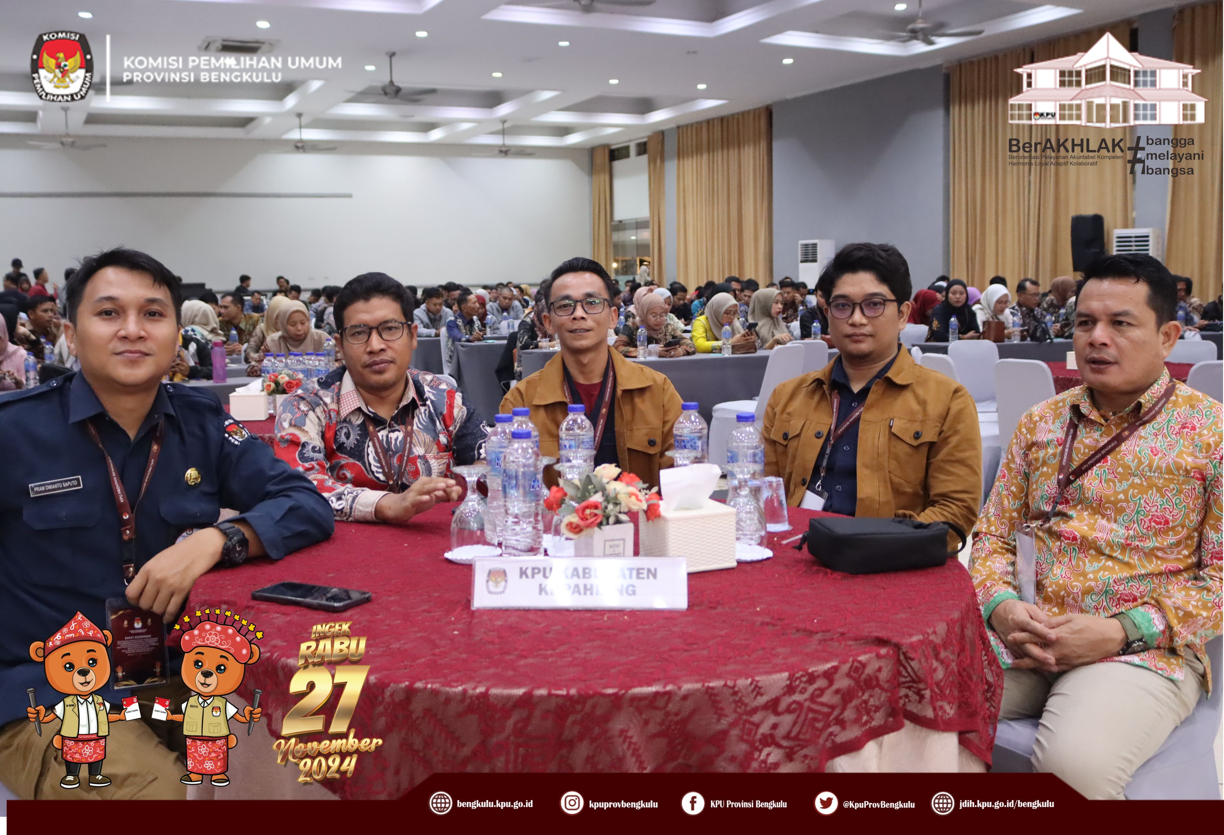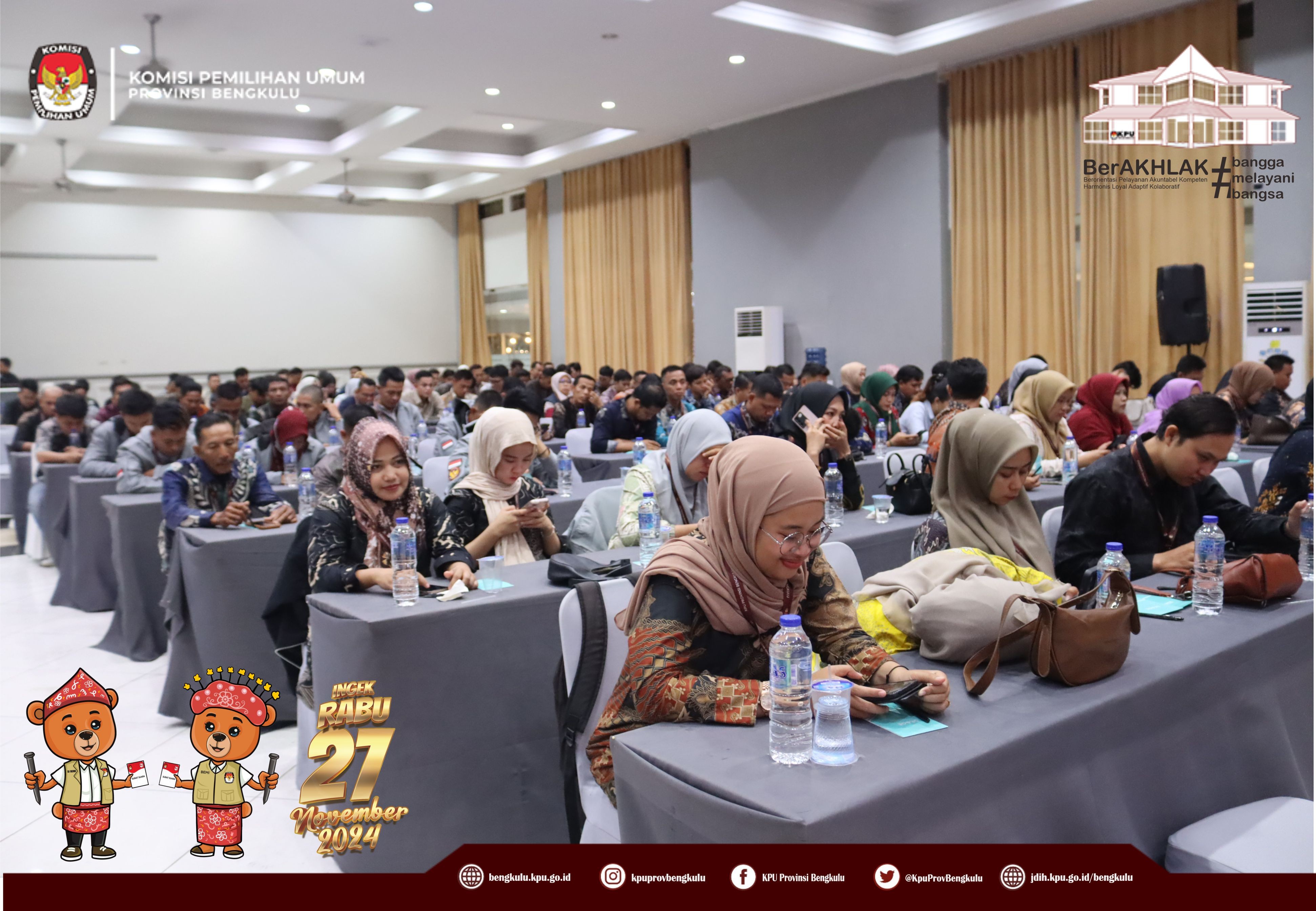Bengkulu, bengkulu.kpu.go.id - Plh. Ketua KPU Provinsi Bengkulu Bapak Emex Verzoni, Anggota KPU Provinsi Bengkulu Bapak Alpin Samsen, Plh Sekretaris KPU Provinsi Bengkulu Bapak Sudirman, Kabag TPHS Bapak Oktan Huzaeiry membuka kegiatan Rapat Koordinasi Penyusunan dan Pelayanan Pemilih Pindahan dan Bimbingan Teknis Pemilih Pindahan Pada Sistem Informasi Data Pemilih (Sidalih) Pada Pemilihan Gubernur dan Wakil Gubernur, Bupati dan Wakil Bupati serta Walikota dan Wakil Walikota Tahun 2024 Provinsi Bengkulu, Selasa (22/10/2024) di Grage Hotel Bengkulu. Hadir Anggota KPU Divisi Perencanaan Data dan Informasi, Anggota KPU Divisi Teknis Penyelenggaraan, Kasubbag TPHM, Admin/Operator Sirekap, Anggota PPK Divisi Perencanaan Data dan Informasi, Anggota PPK Divisi Teknis Penyelenggaraan Kabupaten/Kota se-Provinsi Bengkulu. Dalam arahannya Bapak Emex menyampaikan bahwa KPU Provinsi Bengkulu telah menetapkan Daftar Pemilih Tetap Provinsi Bengkulu sebanyak 1.503.923 Pemilih selanjutnya penting bahwa pindah memilih bagi yang terdata dalam DPT karena ada 9 (sembilan) alasan dan dokumen pendukung yang harus dipersiapkan jika ingin mengurus pindah memilih, maka kewajiban KPU adalah memberikan pelayanan secara baik dan profesional melalui helpdesk pindah pemilih. Bapak Emex berharap seluruh peserta yang hadir untuk dapat mengikuti rapat koordinasi dan bimbingan teknis ini dengan baik dan sungguh-sungguh. Sementara itu dalam materinya Bapak Alpin menyampaikan materi Penyusunan Daftar Pemilih Tambahan (DPTb) diantaranya regulasi yang mengatur, syarat pindah memilih yang pengurusannya paling lambat H-30, yakni dengan alasan diantaranya Bertugas di tempat lain, Menjalani rawat inap/mendampingi pasien rawat inap, Tertimpa bencana, Menjadi tahanan rutan/lapas atau menjadi terpidana, Penyandang disabilitas yang dirawat di panti sosial/rehabilitasi, Menjalani rehabilitasi narkoba, Bekerja di luar domisli, Menjalani tugas belajar/menempuh pendidikan menengah/tinggi dan Pindah domisili serta dokumen pendukungan yang harus disiapkan, alur pengurusan pindah memilih, hak surat suara yang didapat jika pindah memilih, Lokasi Khusus dan sebagainya.