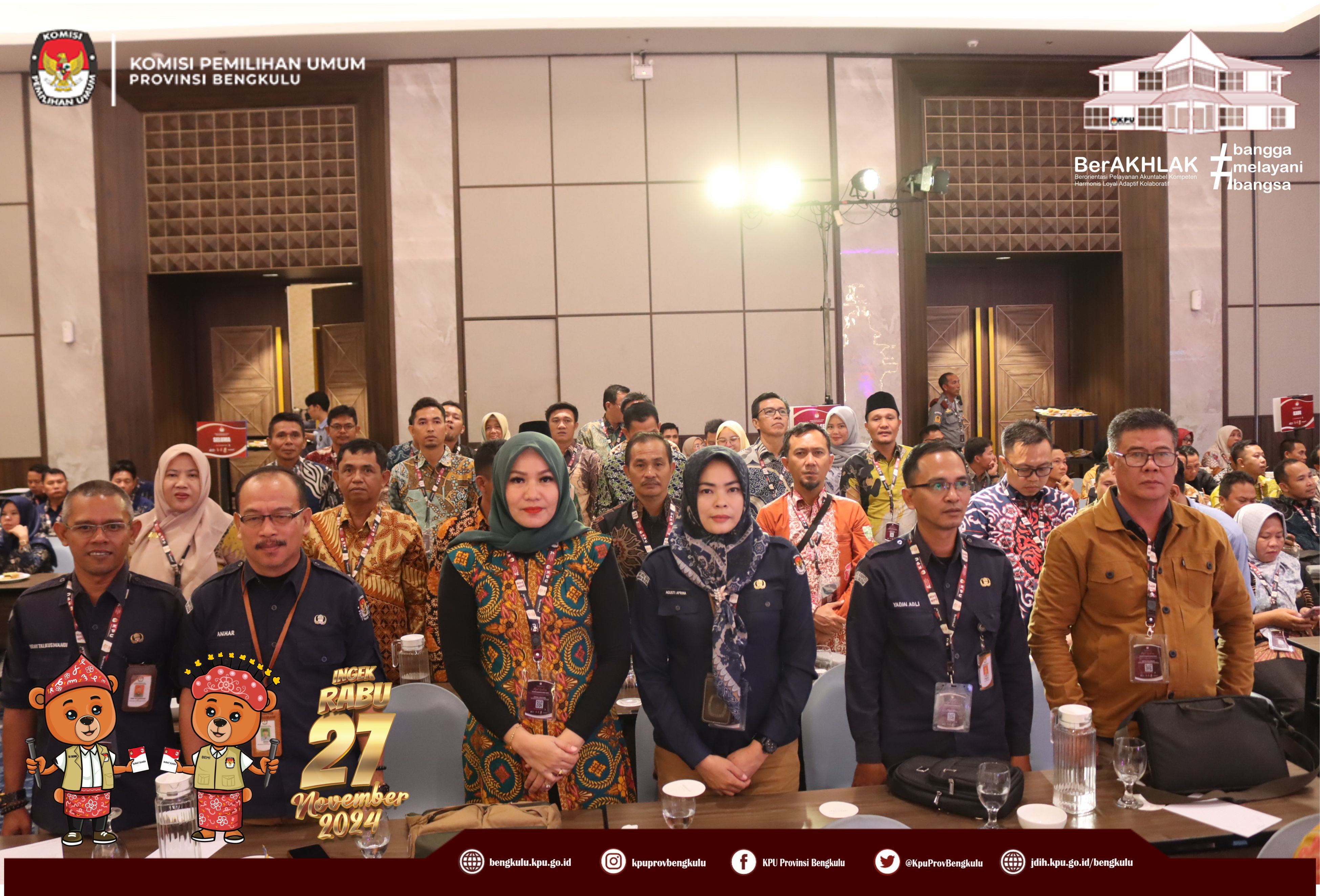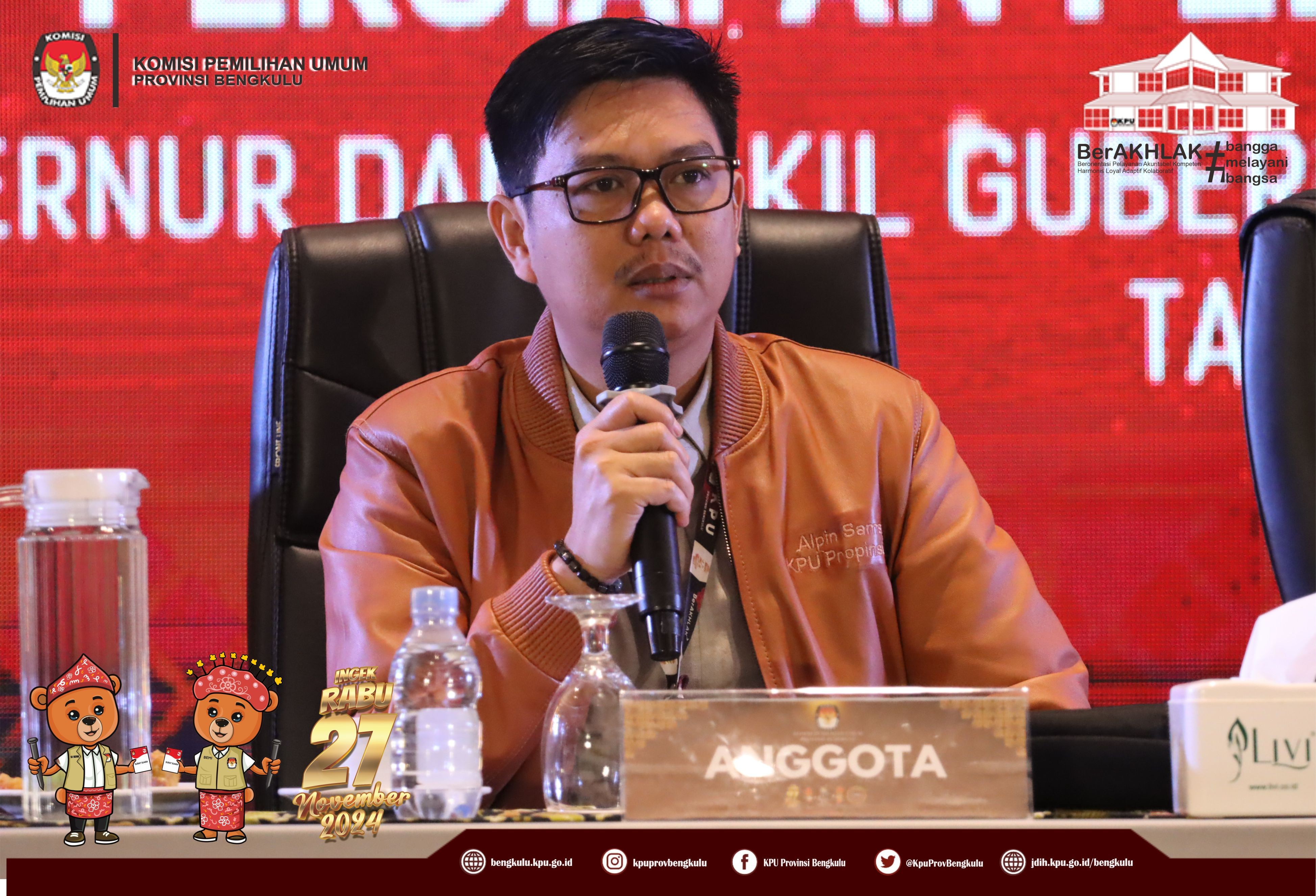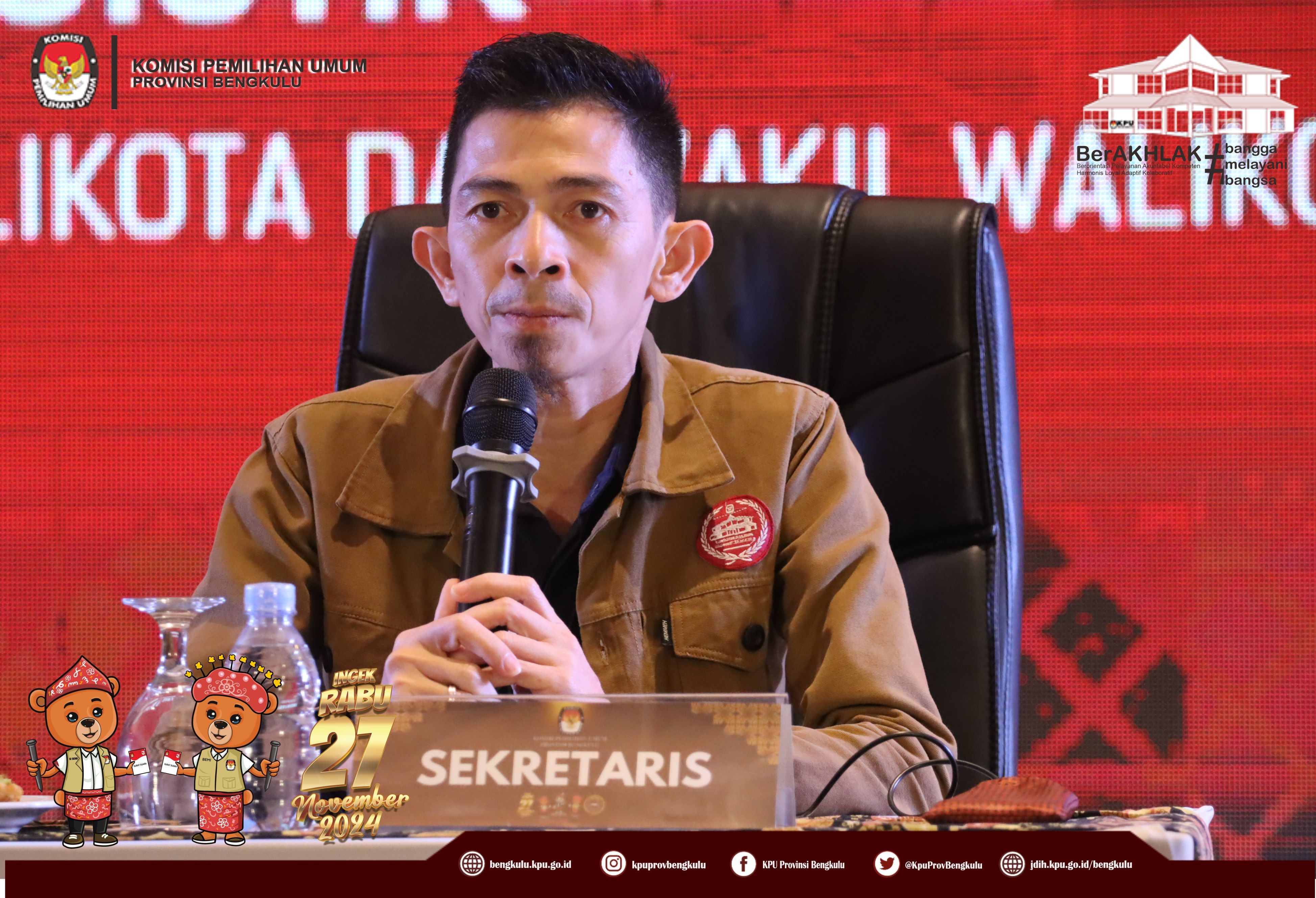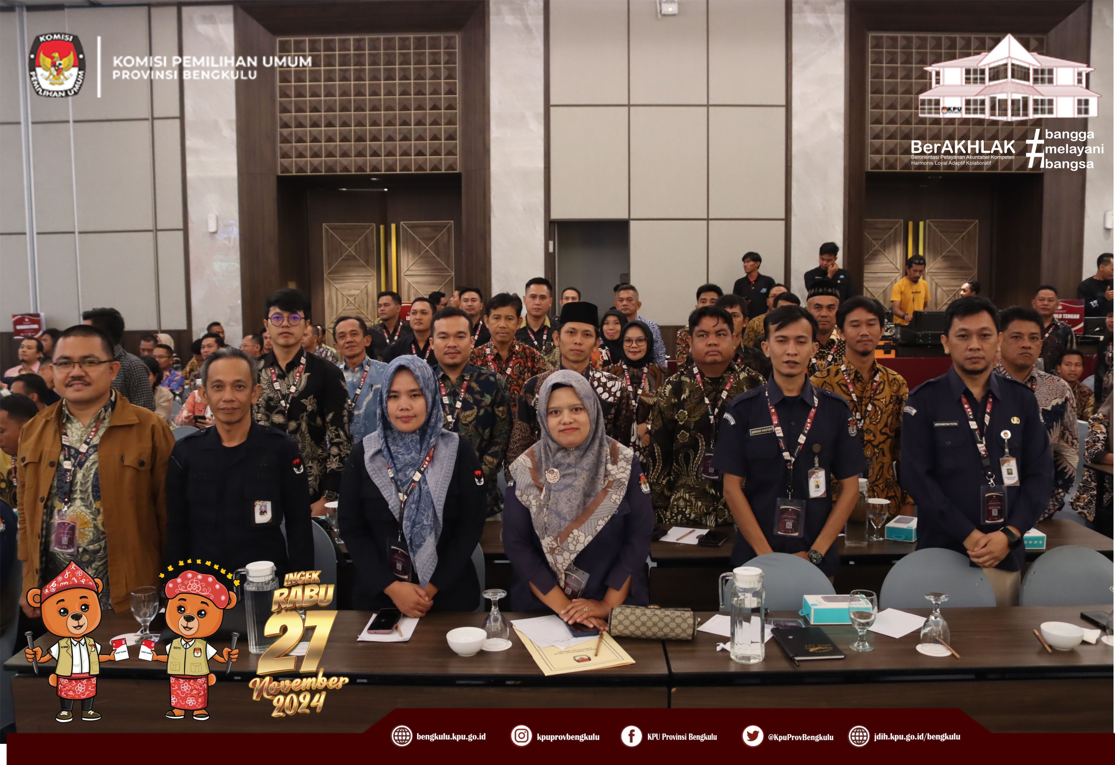 Bengkulu, bengkulu.kpu.go.id - Ketua KPU Provinsi Bengkulu Bapak Rusman Sudarsono, Anggota KPU Provinsi Bengkulu Bapak Alpin Samsen, Bapak Dodi Hendra Supiarso, Bapak Emex Verzoni dan Bapak Sarjan Efendi serta Sekretaris Kemas Mohammad Ajir membuka Rapat Koordinasi Persiapan Pelaksanaan Distribusi Logistik Pemilihan Gubernur dan Wakil Gubernur, Bupati dan Wakil Bupati serta Walikota Wakil Walikota Tahun 2024 di Provinsi Bengkulu, Sabtu (19/10/2024) di Hotel Mercure Bengkulu. Hadir dalam rapat koordinasi adalah Ketua, Sekretaris, Kasubbag Keuangan Umum dan Logistik, Pejabat Pembuat Komitmen (PPK), Operator SIlog KPU Kabupaten/Kota se-Provinsi Bengkulu serta Ketua dan Sekretaris Panitia Pemilihan Kecamatan (PPK) Kabupaten/Kota se-Provinsi Bengkulu. Bapak Rusman dalam arahannya menyampaikan bahwa rapat koordinasi ini dilaksanakan dalam rangka menyamakan persepsi dan pemahaman kepada seluruh peserta yang hadir terkait pengelolaan dan persiapan distribusi logistik. Sementara itu, dalam arahannya Bapak Sarjan meminta kepada seluruh Jajaran KPU Kabupaten/Kota dan Badan Adhoc untuk serius dan terdokumentasi dengan baik dalam pengelolaan dan pendistribusian logistik tingkat hingga ke tingkat TPS. Bapak Alpin menyampaikan ucapan terima kasih dan apresiasi kepada KPU Kabupaten/Kota, PPK, PPS dan Pantarlih yang telah melaksanakan tugas dengan baik dalam pemutakhiran data pemilih sampai dengan penetapan DPT tingkat Provinsi Bengkulu. Bapak Emex menegaskan kepada penyelenggara pemilihan KPU Kabupaten/Kota, PPk, PPS dan KPPS untuk bekerja secara profesional, berintegritas dan menjaga soliditas dalam menyukseskan pilkada serentak di Provinsi Bengkulu, Bapak Dodi meminta kepada seluruh jajaran badan adhoc untuk memahami tupoksi dan tugas dalam pengelolaan logistik hingga ke TPS, serta Bapak Kemas menegaskan kepada jajaran sekretariat baik KPU Kabupaten/Kota, PPK, dan PPS untuk membantu dan memfasilitasi pelaksanaan penyelenggaraan pemilihan serentak pada Rabu 27 November 2024 dan mendokumentasikan secara tertib dan baik untuk setiap proses tahapan kegiatan pemilihan Tahun 2024.