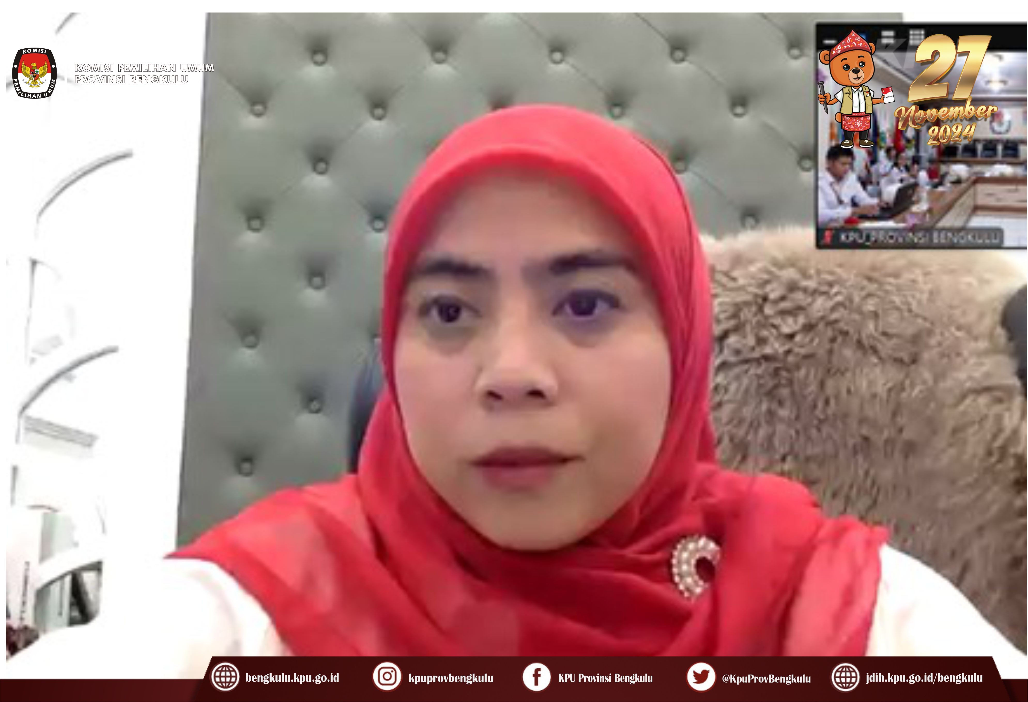 Bengkulu, bengkulu.kpu.go.id - KPU Provinsi Bengkulu mengikuti Rapat Koordinasi Persiapan Pemetaan TPS untuk Penyusunan dan Pemutakhiran Data Pemilih Pemilihan Gubernur dan Wakil Gubernur, Bupati dan Wakil Bupati serta Walikota dan Wakil Walikota Tahun 2024 yang diselenggarakan KPU RI secara daring (zoom meeting), Senin (20/5/2024) bertempat di Ruang Audio Visual Rumah Pintar Pemilu. Rapat koordinasi dihadiri Anggota KPU Provinsi Bengkulu Alpin Samsen, Plt. Kabag Rendatin Martoni, Kasubbag Data dan Informasi Yunita Dika dan staf Data dan Informasi. Dalam rapat koordinasi, Anggota KPU RI Betty Epsilon Idroos menyampaikan gambaran umum persiapan pemetaan TPS dan Rancangan PKPU Pemutakhiran Data Pemilih.