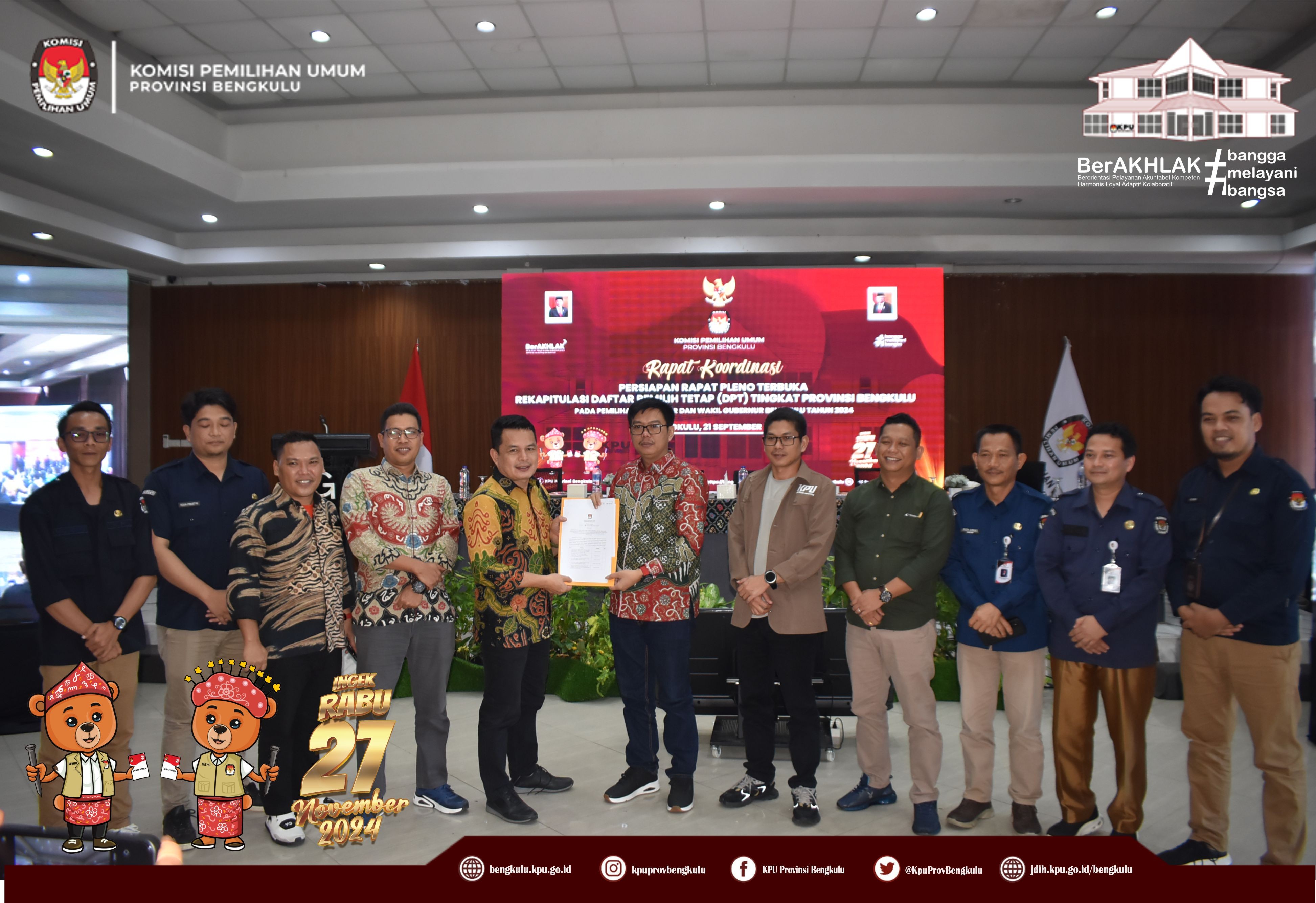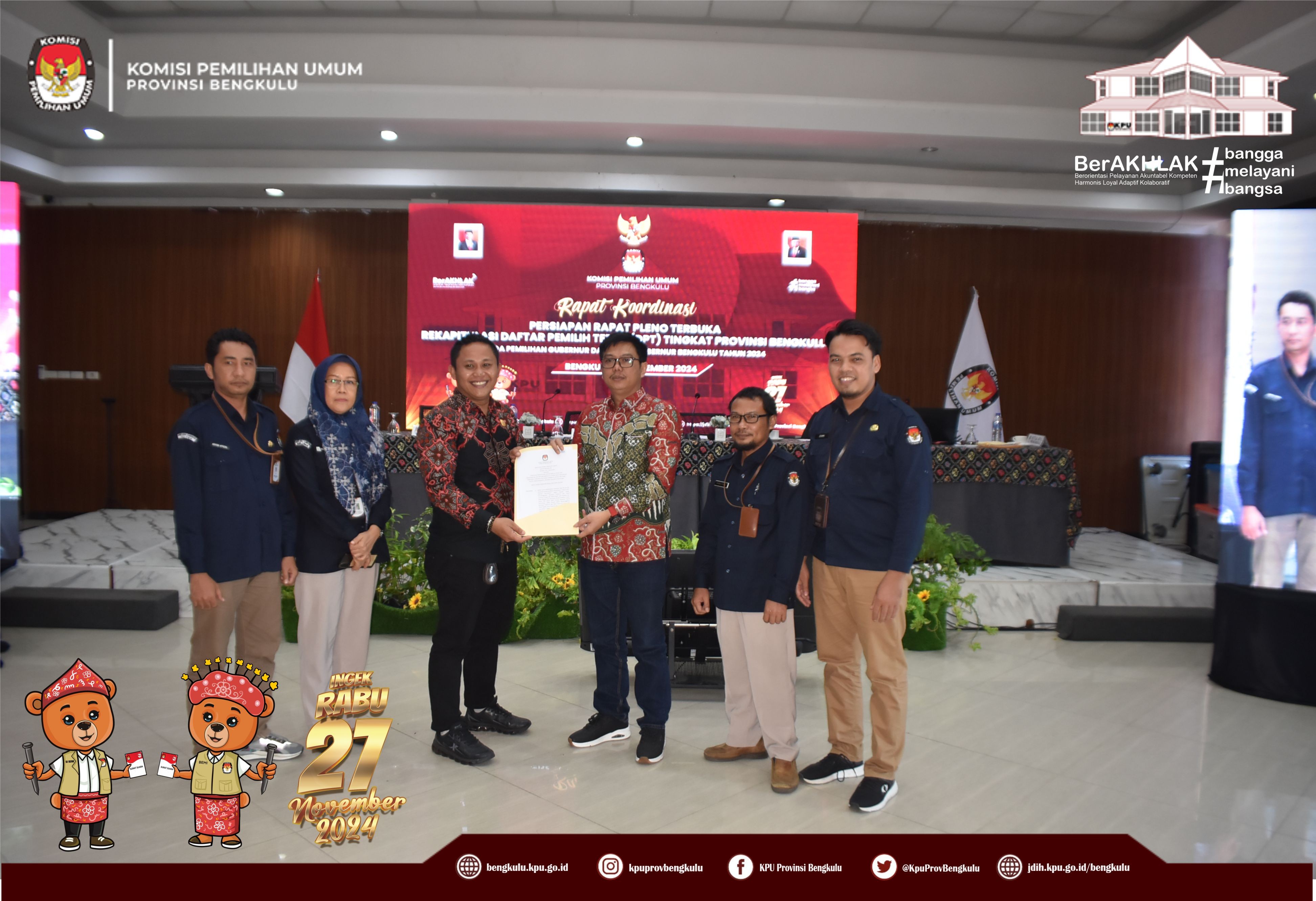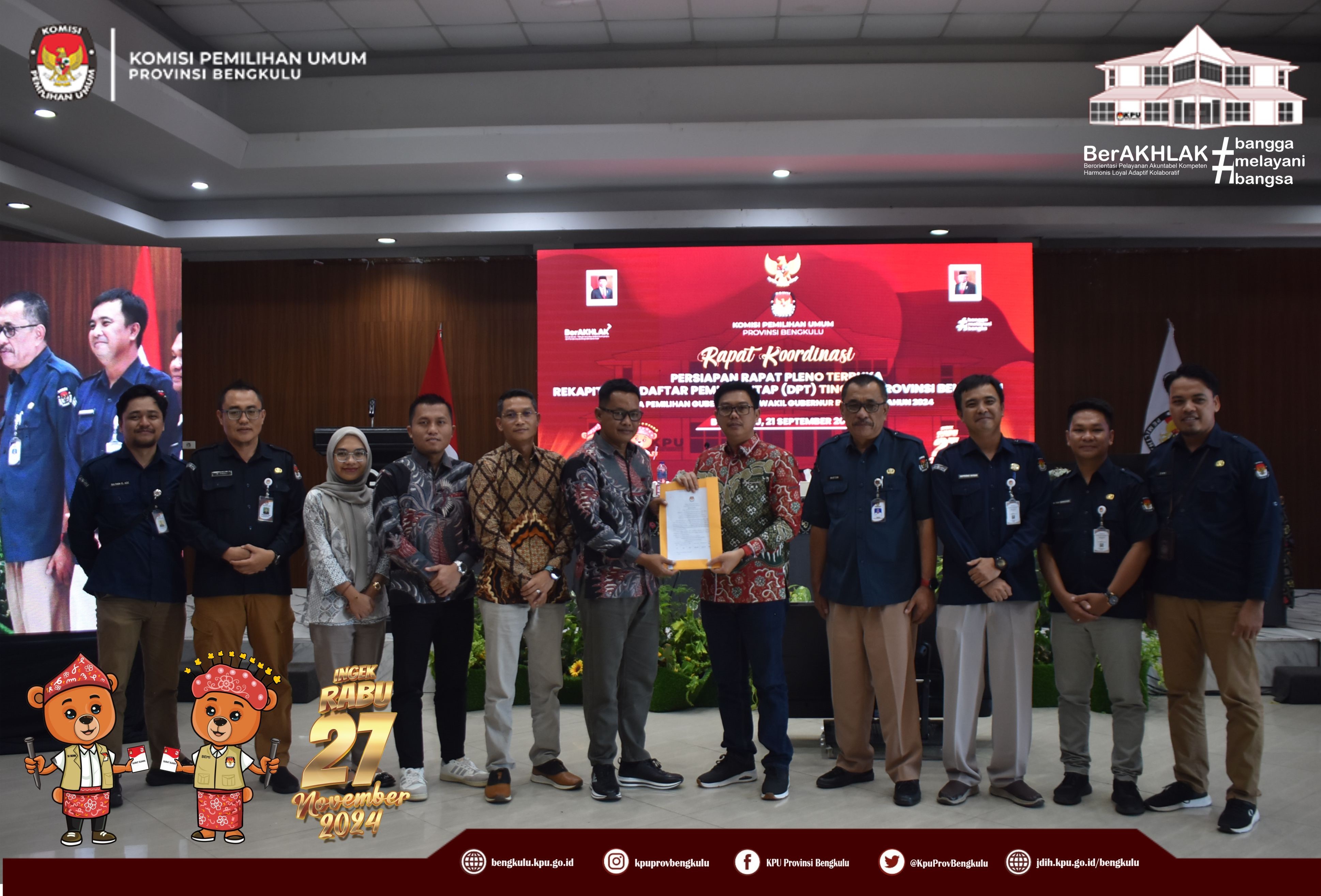 Rapat Koordinasi Persiapan Rapat Pleno Terbuka Rekapitulasi DPT Tingkat Provinsi Bengkulu Pada Pemilihan Serentak Tahun 2024