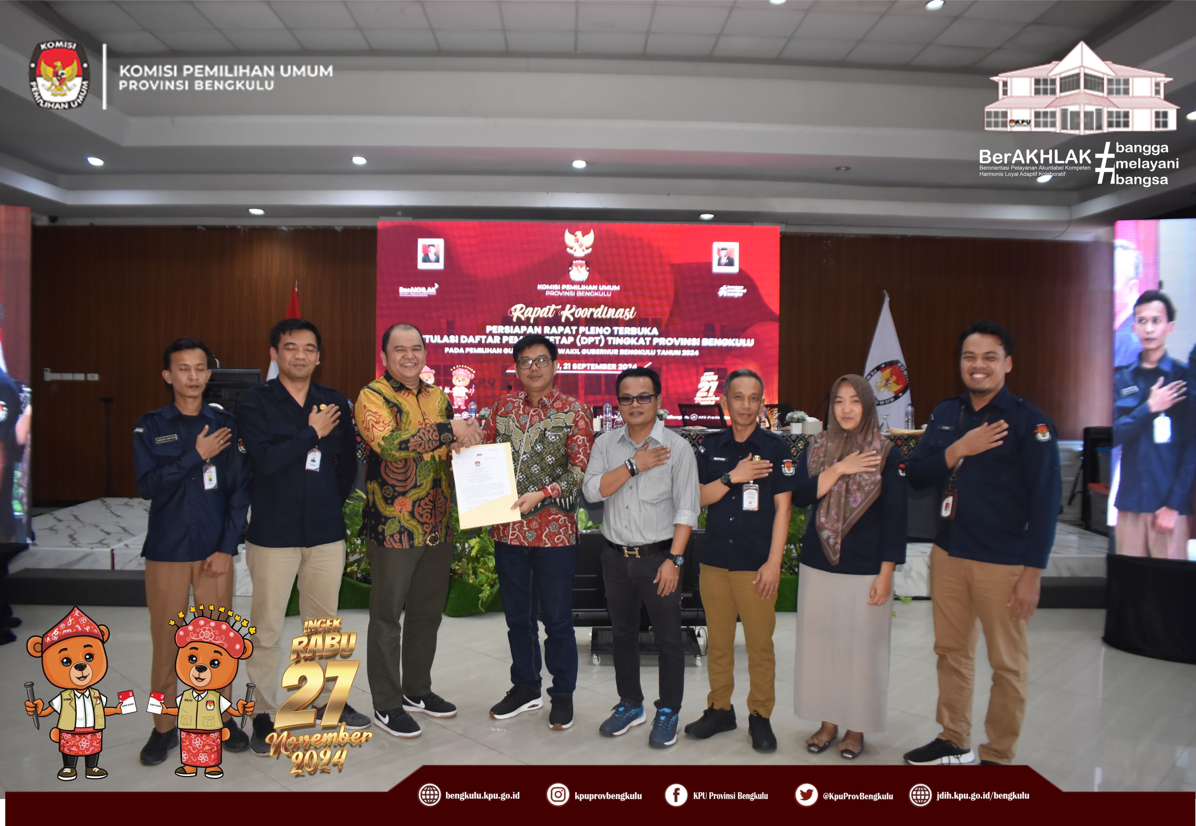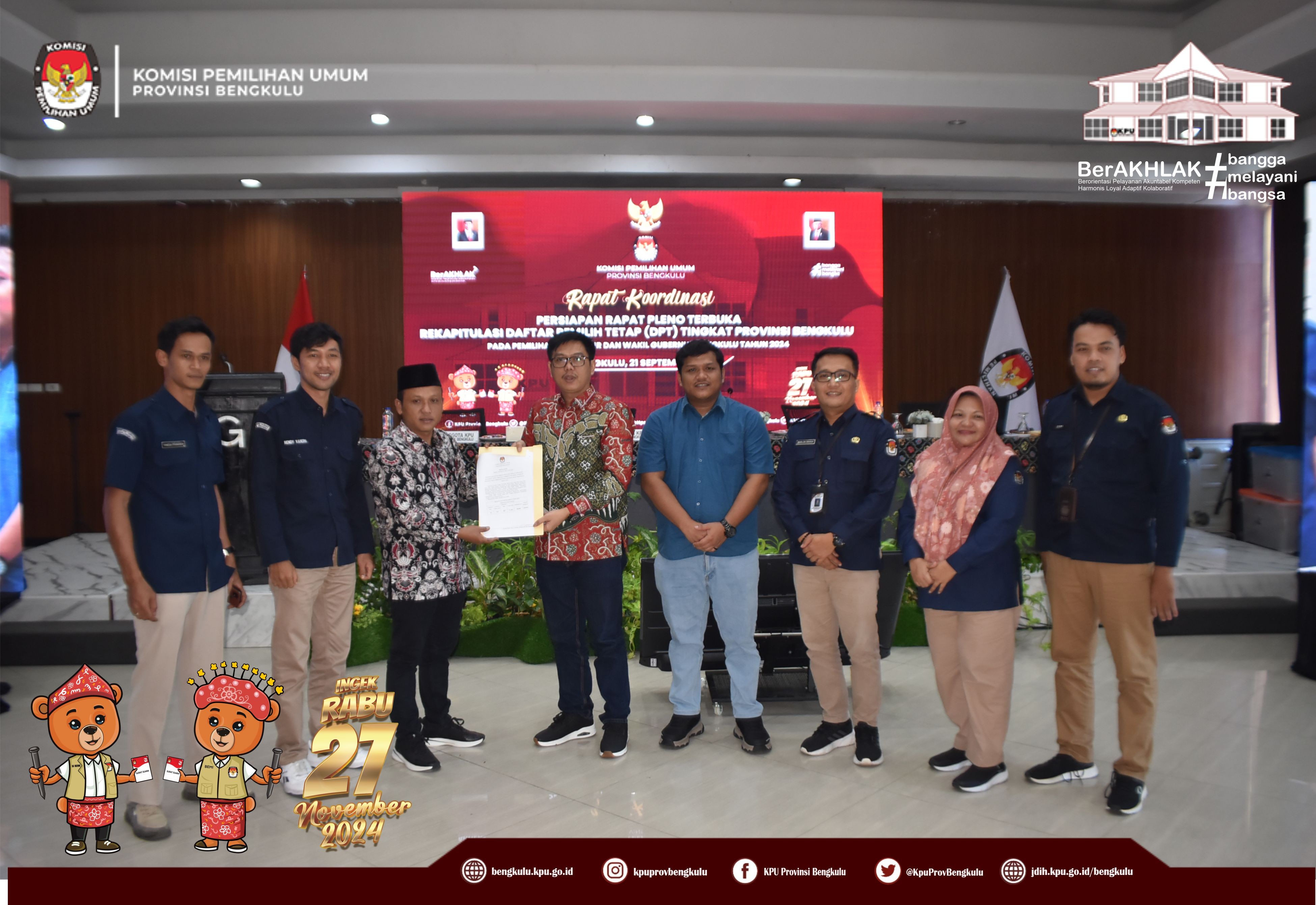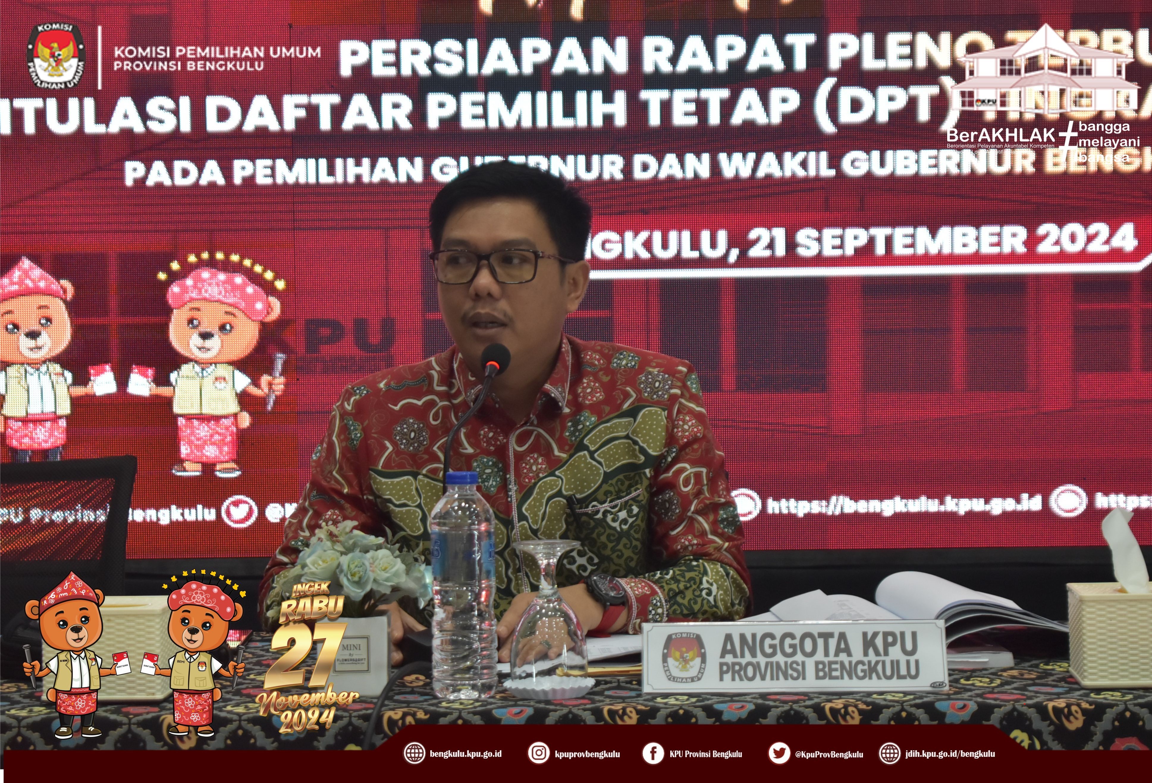 Rapat Koordinasi Persiapan Rapat Pleno Terbuka Rekapitulasi DPT Tingkat Provinsi Bengkulu Pada Pemilihan Serentak Tahun 2024
