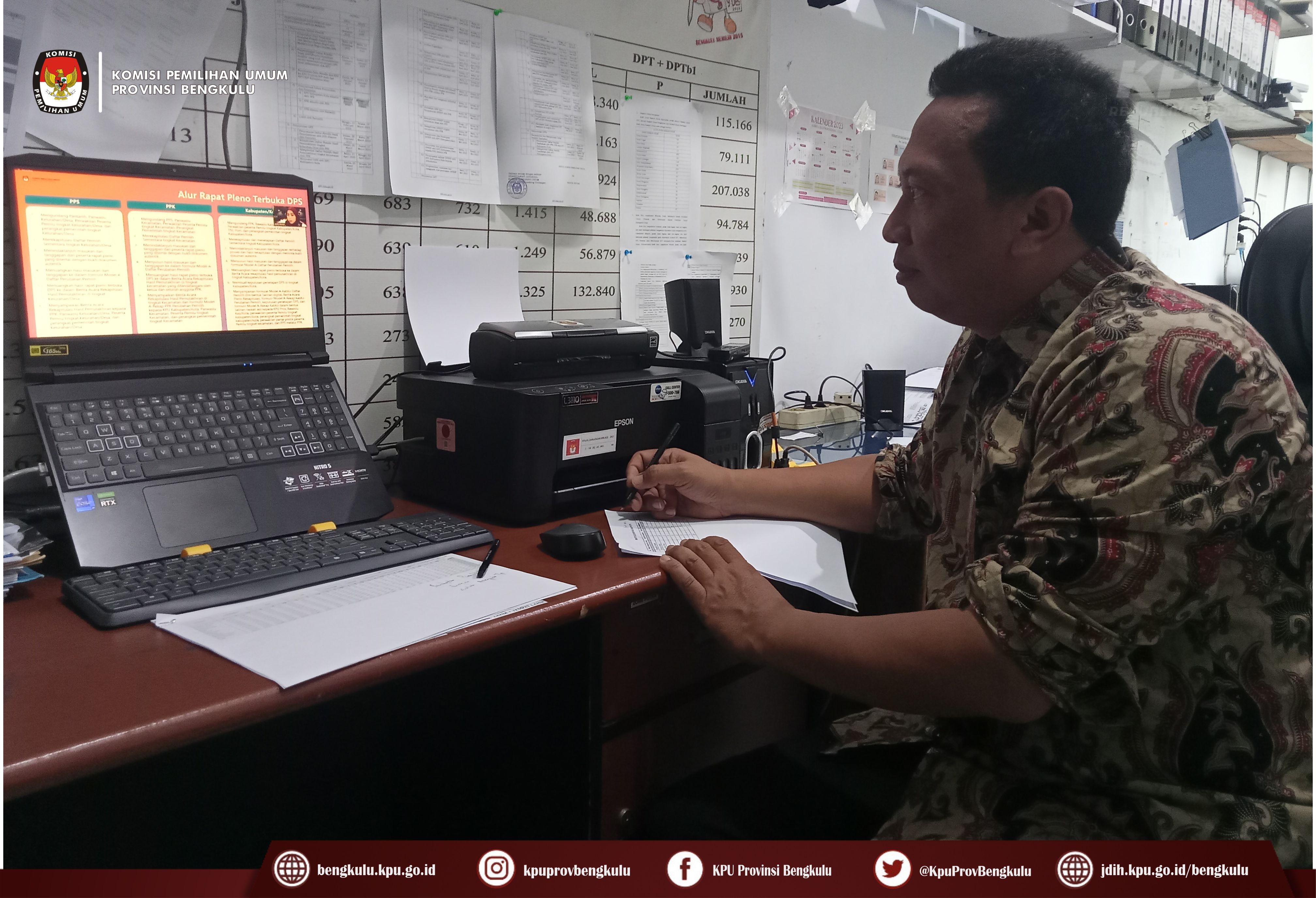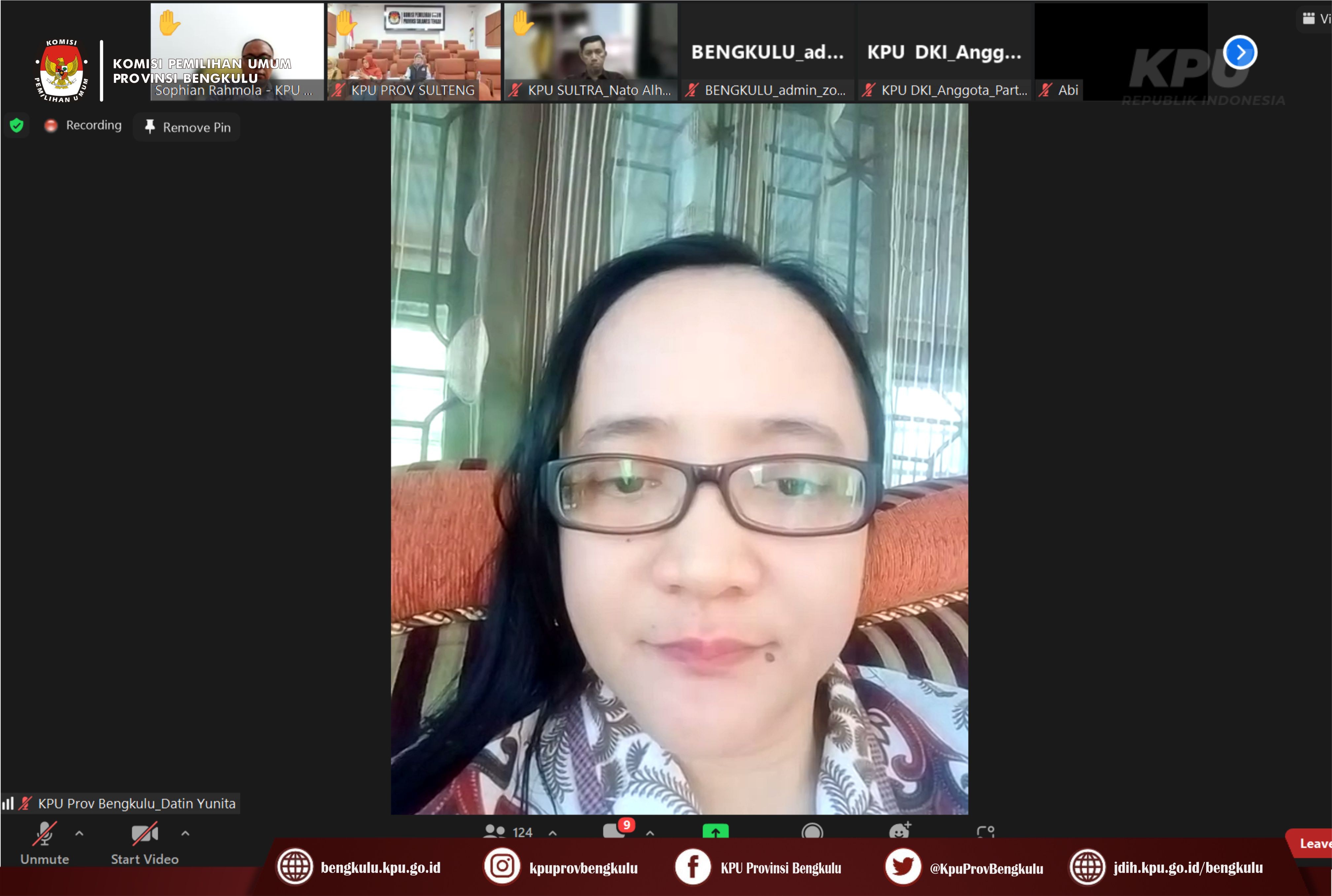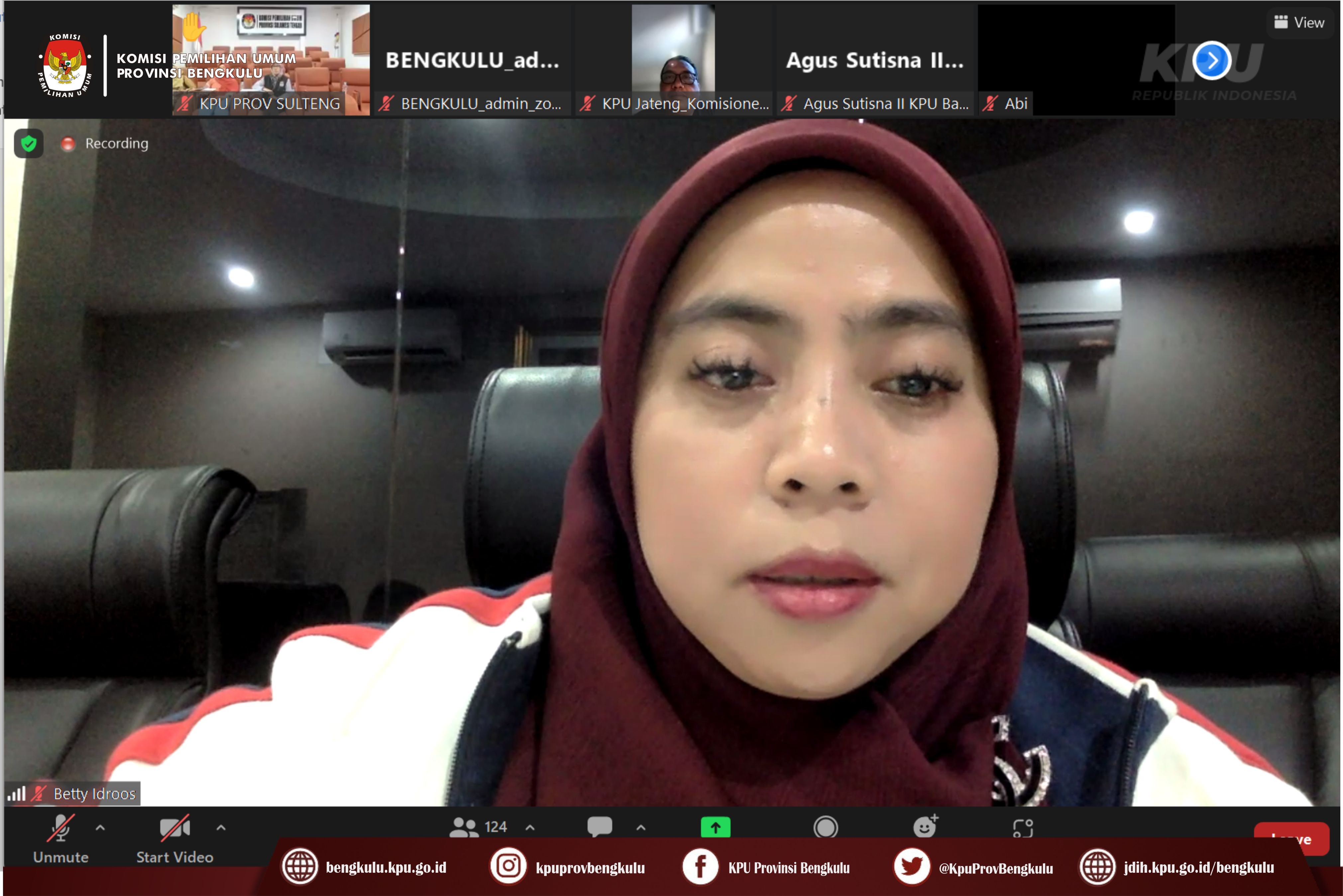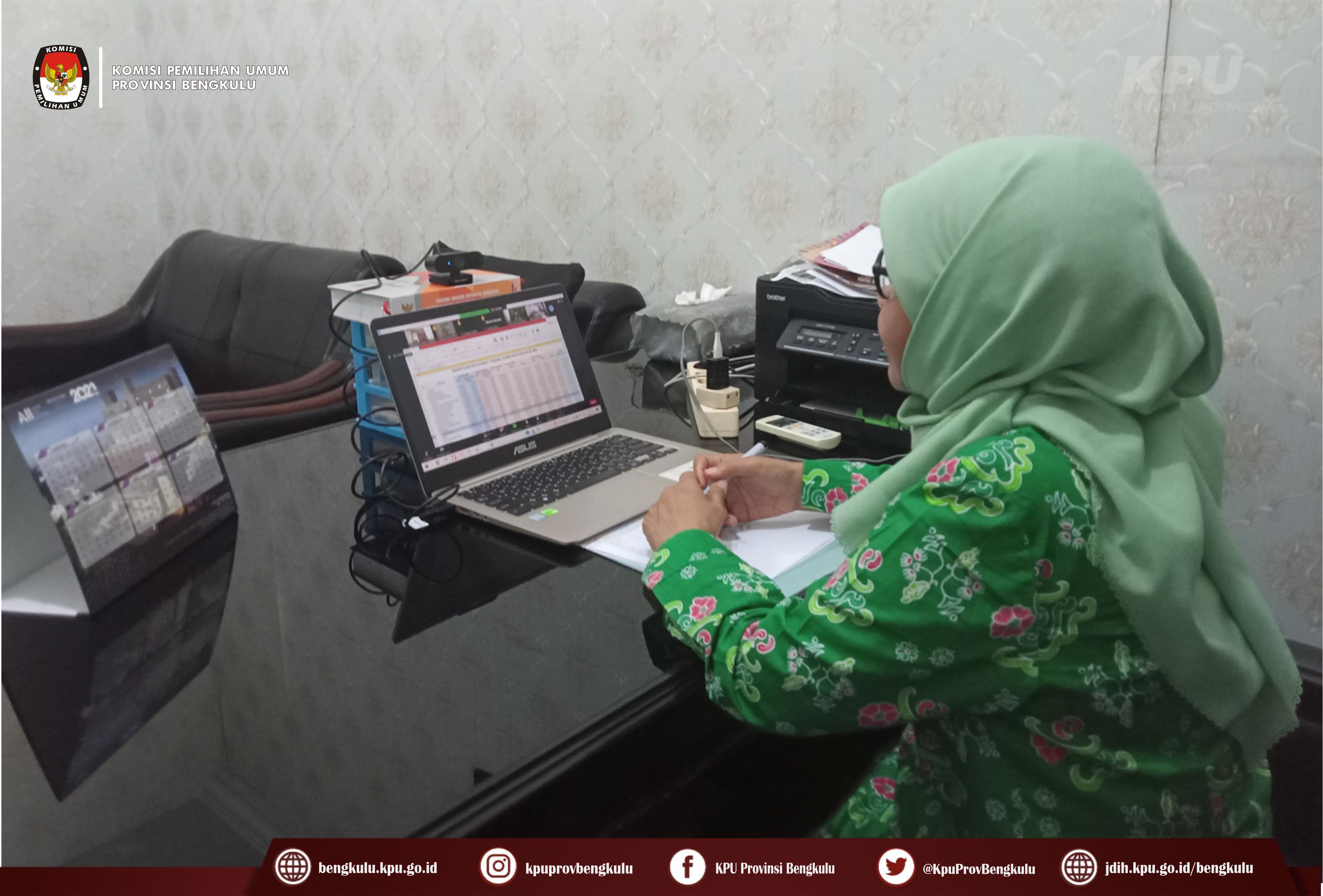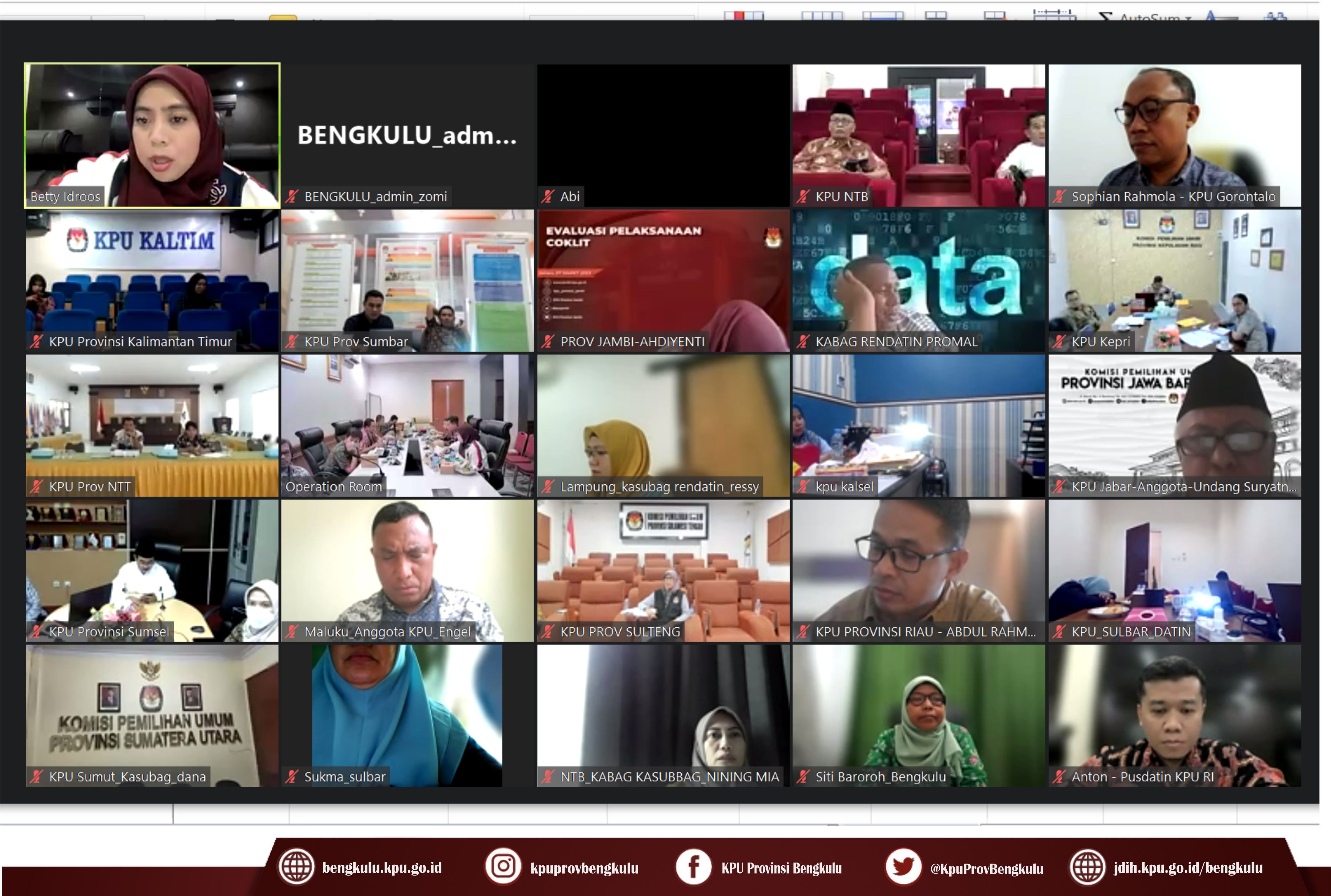 Bengkulu-bengkulu.kpu.go.id, Anggota KPU Provinsi Bengkulu Siti Baroroh bersama Kasubbag Data dan Informasi Yunita Dika Fitri dan Admin/Operator Sidalih mengikuti Rapat Koordinasi Tindaklanjut Evaluasi Coklit Dalam Negeri Pemilu Tahun 2024 secara daring (zoom meeting) pada Jum’at (10/3/2023). ‘