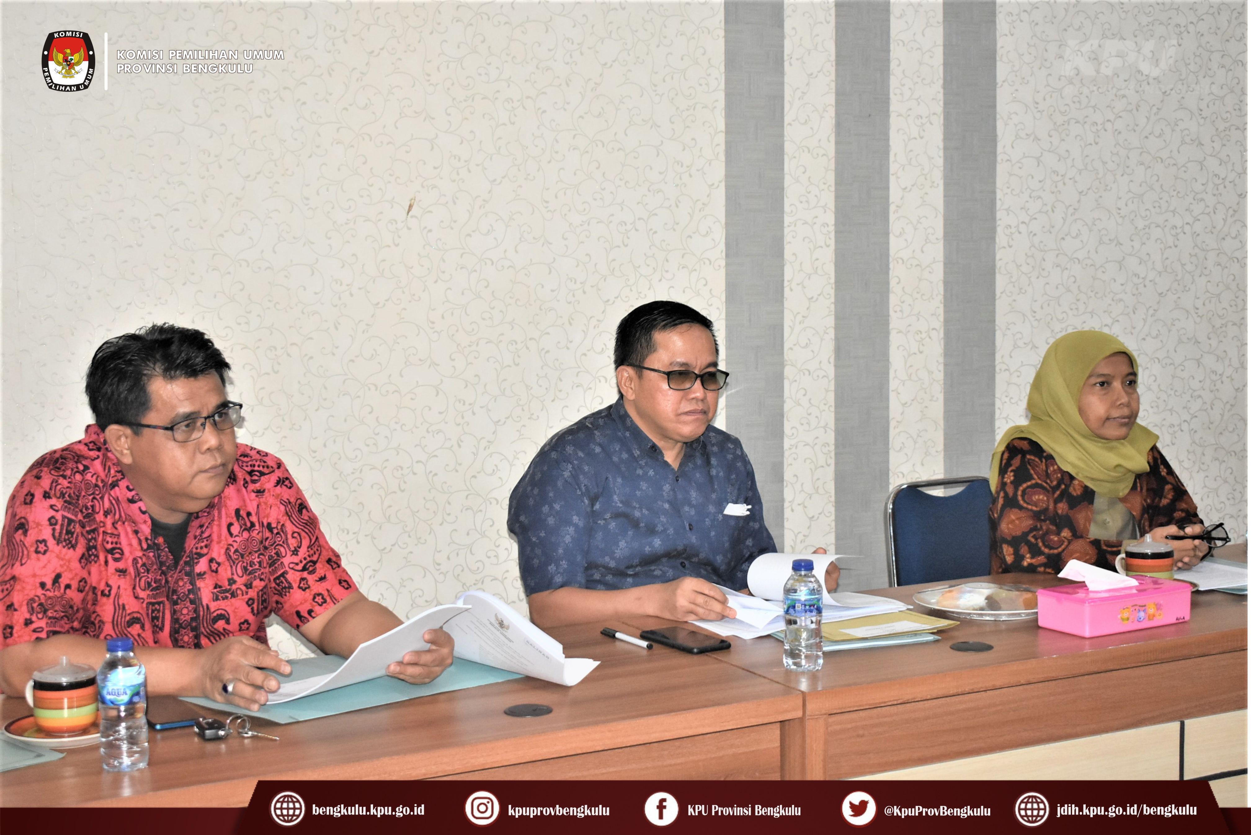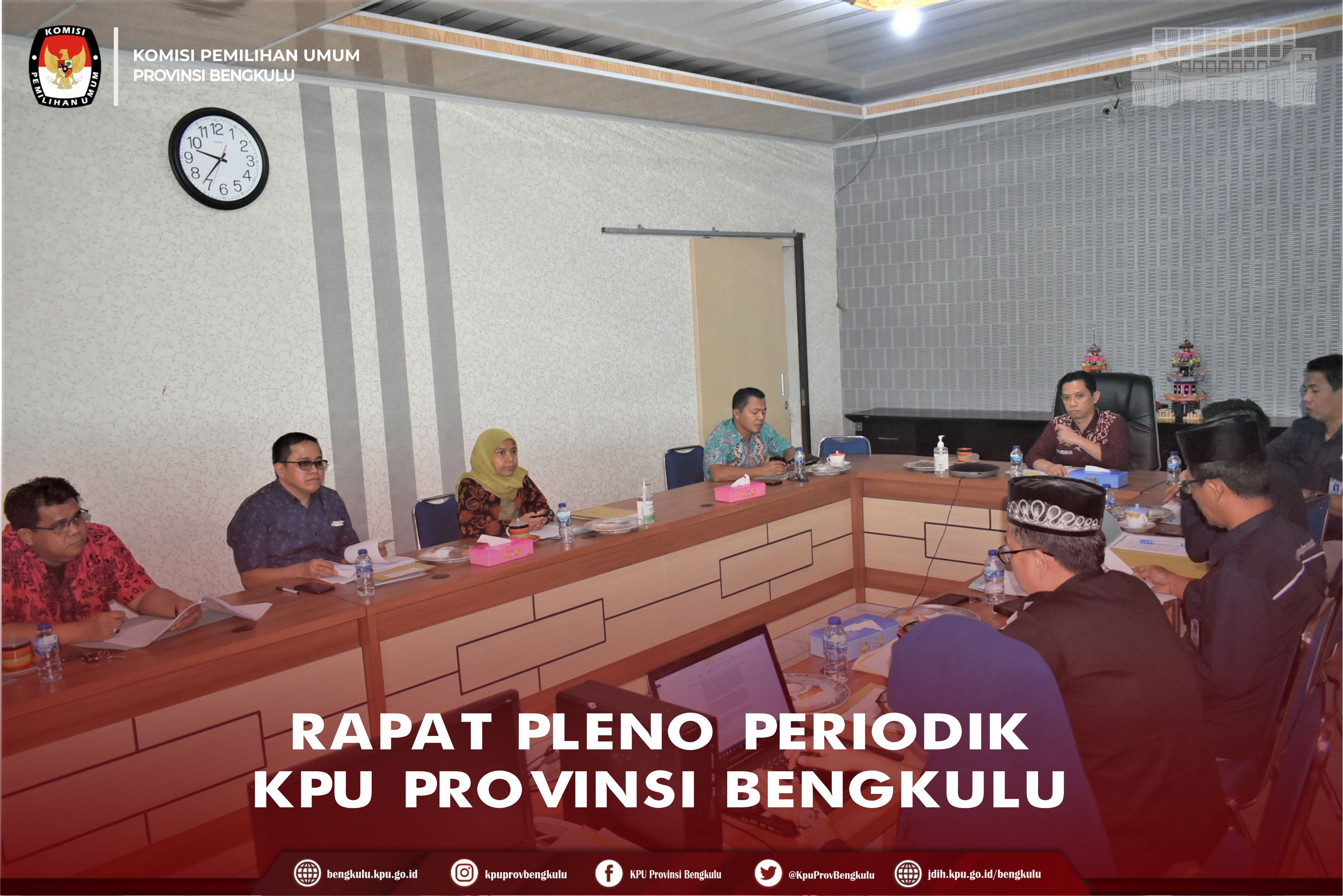 #TemanPemilih, KPU Provinsi Bengkulu melaksanakan Rapat Pleno Periodik, Selasa (28/6). Rapat diikuti Ketua KPU Provinsi Bengkulu Irwan Saputra, Anggota Eko Sugianto, Siti Baroroh, Darlinsyah dan Emex Verzoni, Sekretaris Kemas M Ajir dan Para Kabag. Agenda yang dibahas dalam rapat adalah rencana kegiatan Pemutakhiran Data Pemilih Berkelanjutan Semester I Tingkat Provinsi Bengkulu yang akan dilaksanakan pada awal juli mendatang, rencana aksi reformasi birokrasi dan pencanangan di lingkungan KPU Provinsi serta evaluasi pelaksanaan sistem kerja pada masa tahapan Pemilu Tahun 2024.