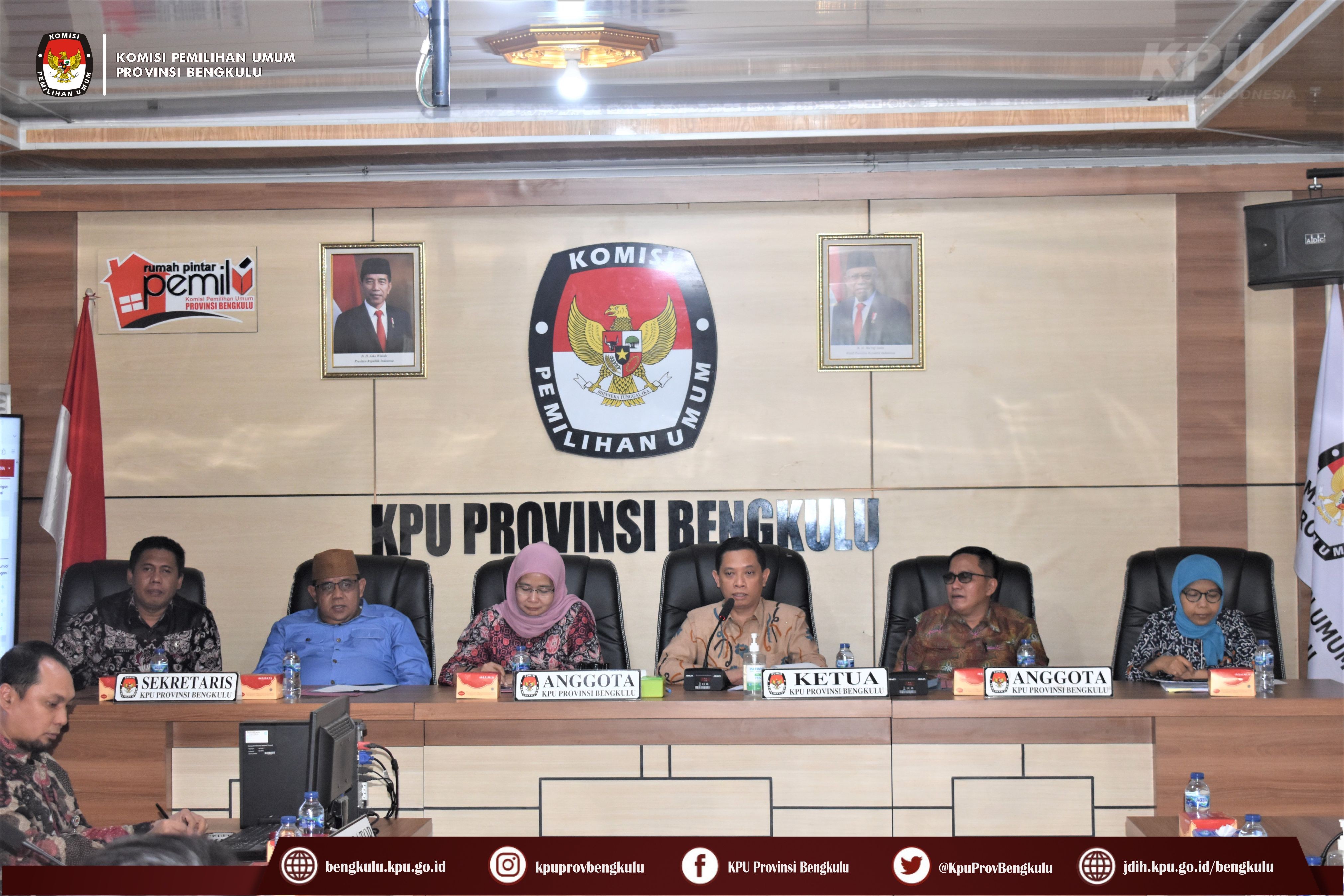 Bengkulu-bengkulu.kpu.go.id, Ketua KPU Provinsi Bengkulu Irwan Saputra bersama Anggota KPU Provinsi Bengkulu Siti Baroroh, Darlinsyah, Emex Verzoni, dan Irna Riza Yuliastuty serta Sekretaris Kemas Mohammad Ajir membuka Rapat Pleno Rekapitulasi Hasil Verifikasi Administrasi Perbaikan Kesatu Dukungan Minimal Pemilih Bakal Calon Perseorangan Anggota Dewan Perwakilan Daerah (DPD) RI Daerah Pemilihan Provinsi Bengkulu bertempat di RPP KPU Provinsi Bengkulu, Jum’at (3/2/2023).