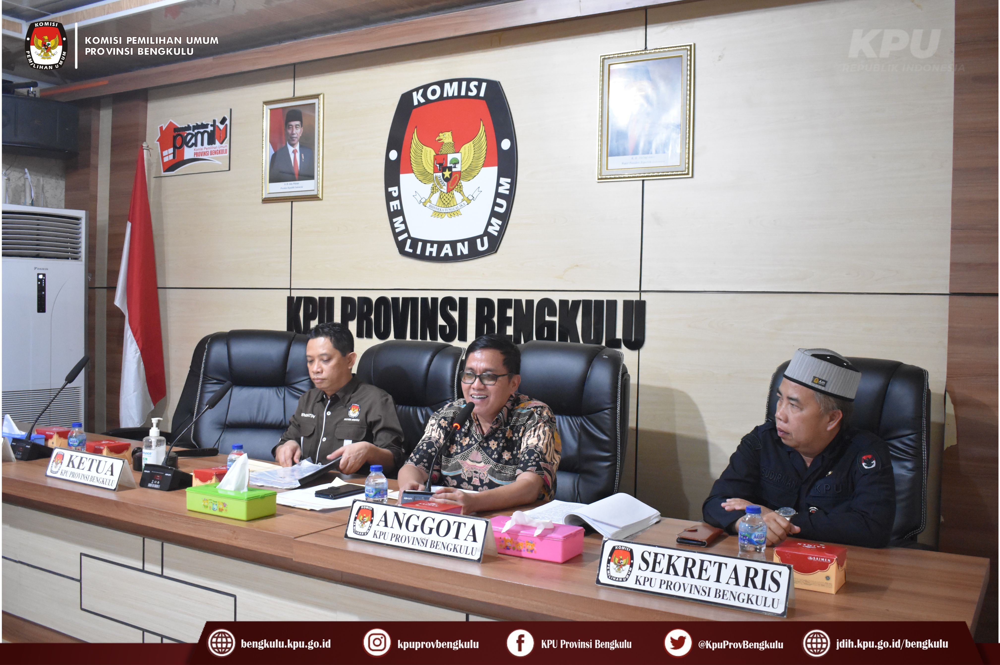 Rapat Pleno Rekapitulasi Verifikasi Persyaratan Dukungan Minimal Pemilih Tahap Kesatu Bakal Calon Anggota DPD RI Dapil Provinsi Bengkulu