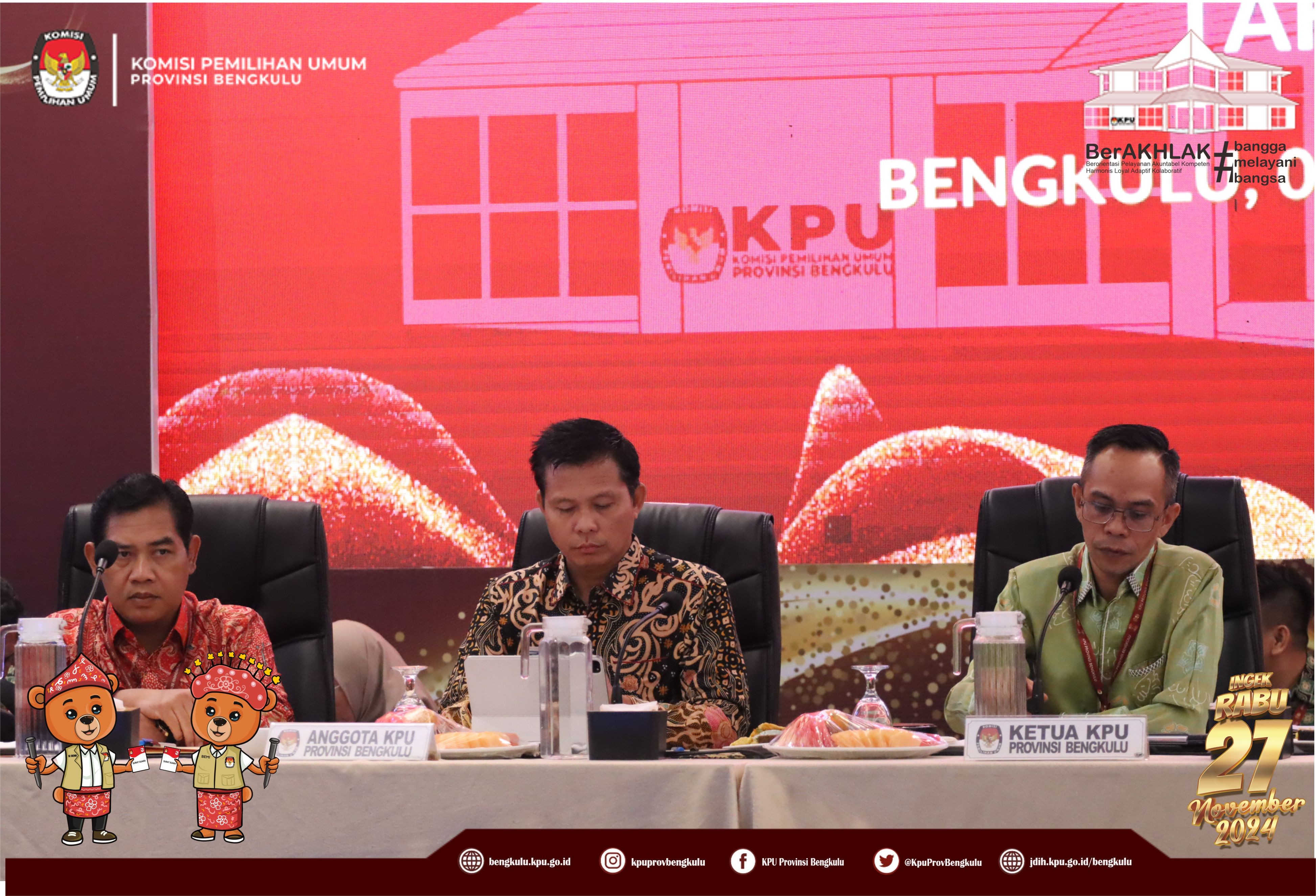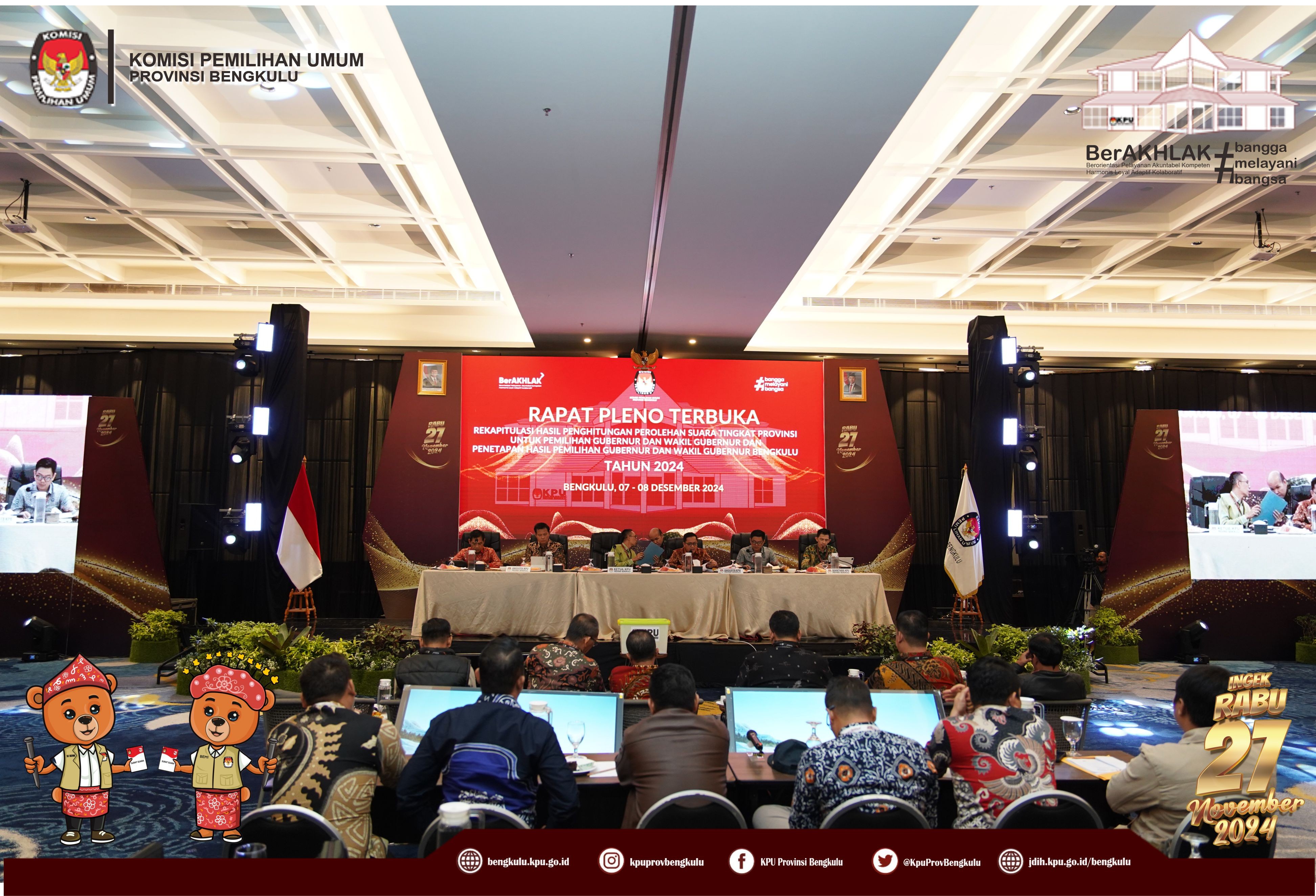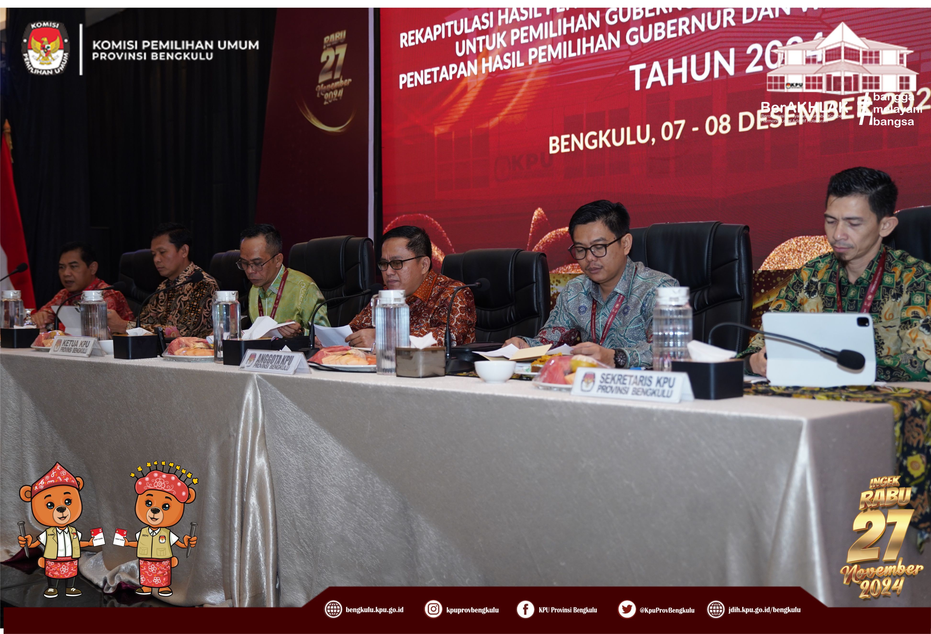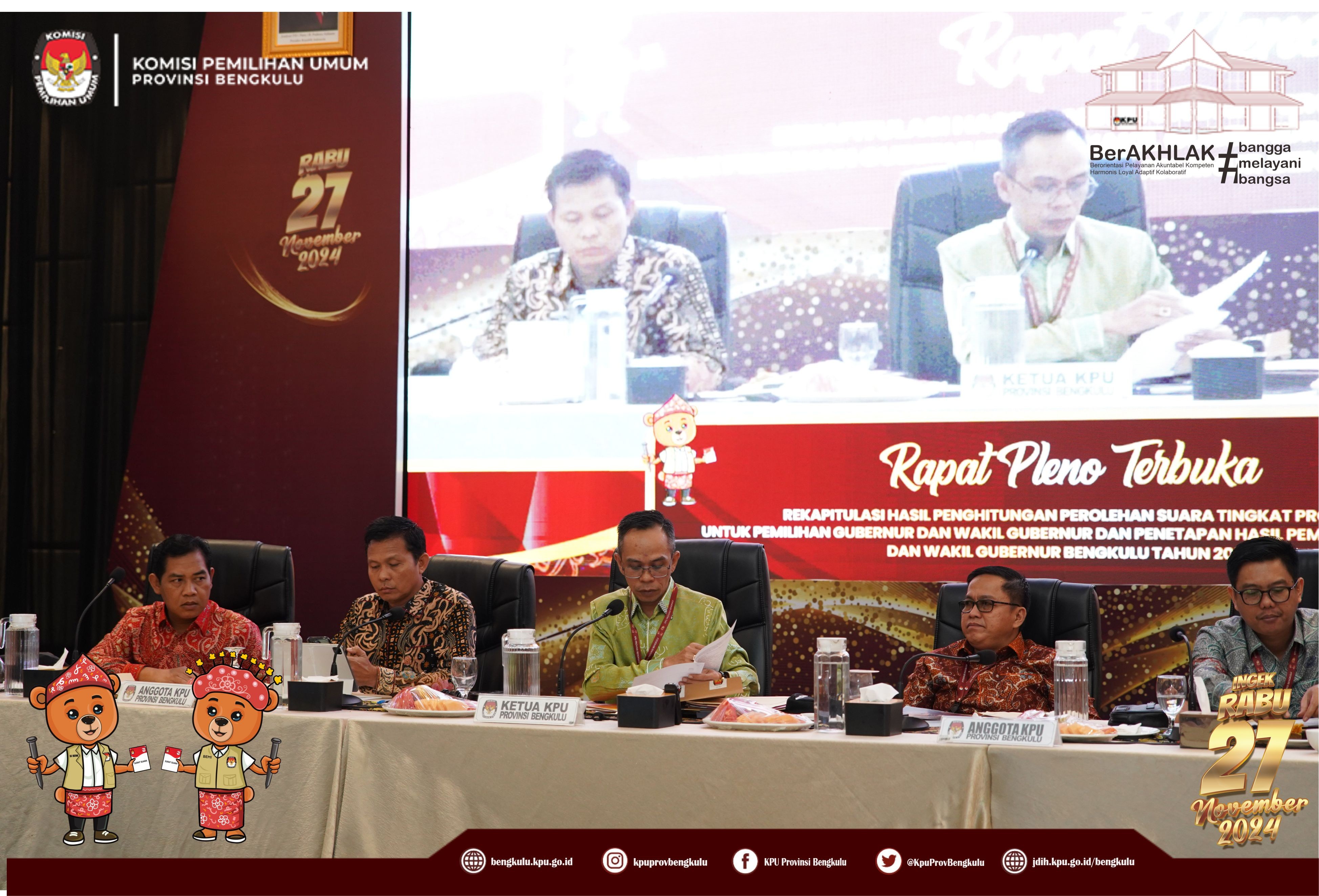 Rapat Pleno Terbuka Rekapitulasi Hasil Penghitungan Perolehan Suara Pemilihan Gubernur dan Wakil Gubernur Bengkulu Tahun 2024