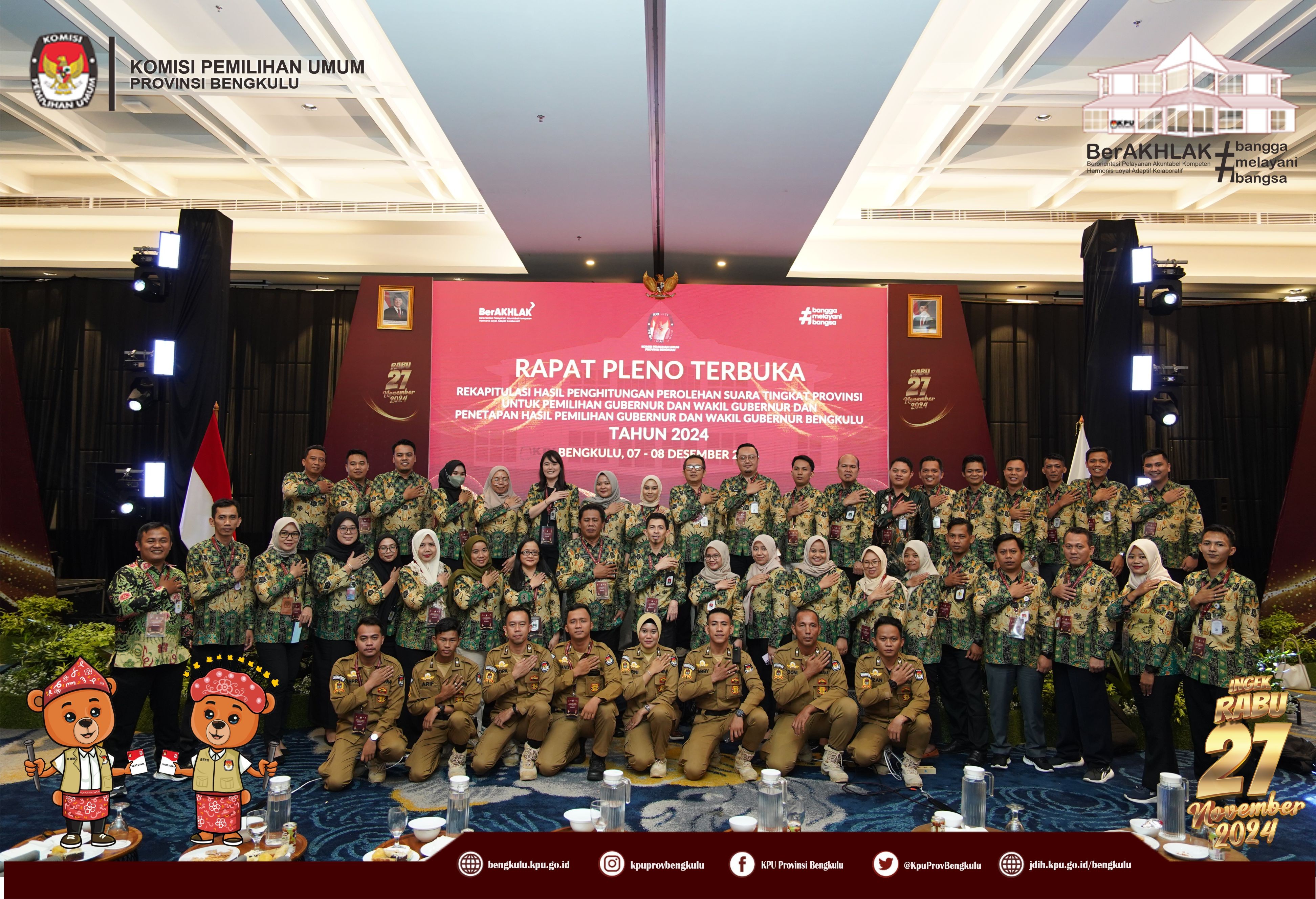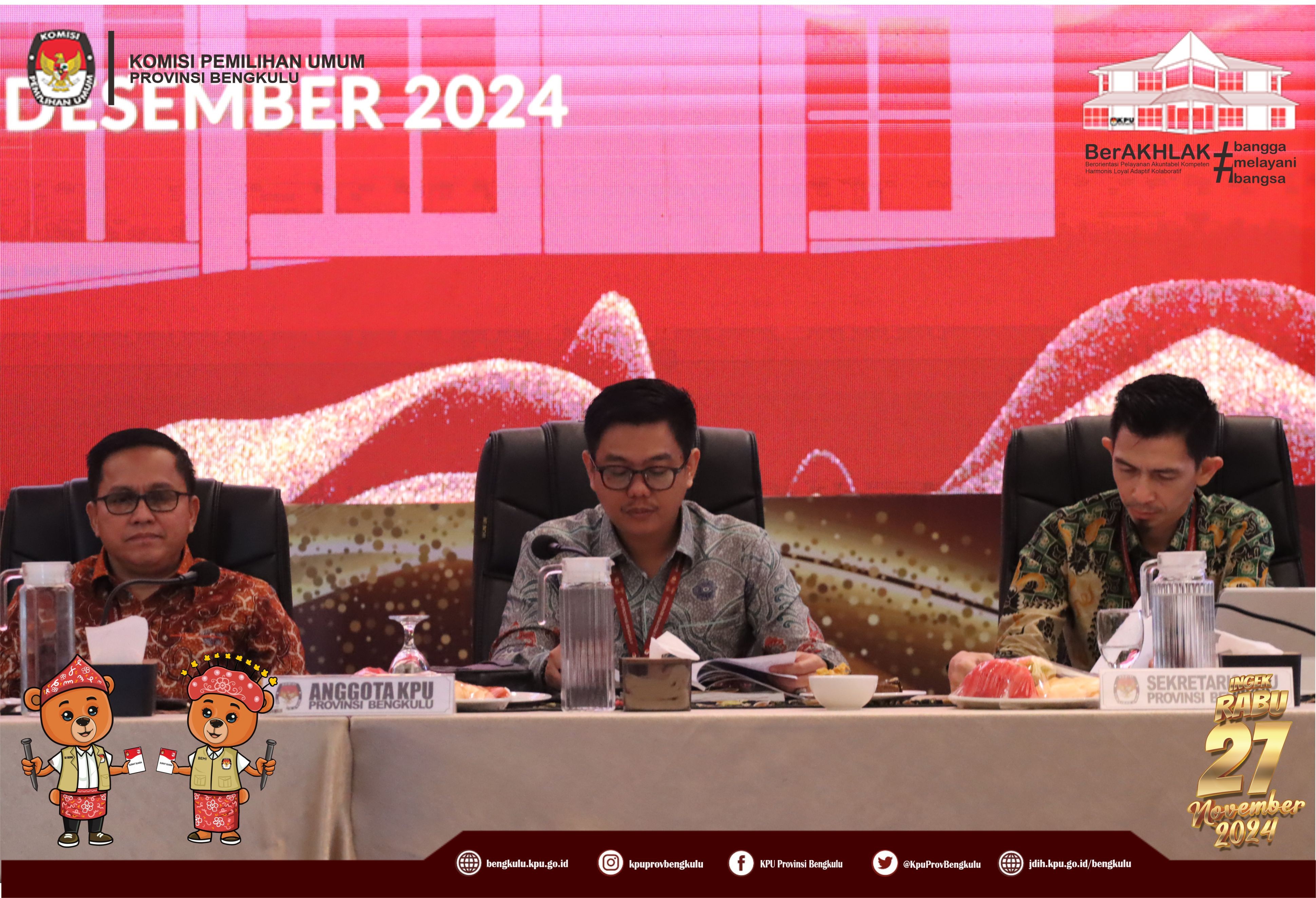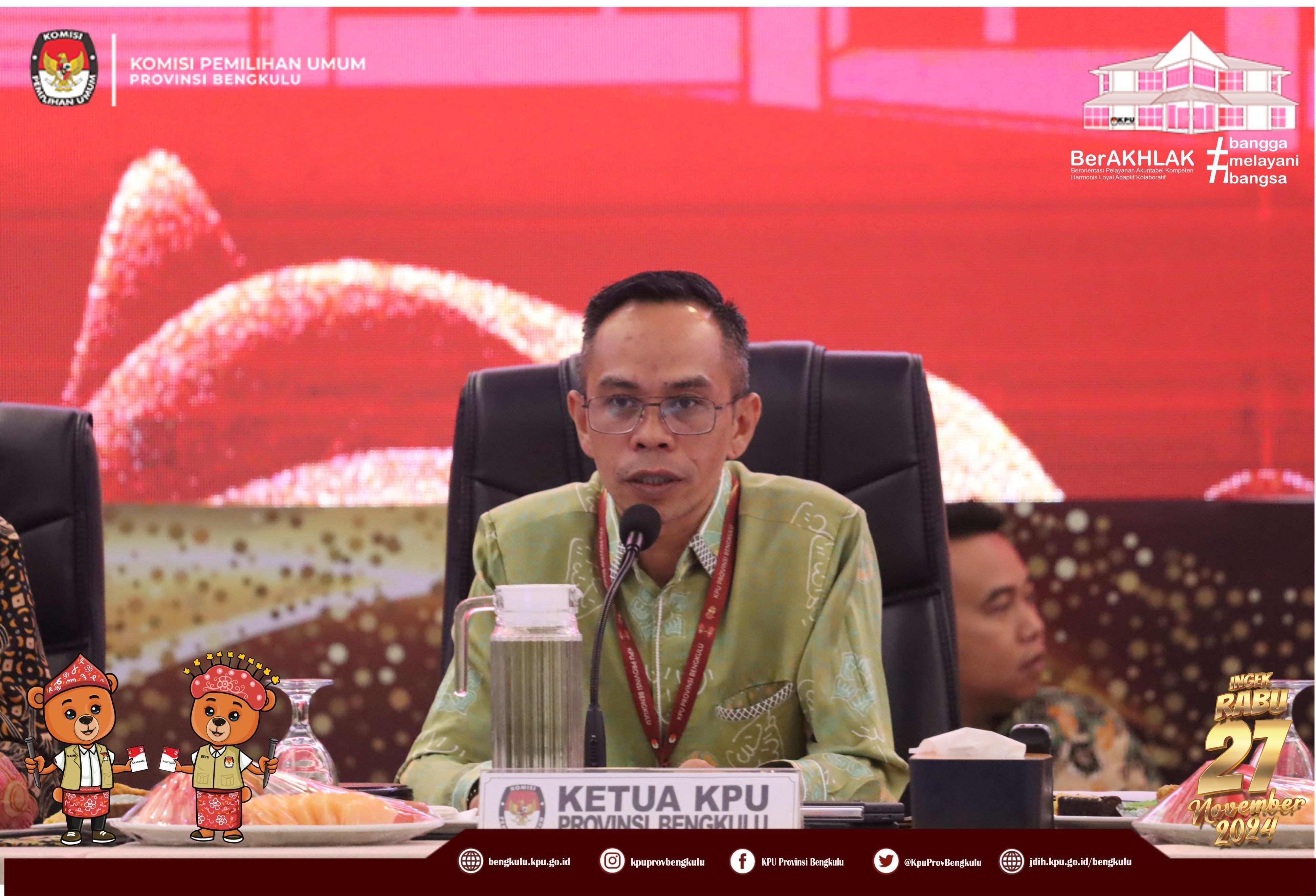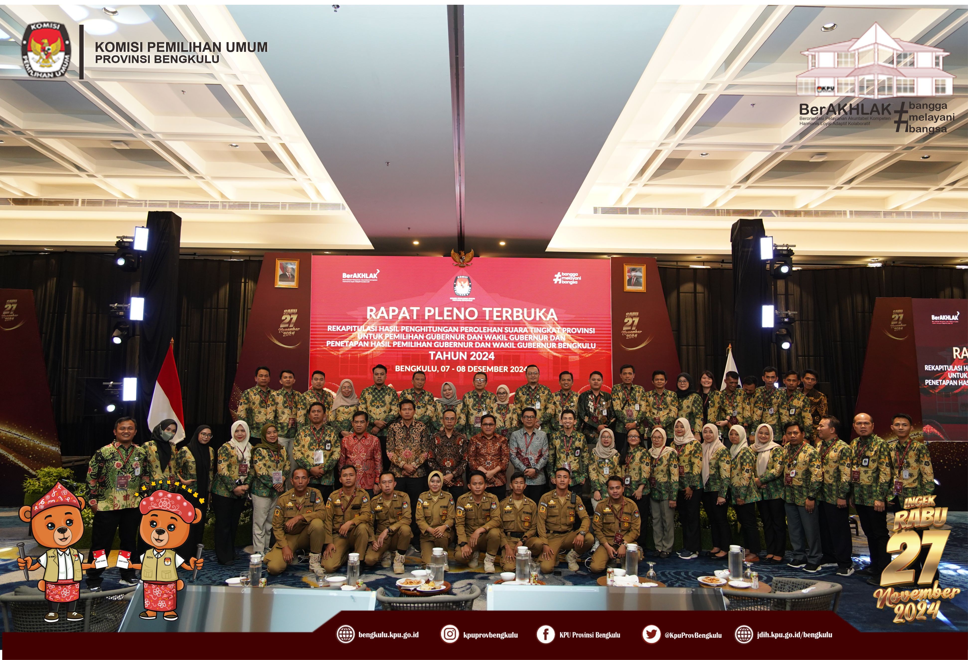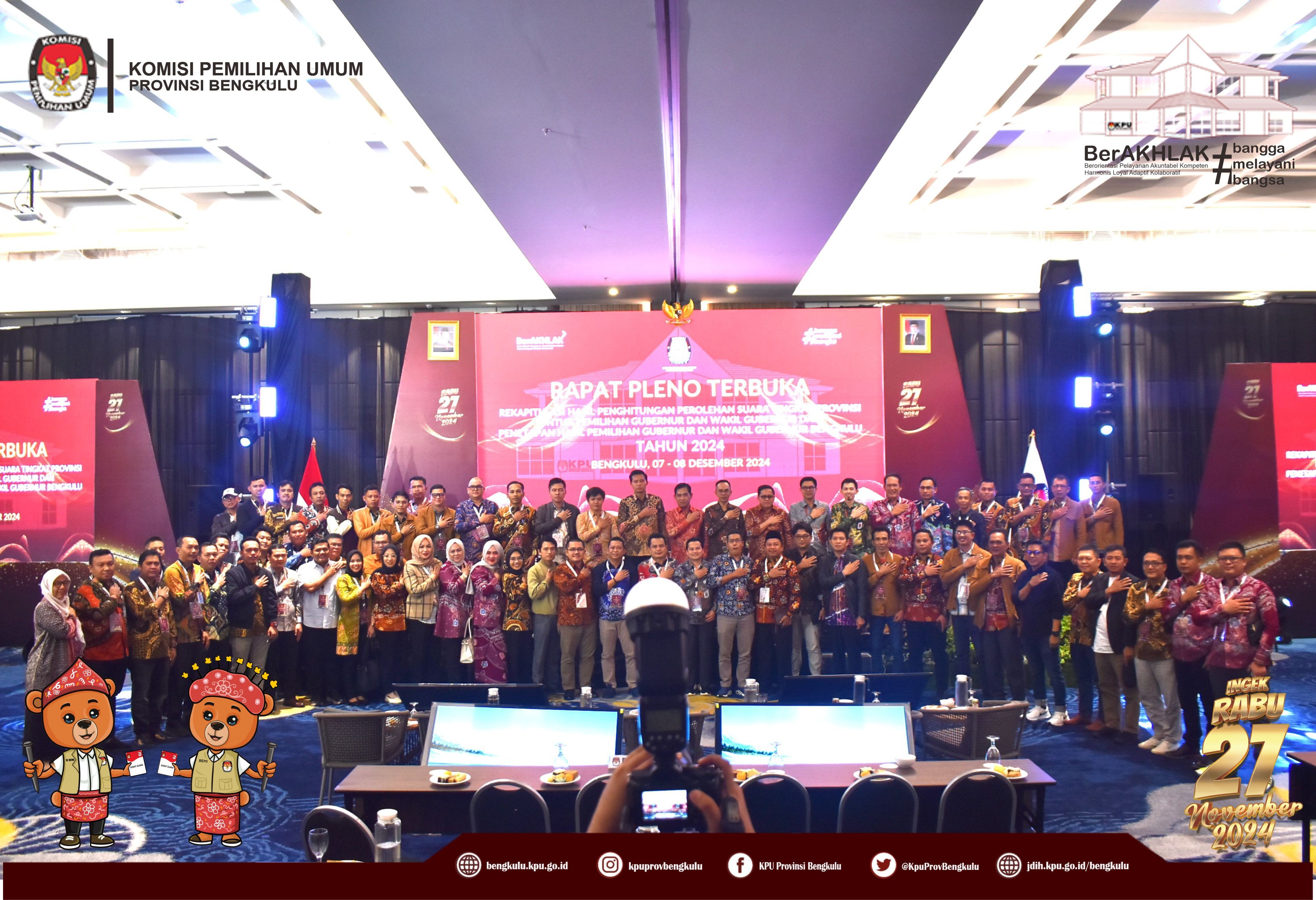 Rapat Pleno Terbuka Rekapitulasi Hasil Penghitungan Perolehan Suara Pemilihan Gubernur dan Wakil Gubernur Bengkulu Tahun 2024