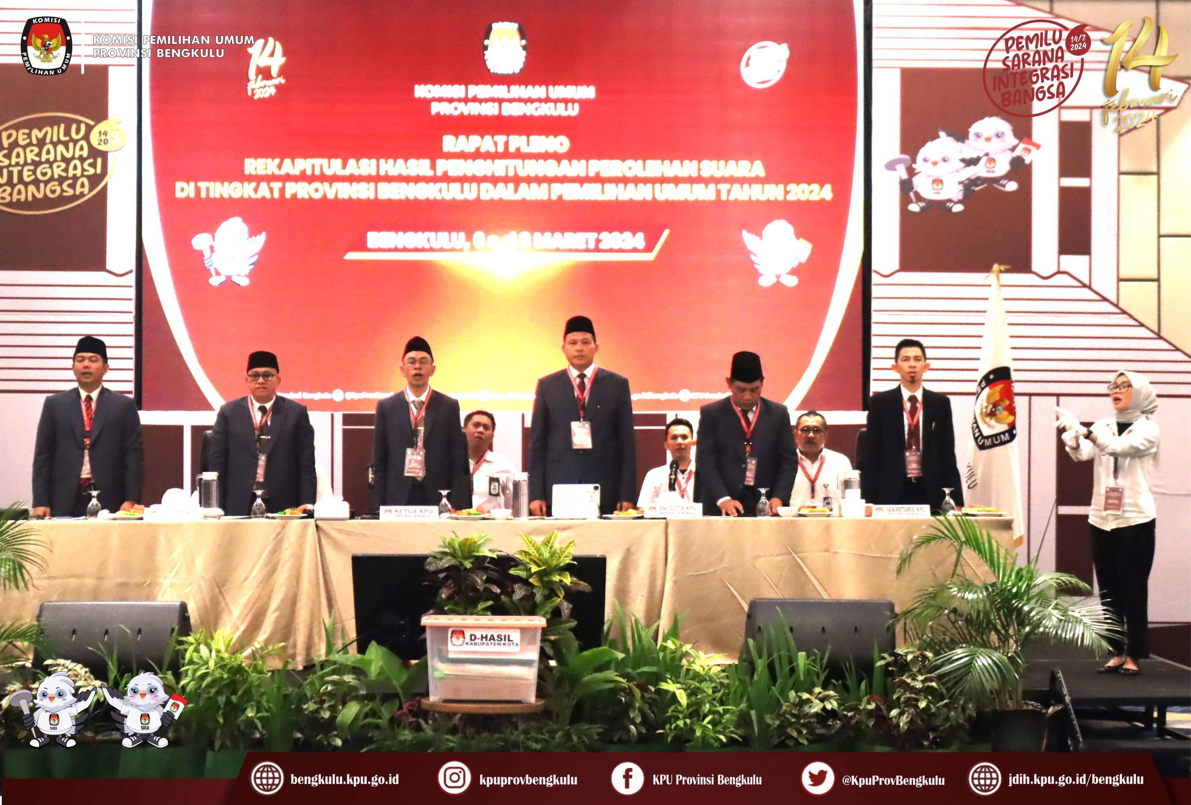 Rapat Pleno Terbuka Rekapitulasi Hasil Penghitungan Perolehan Suara Tingkat Provinsi Bengkulu Dalam Pemilihan Umum Tahun 2024