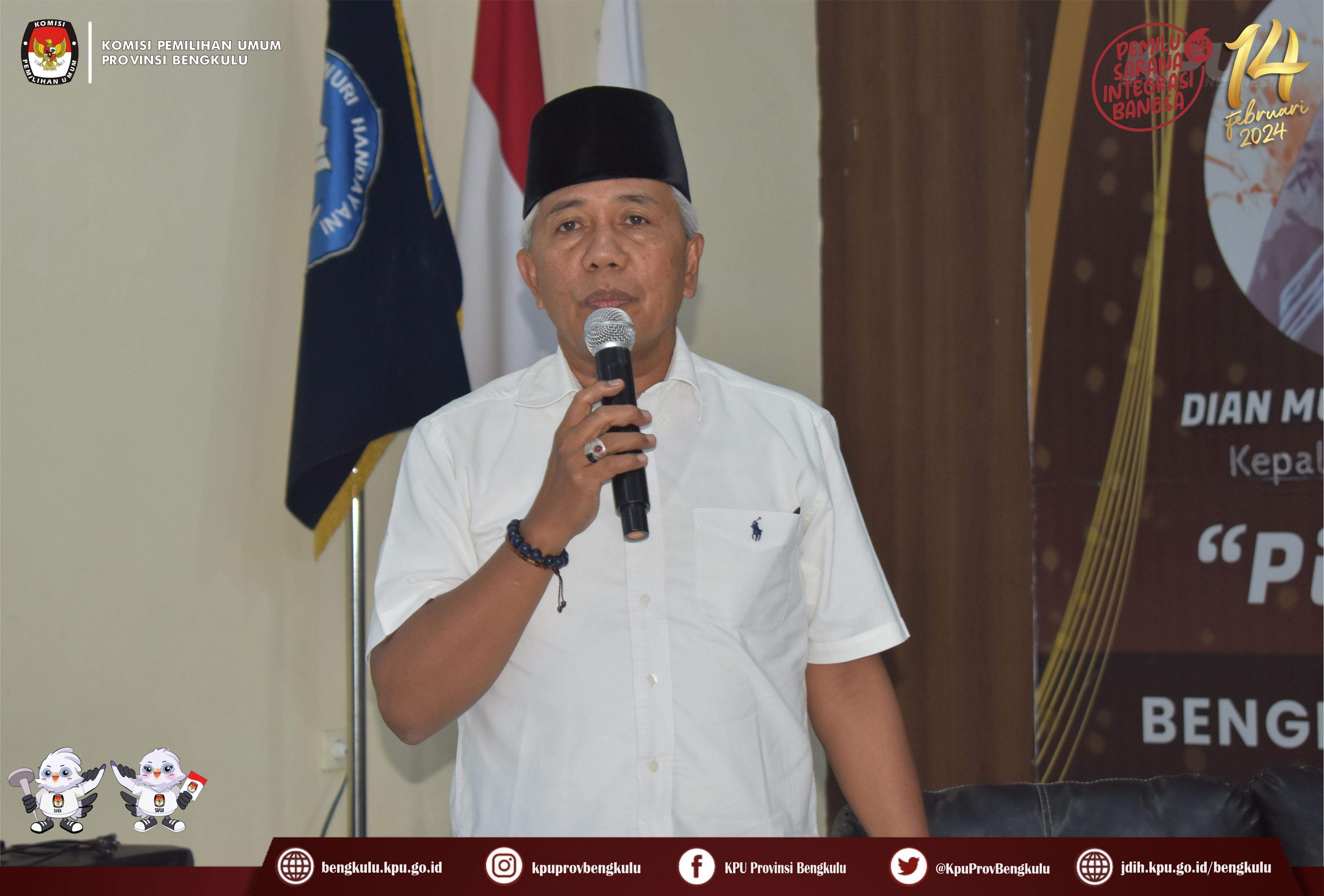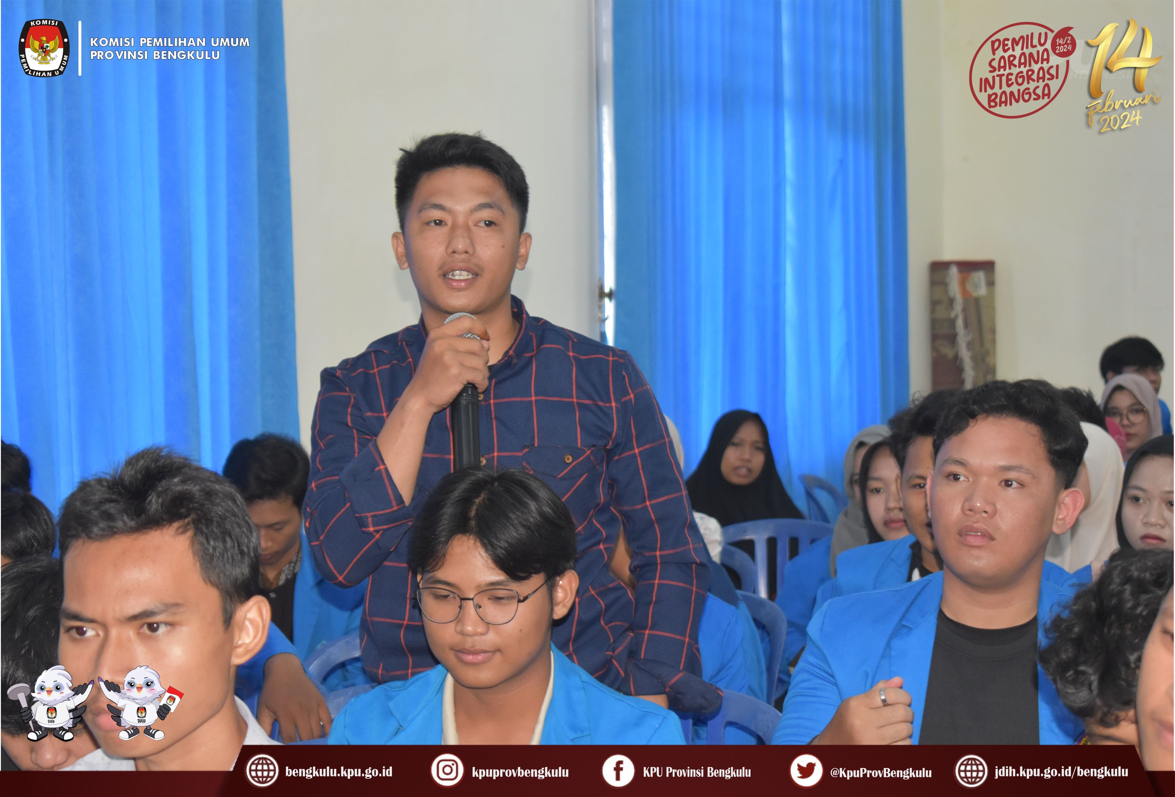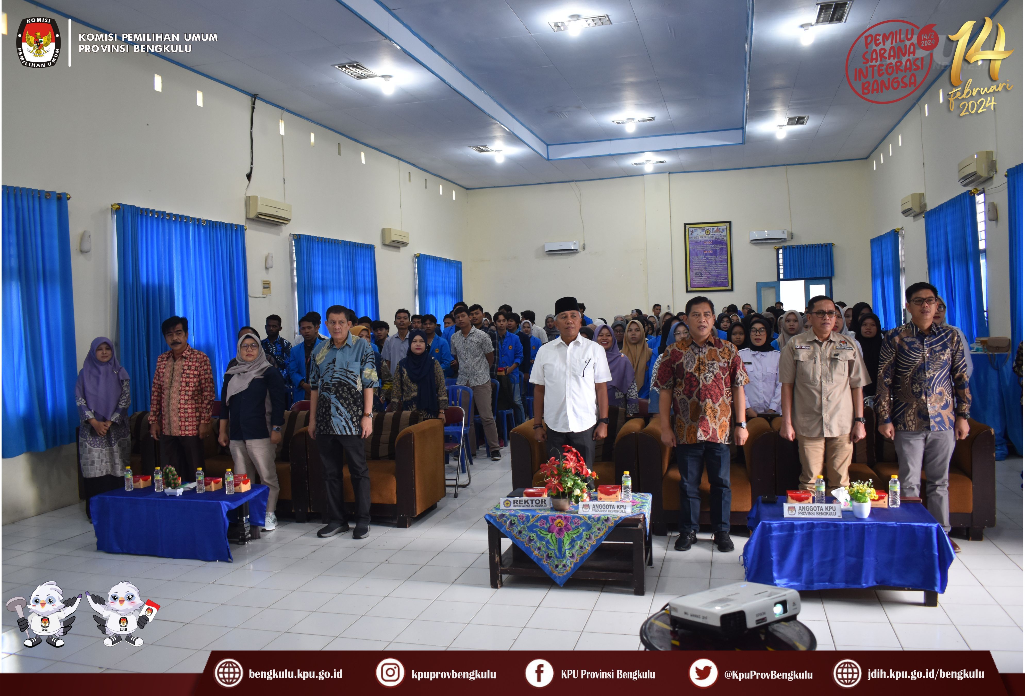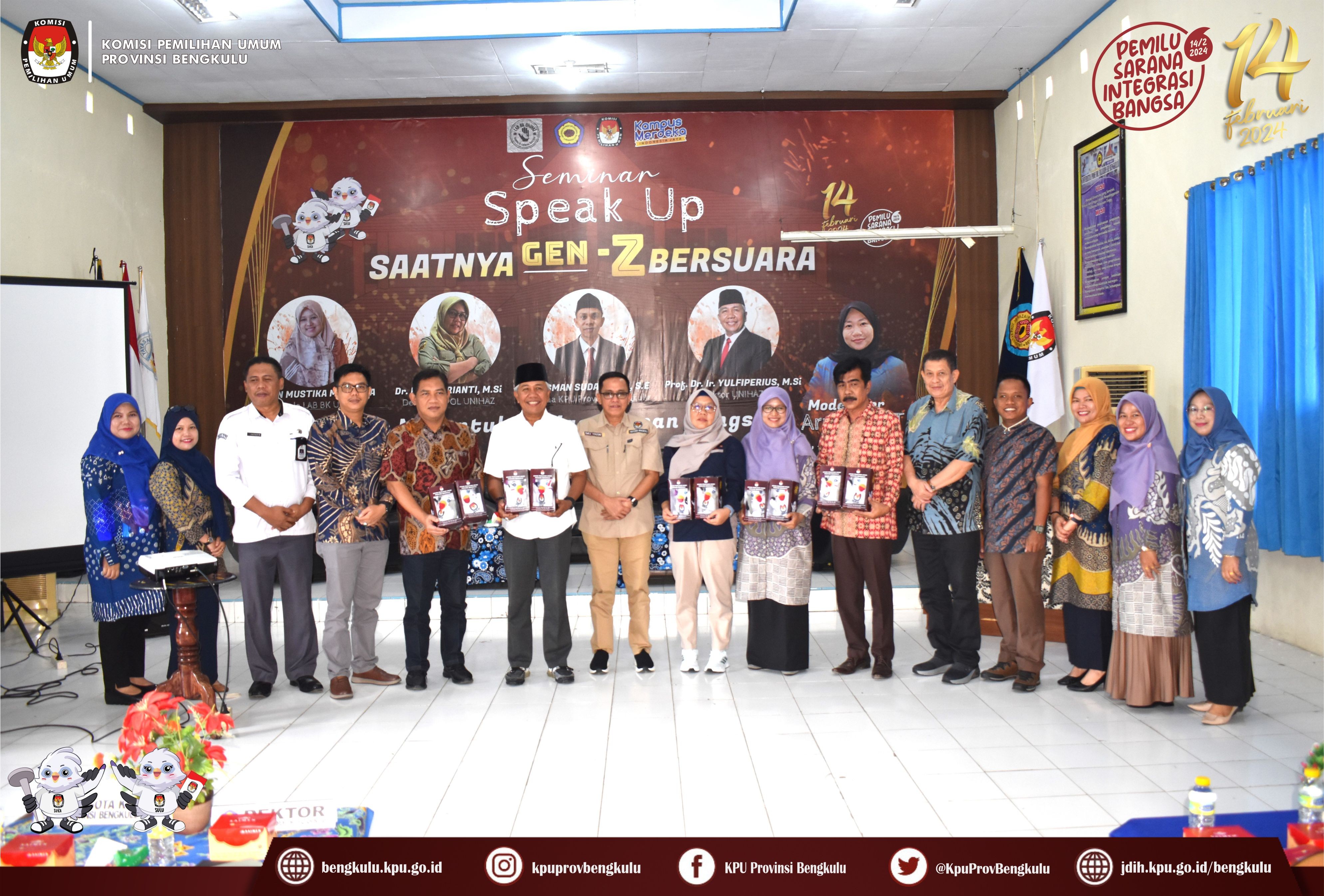 Bengkulu, bengkulu.kpu.go.id - Dalam rangka melaksanakan sosialisasi dan Pendidikan Pemilih kepada Pemilih Pemula dan Pemuda, KPU Provinsi Bengkulu hadir dalam Seminar Speak Up Saatnya Generasi Z Bersuara dengan tema Pilihanmu Menentukan Masa Depan Bangsa yang diselenggarakan Unihaz Bengkulu, Kamis (4/1/2024) bertempat di Aula Gedung Rektorat Lantai 3. Hadir dalam acara Anggota KPU Provinsi Bengkulu Alpin Samsen, Dodi Hendra Supiarso dan Emex Verzoni, Rektor Unihaz Bengkulu Yulfiperius, Dekan, Ketua Program Studi, Dosen, dan Civitas Akademik Unihaz Bengkulu. Peserta acara adalah Mahasiswa/i perwakilan program studi Universitas Bengkulu. Acara yang dibuka dengan menyanyikan Lagu Kebangsaan Indonesia Raya, Jingle Pemilu dan Mars Mahasiswa, dilanjutkan dengan Sambutan KPU Provinsi Bengkulu yang diwakili Emex Verzoni, Sambutan dari Dekan FKIP Unihaz Bengkulu Dedi Guntar sekaligus membuka acara. Emex menyampaikan apresiasi kepada Unihaz Bengkulu yang telah melaksanakan kegiatan seminar dalam rangka sosialisasi dan pendidikan pemilih kepada pemilih pemula dan pemula agar berpartisipasi menggunakan hak pilihnya pada Rabu 14 Februari 2024 mendatang. Selain itu, ditambahkan Emex ke depannya KPU Provinsi Bengkulu berharap kerjasama dengan Unihaz Bengkulu dapat terjalin secara berkesinambungan. Sementara Itu, Dedi mengatakan bahwa peran Gen Z dalam pemilu sangatlah penting karena berdasarkan informasi yang hampir 40 % pemilih berasal dari Gen Z, untuk itu mari Gunakan Hak Pilih dengan datang ke TPS pada Rabu 14 Februari 2024.