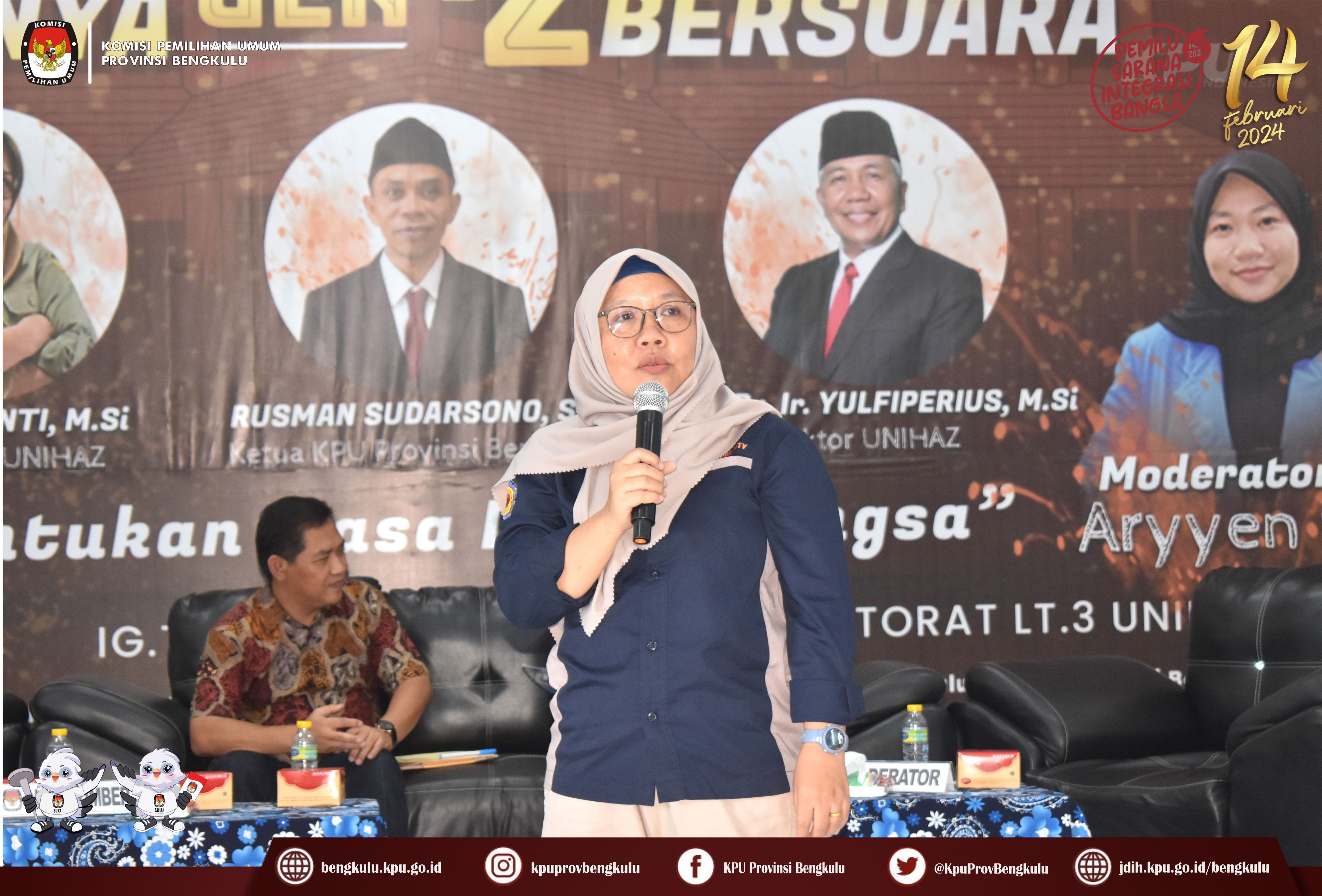 Acara Seminar yang dimoderatori Aryyen DT dengan menghadirkan narasumber, yaitu Anggota KPU Provinsi Bengkulu Dodi Hendra Supiarso, Rektor Unihaz Yulfiperius, Dekan Fisipol Unihaz Heni Aprianti dan Kepala Lab BK Unihaz Dian Mustika Maya. Yulfiperius menegaskan kepada pemilih yang termasuk Gen Z yang ada di kampus Unihaz Bengkulu untuk menggunakan hak pilihnya pada Pemilu 2024 dengan memastikan partisipasi pemilih diatas 90 %. Dodi menyampaikan materi Peran Generasi Z dalam Pemilu 2024 diantaranya Pemilu dan 5 jenis Surat Suara, Asas pemilu, trias politika, penyelenggara pemilu, generasi pemilih, jumlah Generasi Z berdasarkan DPT Nasional sebesar 22, 85 % (46.798.450) pemilih dan berdasarkan DPT Provinsi Bengkulu sebesar 23,86 % (356.643) pemilih, syarat pindah memilih, parpol peserta pemilu 2024, partisipasi pemilu 2019 dan Pemilihan 2020, cara menjadi pemilih cerdas dan sebagainya, Heni menjelaskan materi menjadi pemimpin besar dan berpengaruh diantaranya leadership, gaya kepemimpinan, solusi kepemimpinan, karakter good leader dan sebagainya sedangkan Dian menjelaskan materi Dinamika Psikologis Genz Z diantaranya Gen Z sebagai Game Changer, karakteristik Genz Z, Gen Z sangat mengedepankan konsep work life balance dan sebagainya. Selain materi, acara disi dengan diskusi tanya jawab, pembagian doorprize dan ditutup dengan foto bersama
