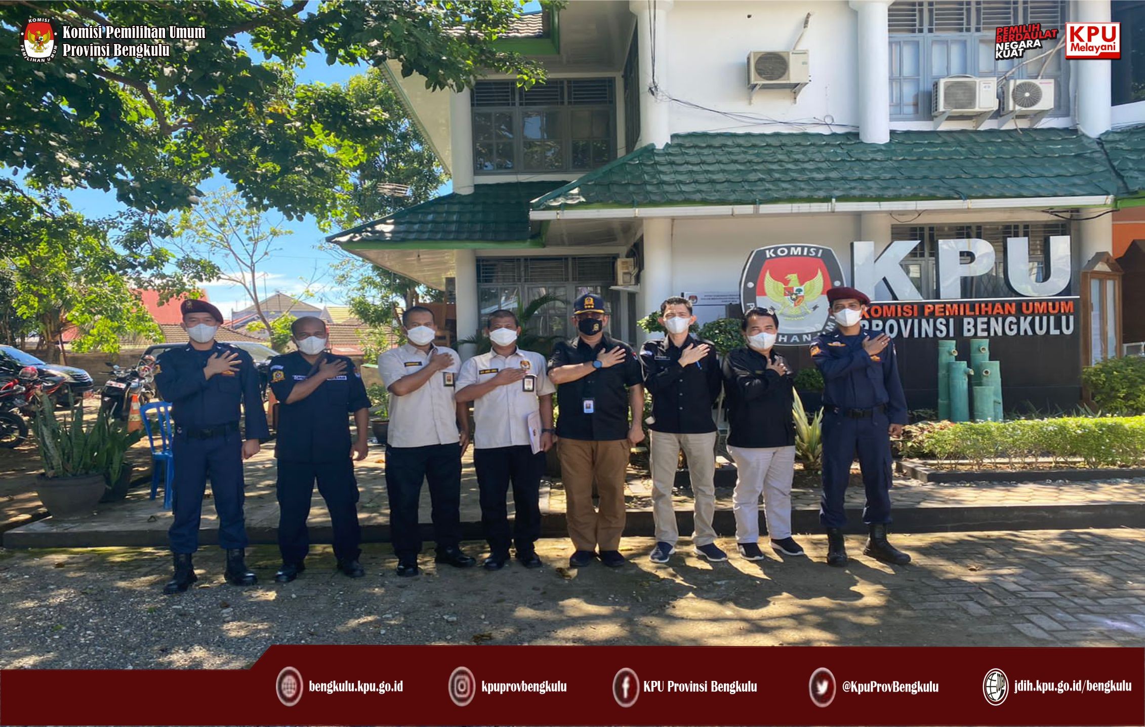 #TemanPemilih, KPU Provinsi Bengkulu menerima kedatangan Kabag Keamanan Sekretariat KPU RI Ashari pada Rabu (15/12). Kedatangan Kabag Keamanan ini yang disambut hangat Anggota KPU Provinsi Bengkulu Eko Sugianto, dan Siti Baroroh serta Sekretaris Kemas M Ajir, Kabag, Kasubbag dan staf ini dalam rangka melaksanakan Supervisi Keamanan dan Simulasi Pemadam Kebakaran menggunakan APAR. Simulasi pemadam kebakaran ini dilakukan dan dipraktekkan langsung oleh Kabag Keamanan Ashari di Halaman Kantor KPU Provinsi Bengkulu yang diikuti oleh Sekretaris, Kabag dan Kasubbag. Simulasi ini dimaksudkan guna meningkatkan pengetahuan mengenai penggunaan APAR dalam proses pemadam kebakaran di lingkungan sekretariat KPU Provinsi Bengkulu.