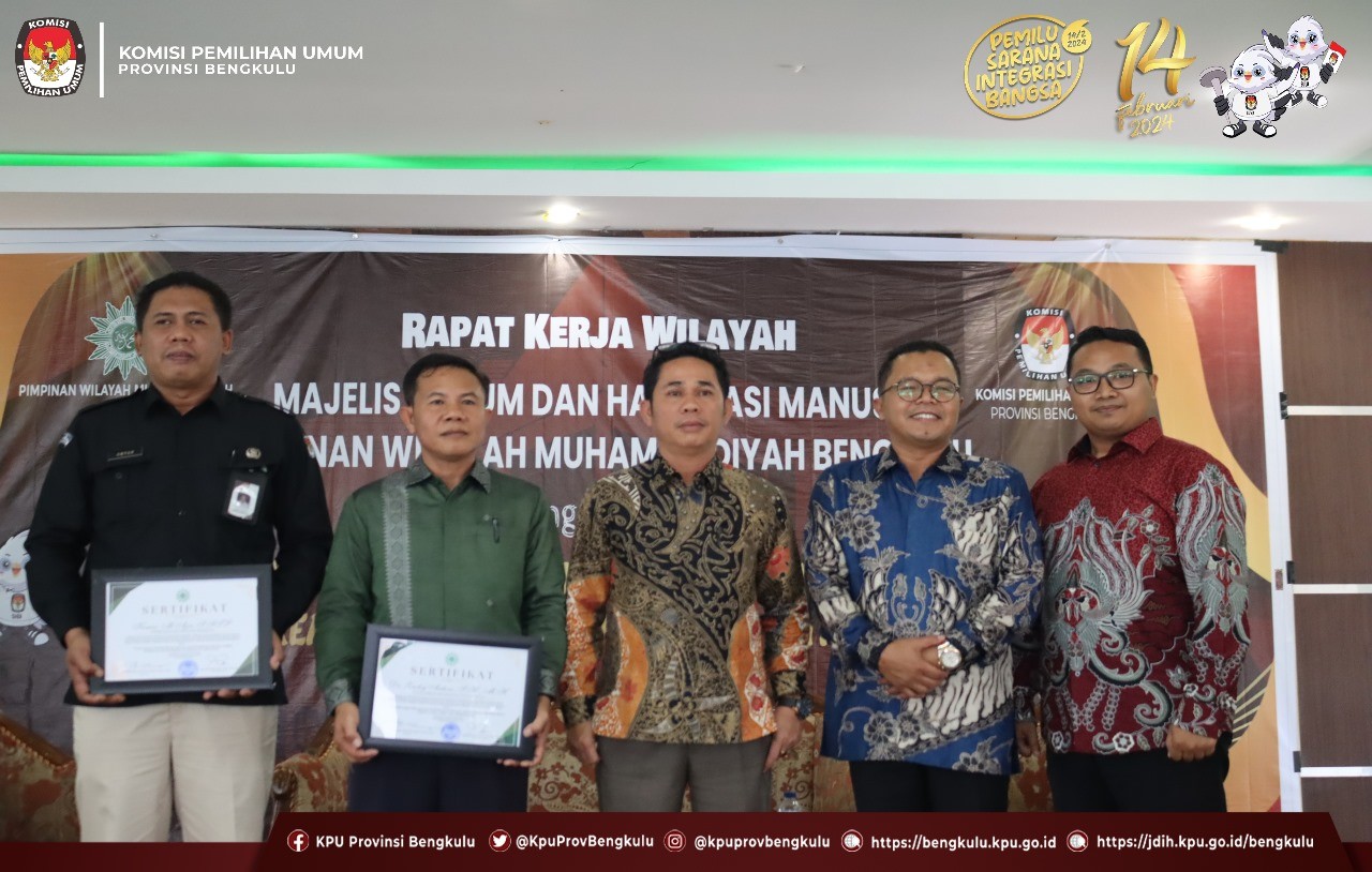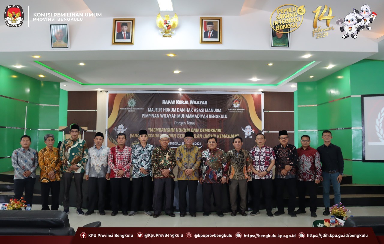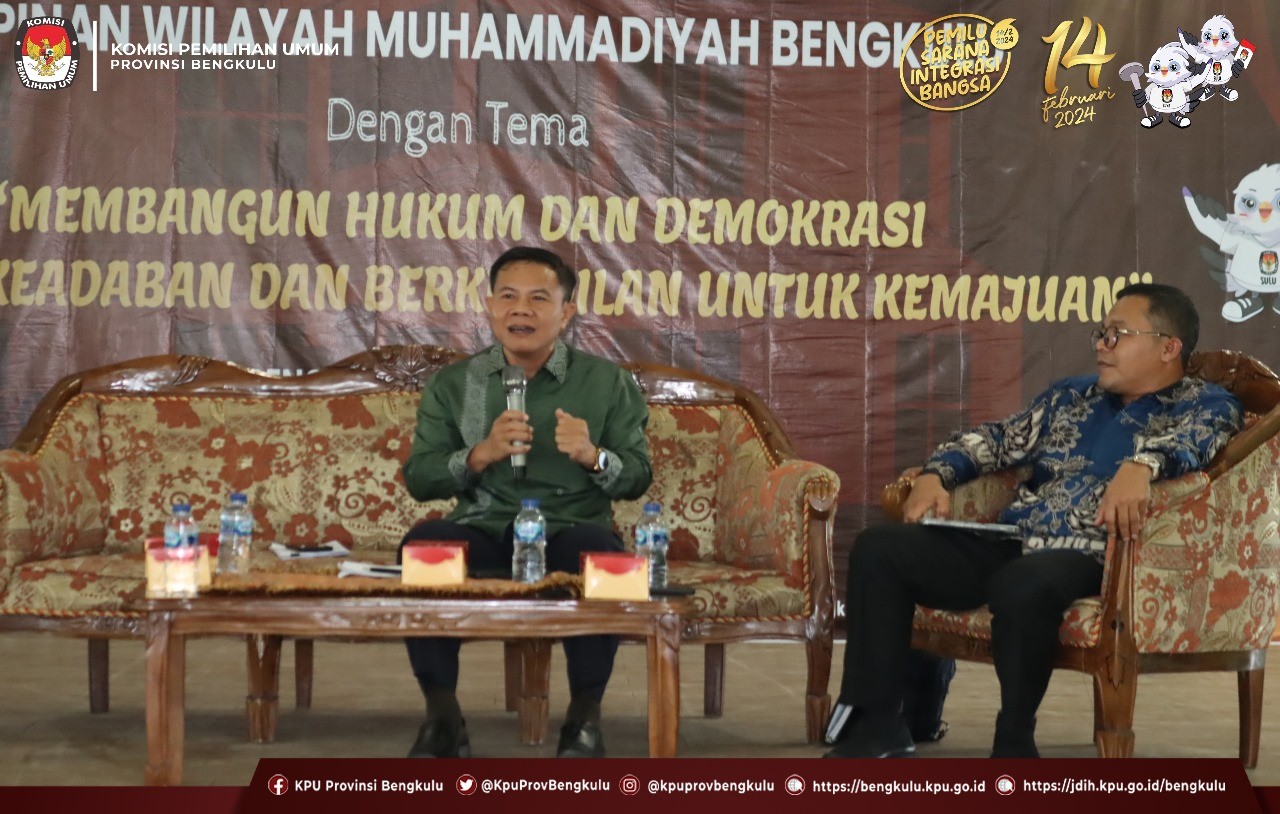 Bengkulu, bengkulu.kpu.go.id - KPU Provinsi Bengkulu menggelar Sosialisasi Bekerjasama dengan Majelis Hukum dan Hak Asasi Manusia (HAM) Pimpinan Muhammadiyah Bengkulu, Pada Minggu(21/1/2024) di gedung Kyai Haji Ahmad Dahlan Lantai 6 Universitas Muhammadiyah Bengkulu. Kegiatan ini di buka langsung oleh Dr. Fajrul Hamidi, M.Hum Selaku Ketua Pimpinan Wilayah Muhammadiyah (PWM) Provinsi Bengkulu. Turut hadir juga dari Bawaslu Provinsi bengkulu dan Pimpinan Wilayah Persatuan Wartawan Indonesia (PWI) Provinsi Bengkulu. Sosialisasi dilanjutkan dengan penyampaian materi dari KPU Provinsi Bengkulu yang diwakili oleh Kabag Teknis Penyelengara Pemilu Partisipasi Hubungan Masyarakat Hukum dan SDM Oktan Huzaeiry menjelaskan materi tentang Pelaksanaan Pemilu 2024 Demokratis dan Berintegritas. diskusi dilanjutkan dengan tanya jawab dan pemberian cinderamata kepada peserta sosialisasi.