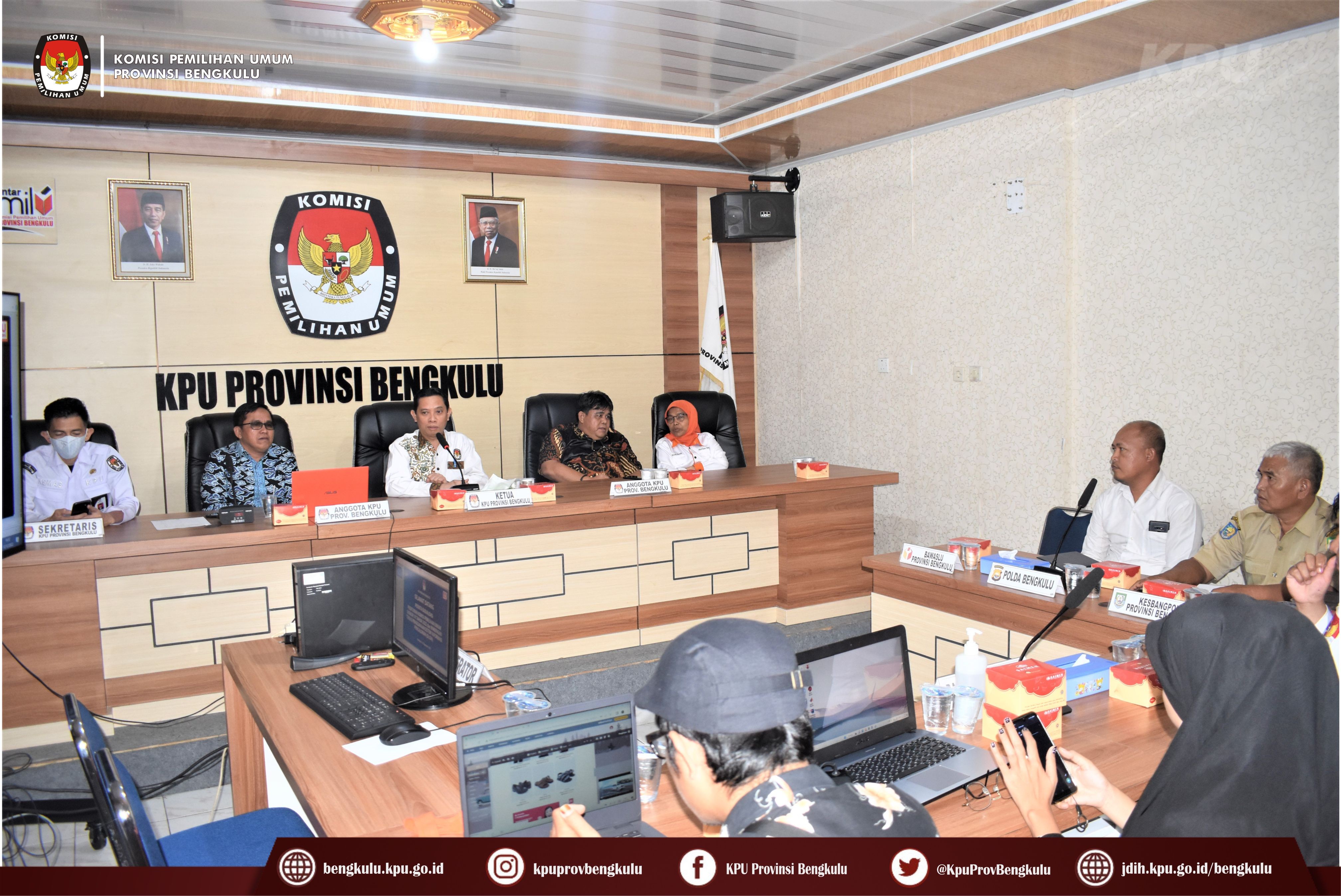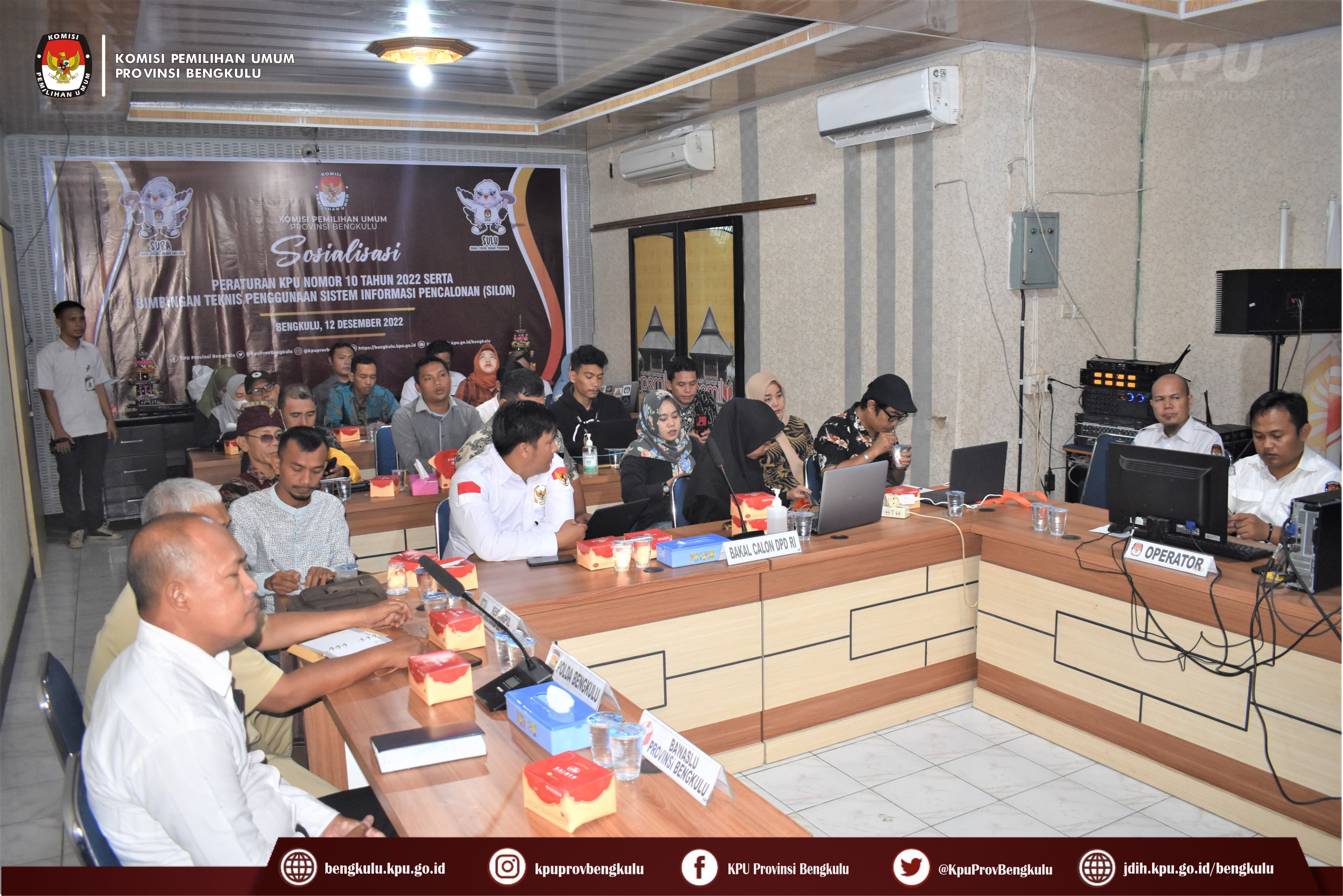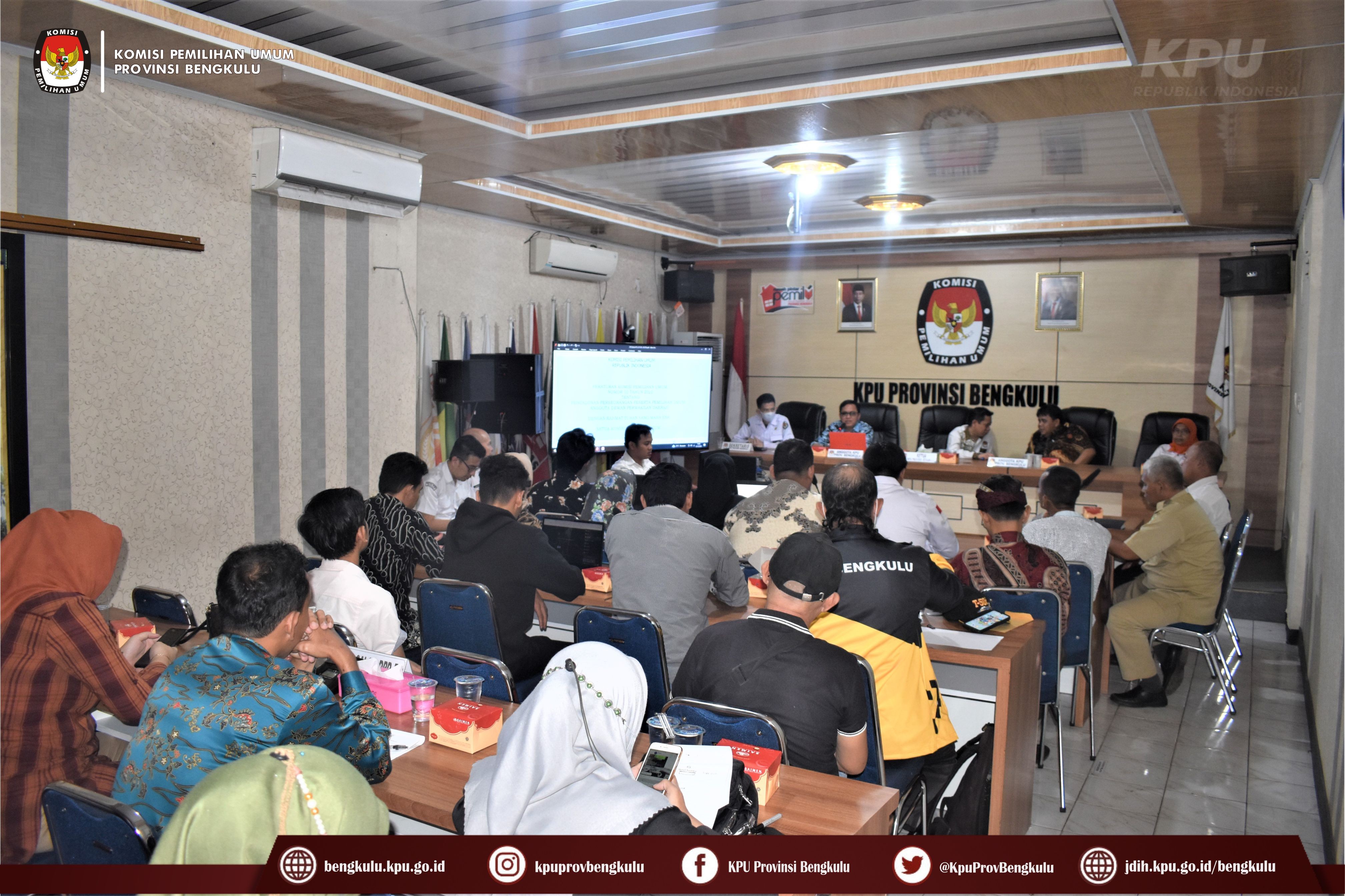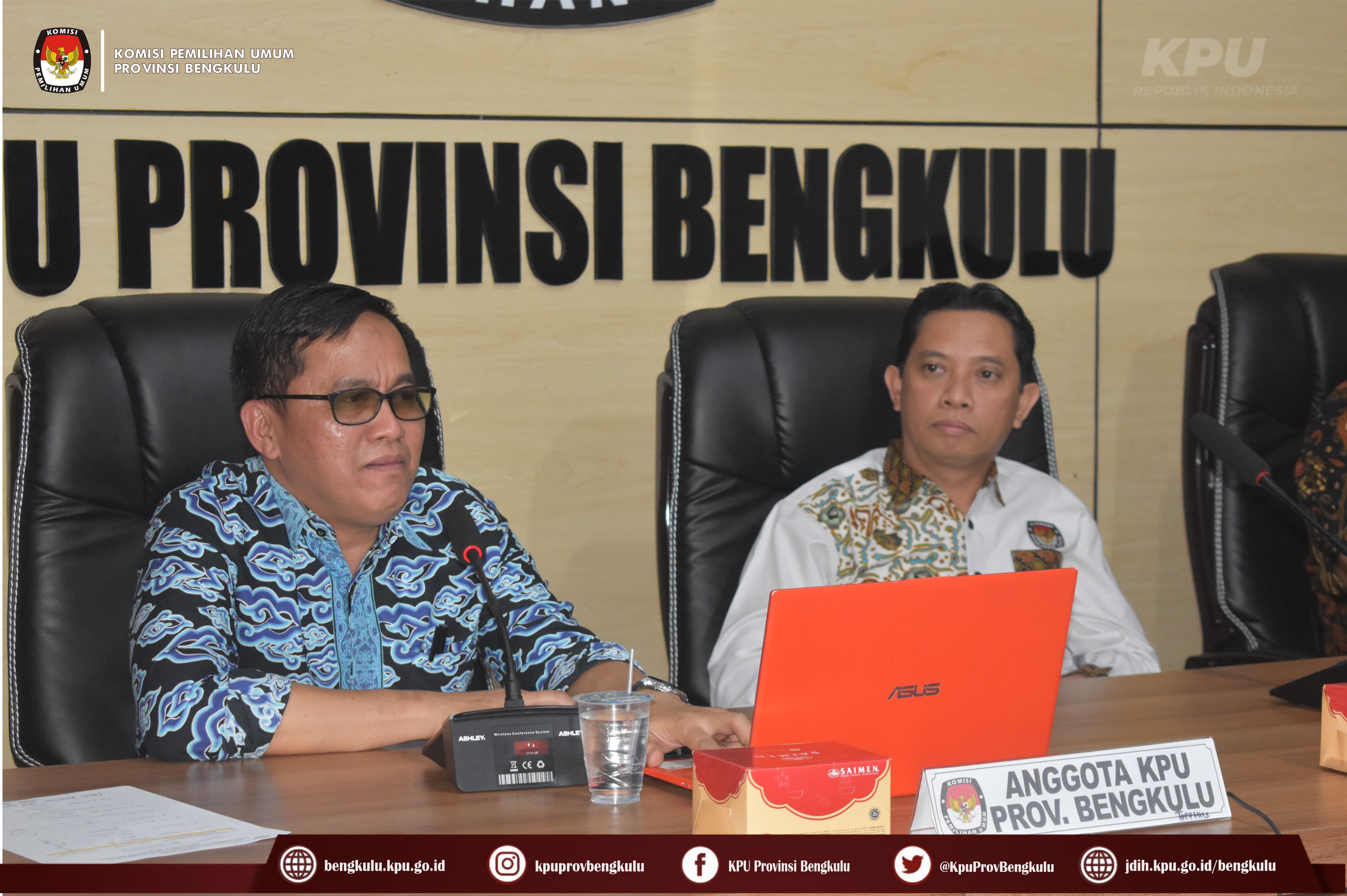 Ketua KPU Provinsi Bengkulu Irwan Saputra didampingi Anggota KPU Provinsi Bengkulu Siti Baroroh, Darlinsyah, dan Emex Verzoni, serta Sekretaris Kemas Mohammad Ajir membuka kegiatan Sosialisasi Peraturan Komisi Pemilihan Umum Nomor 10 Tahun 2022 di Ruang Audio Visual Rumah Pintar Pemilu KPU Provinsi Bengkulu, Senin (12/12).