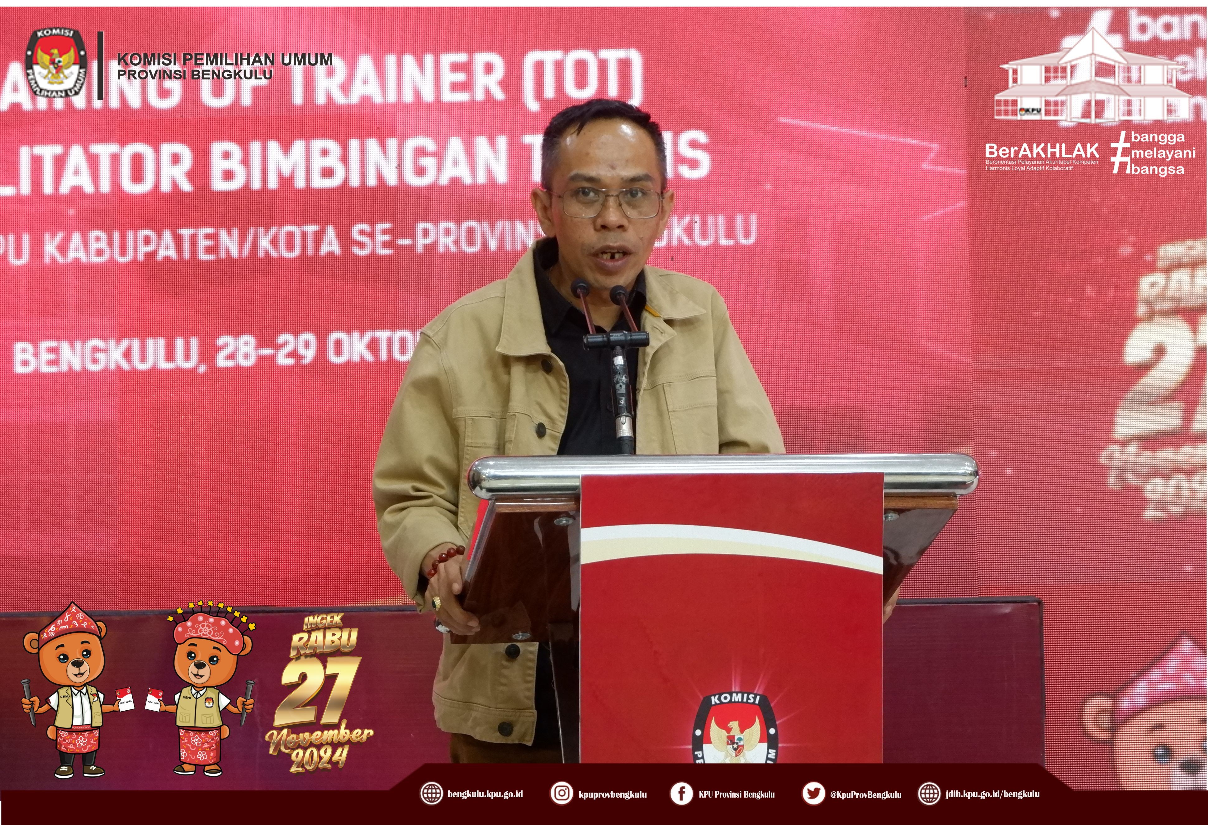 Training of Trainer Fasilitator Bimbingan Teknis Kepada KPU Kabupaten/Kota se-Provinsi Bengkulu