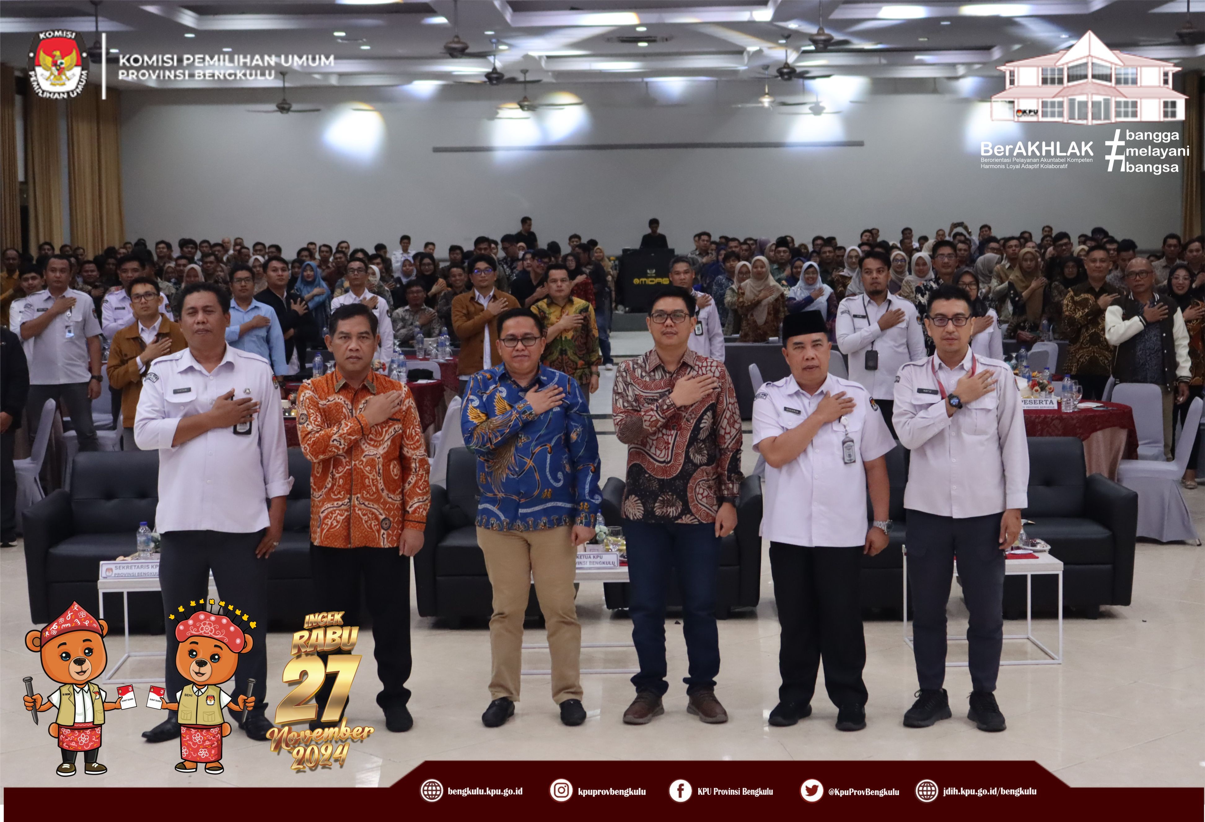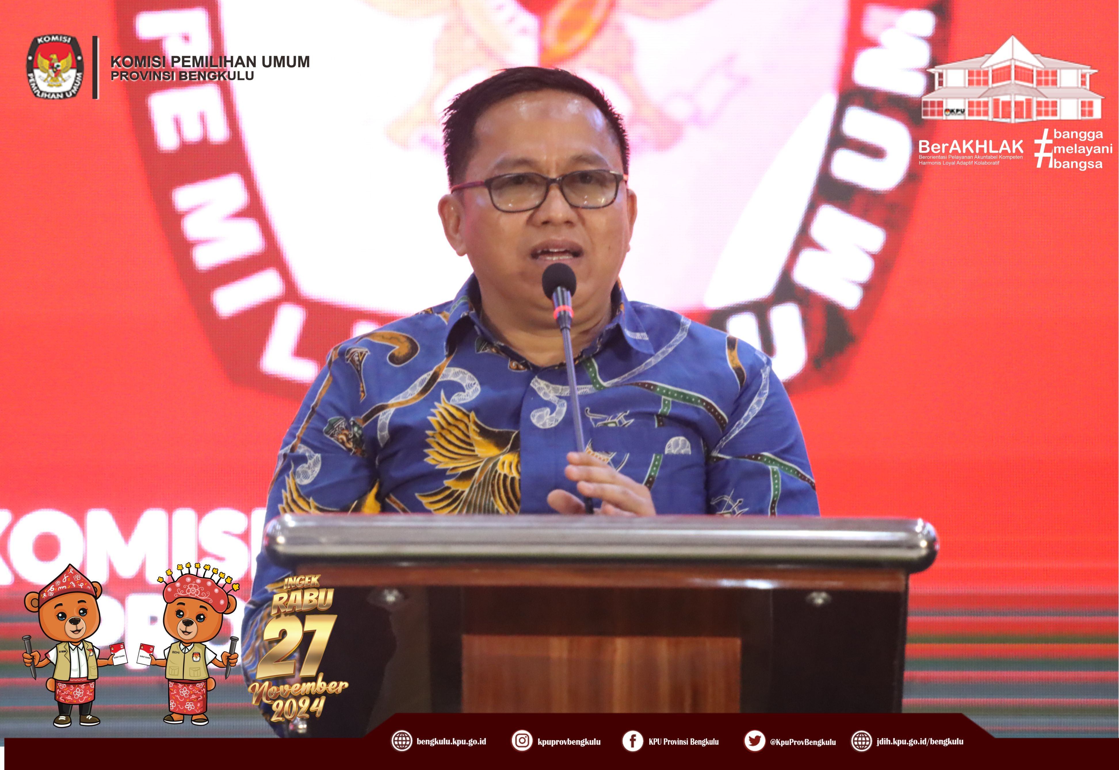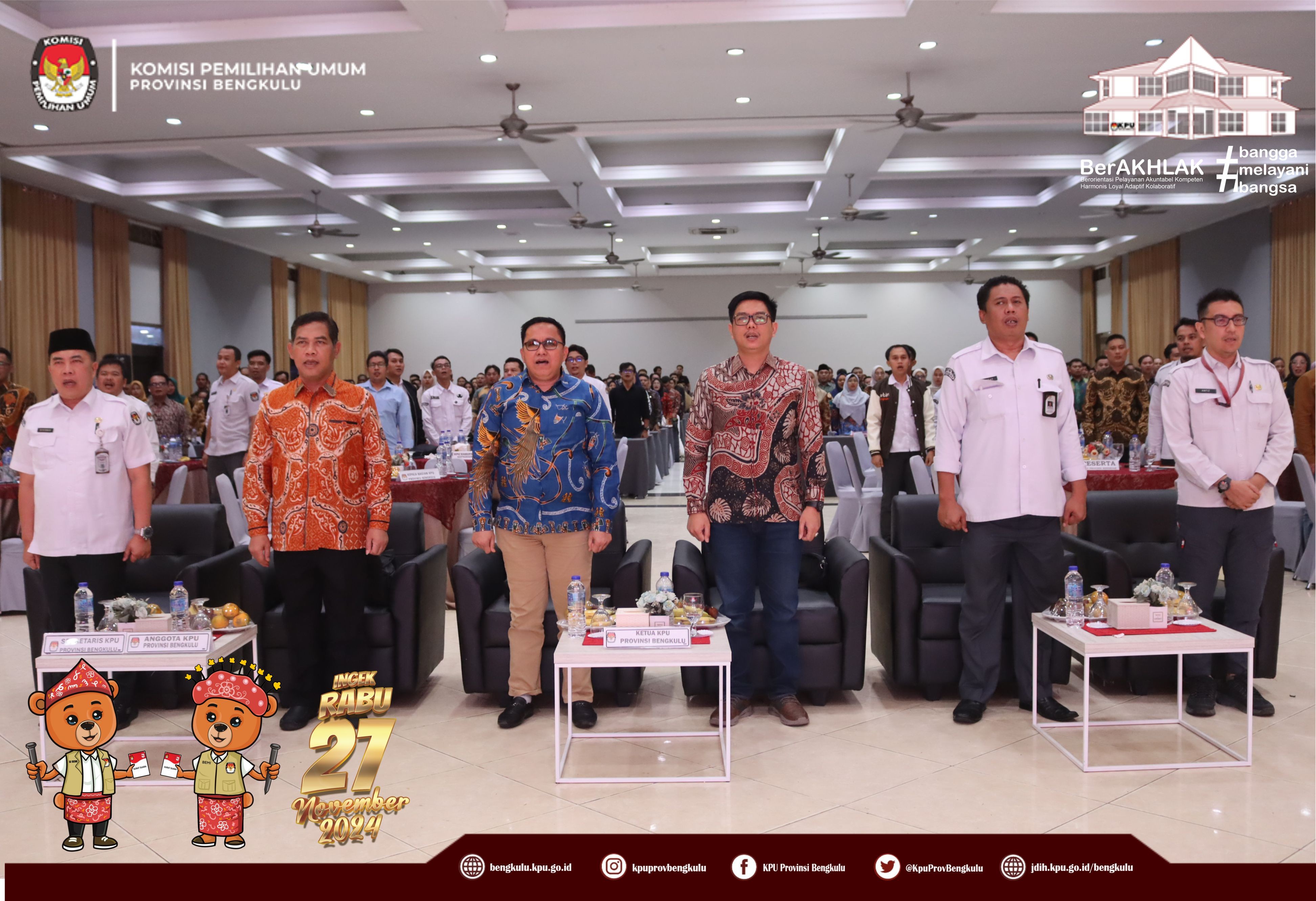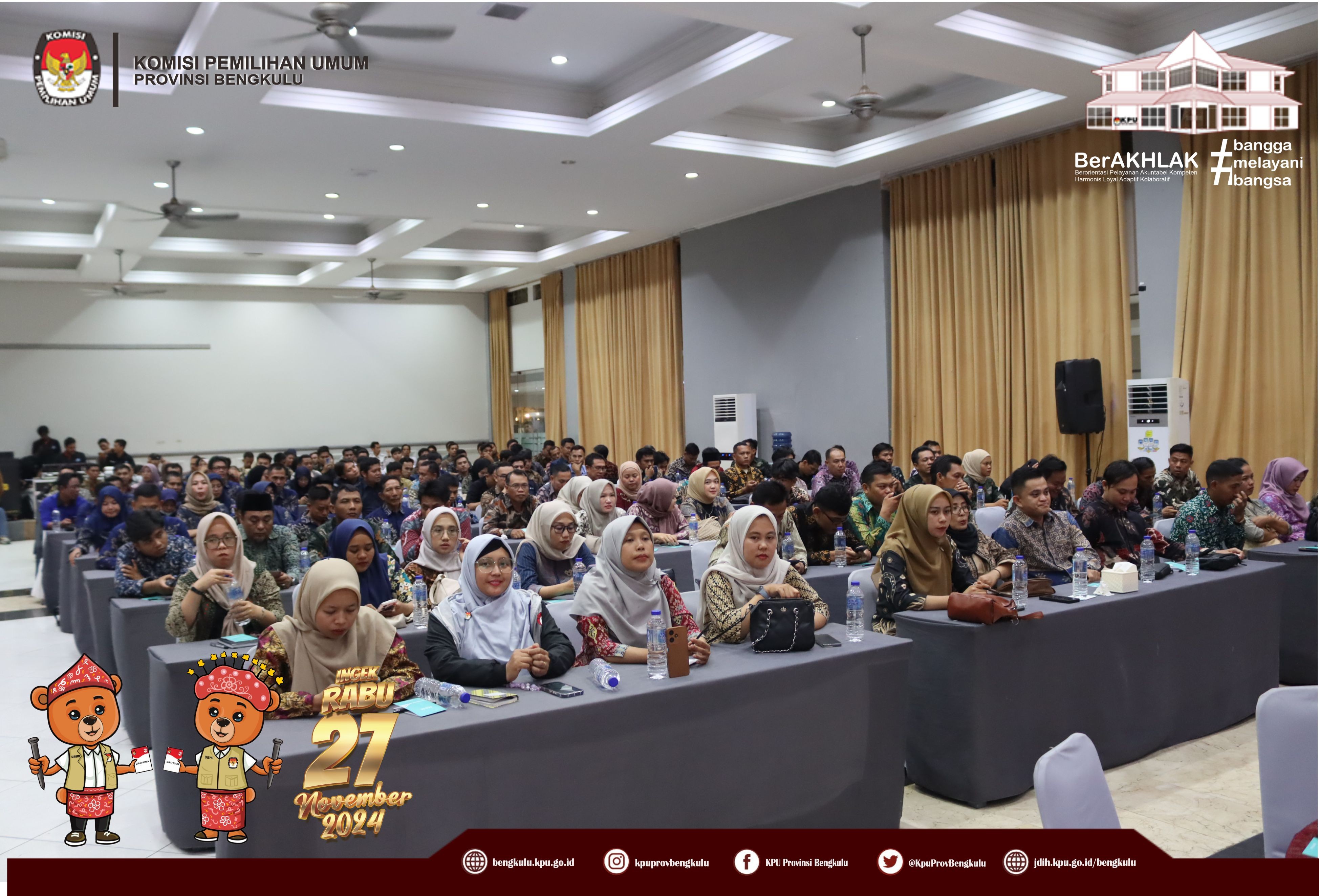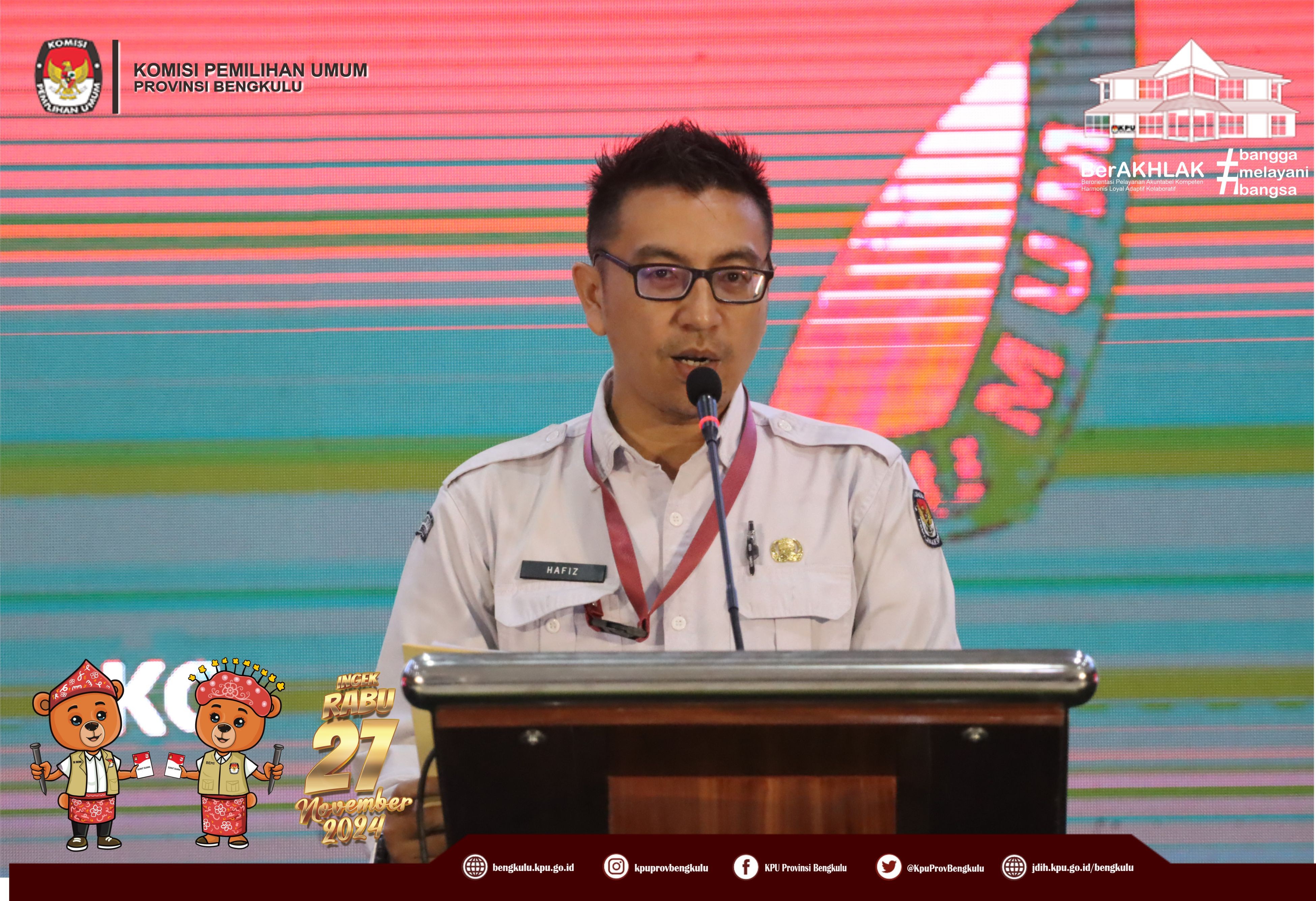 Bengkulu, bengkulu.kpu.go.id - Plh. Ketua KPU Provinsi Bengkulu Bapak Emex Verzoni, Anggota KPU Provinsi Bengkulu Bapak Alpin Samsen dan Bapak Dodi Hendra Supiarso, Plh Sekretaris KPU Provinsi Bengkulu Bapak Sudirman, Kabag TPHS Bapak Oktan Huzaeiry dan Plh. Kabag Perencanaan Data dan Informasi Bapak Hafiz Umar membuka kegiatan Uji Beban Penggunaan Aplikasi Sistem Informasi Rekapitulasi (Sirekap) Pemilihan Gubernur dan Wakil Gubernur, Bupati dan Wakil Bupati serta Walikota dan Wakil Walikota Tahun 2024 Provinsi Bengkulu, Senin (21/10/2024) di Grage Hotel Bengkulu. Hadir Anggota KPU Divisi Perencanaan Data dan Informasi, Anggota KPU Divisi Teknis Penyelenggaraan, Kasubbag TPHM, Admin/Operator Sirekap, Anggota PPK Divisi Perencanaan Data dan Informasi, Anggota PPK Divisi Teknis Penyelenggaraan Kabupaten/Kota se-Provinsi Bengkulu. Dalam arahannya Bapak Emex menyampaikan bahwa kegiatan ini dalam rangka memastikan kesiapan dan pemahaman yang sama dalam uji beban aplikasi Sirekap bagi KPU bersama jajaran adhoc pada pemilihan serentak Tahun 2024 di Provinsi Bengkulu. Bapak Emex berharap SDM jajaran adhoc mampu dan siap mengoperasikan aplikasi Sirekap secara baik dan Provinsi Bengkulu menjadi yang tercepat dan terbaik dalam penggunaan aplikasi sirekap secara nasional pada Rabu 27 November 2024 mendatang.