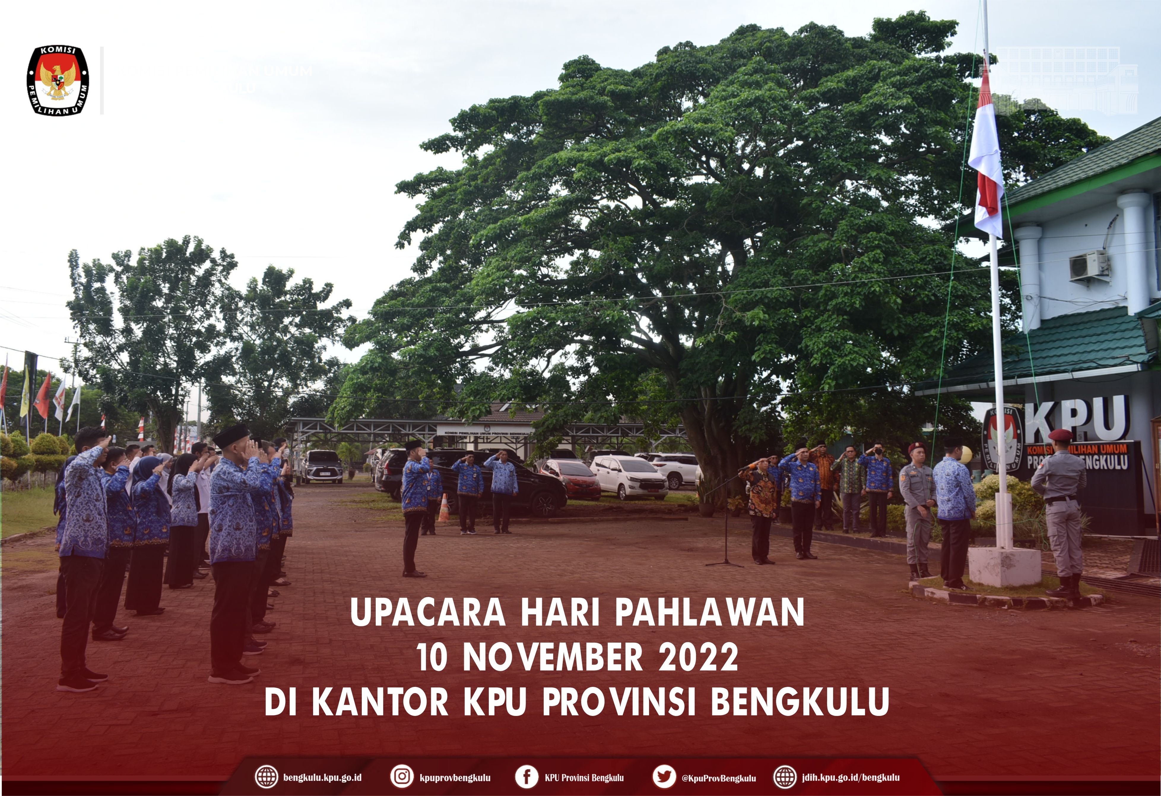 Bengkulu-bengkulu.kpu.go.id, Segenap Jajaran KPU Provinsi Bengkulu mengikuti Upacara Hari Pahlawan bertempat di halaman Kantor KPU Provinsi Bengkulu. Upacara diikuti Ketua, Anggota, Sekretaris, Kabag, Kasubbag dan staf di Lingkungan KPU Provinsi Bengkulu. bertindak sebagai Pembina Upacara Ketua KPU Provinsi Bengkulu Irwan Saputra.