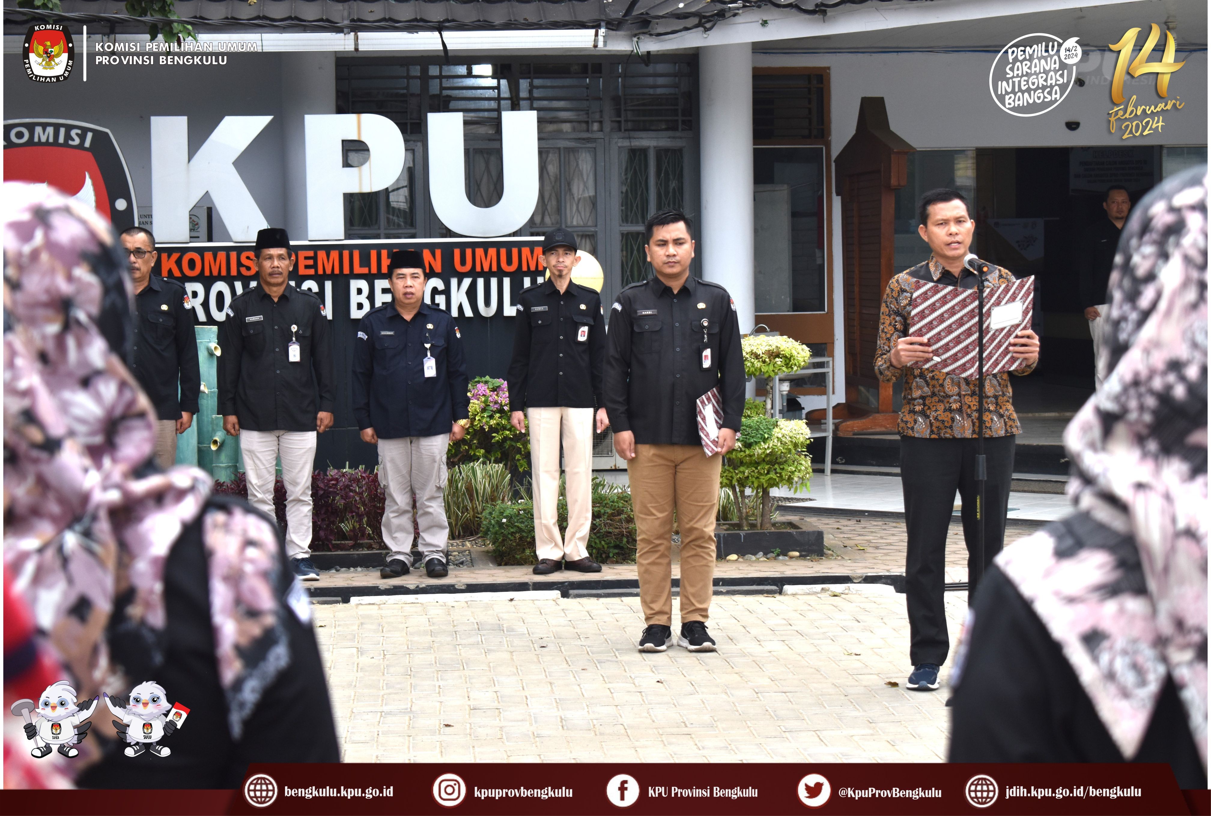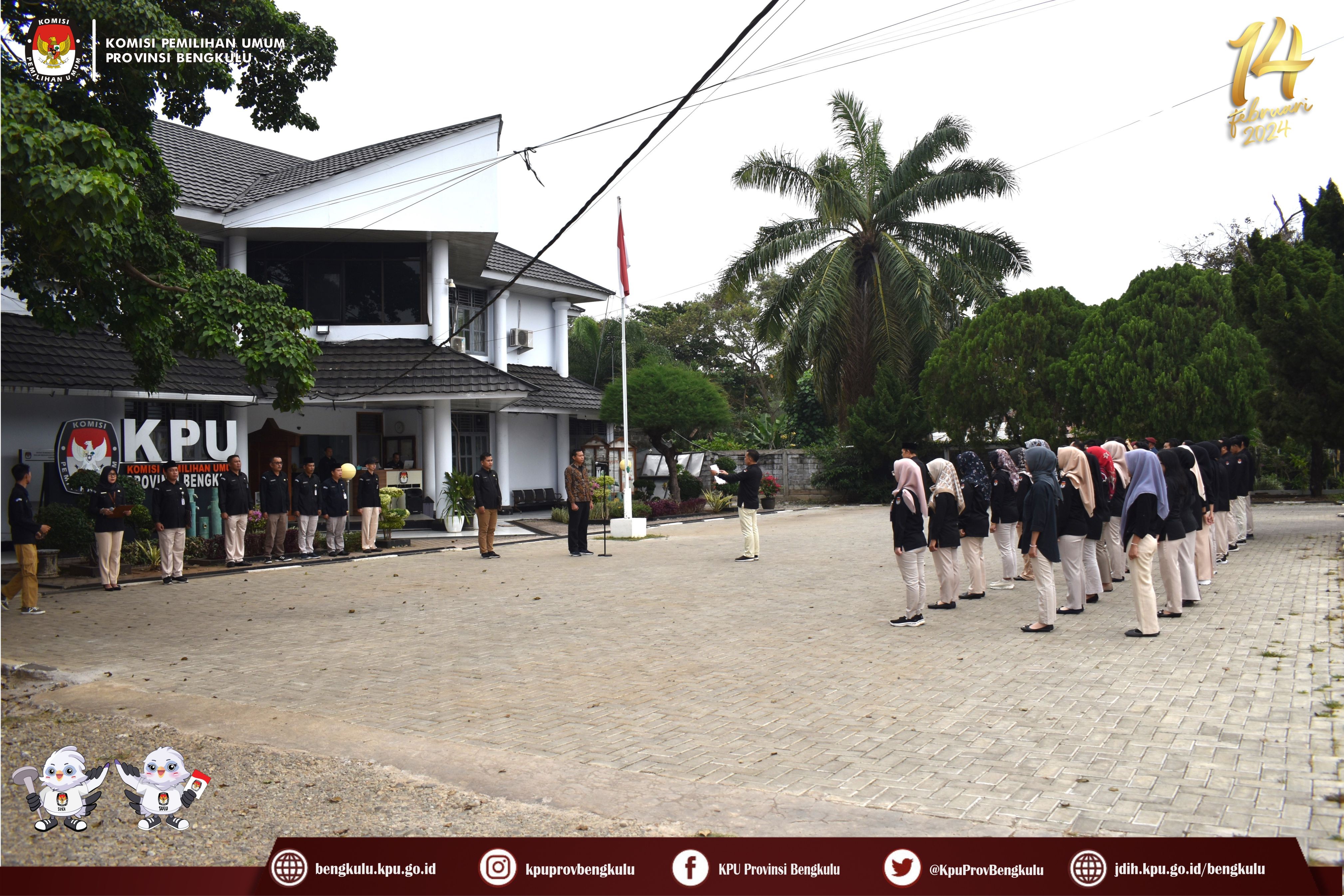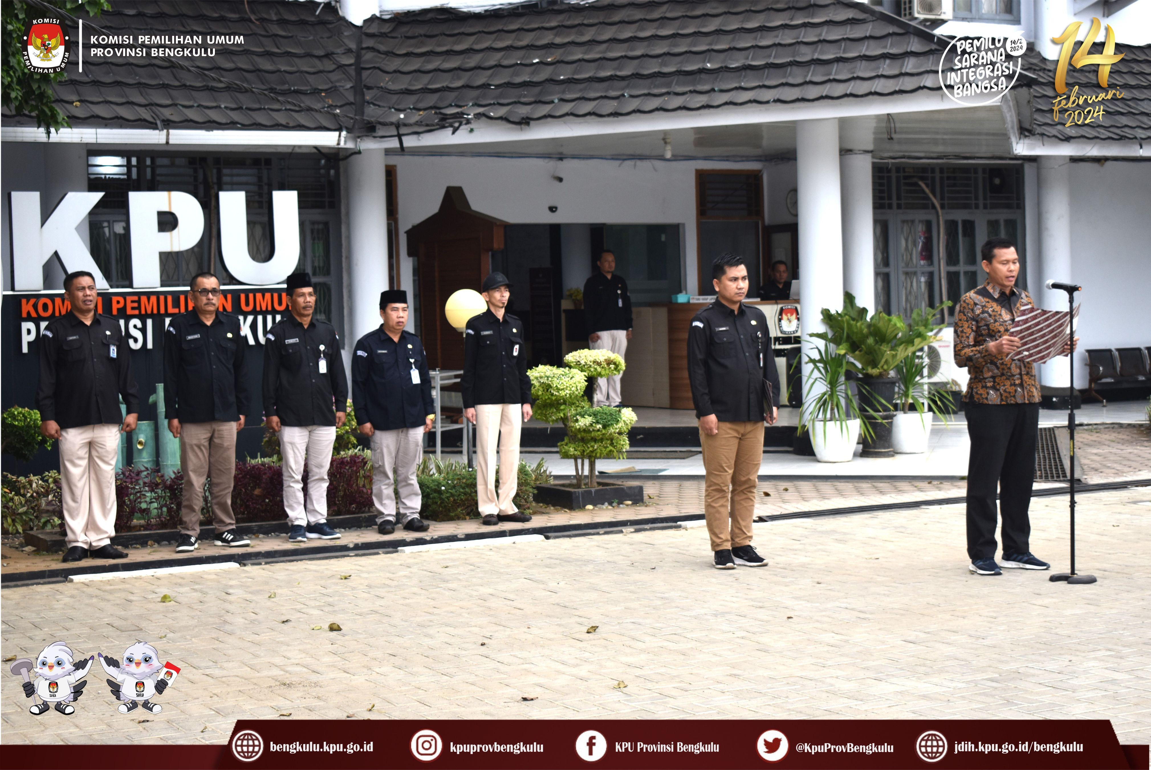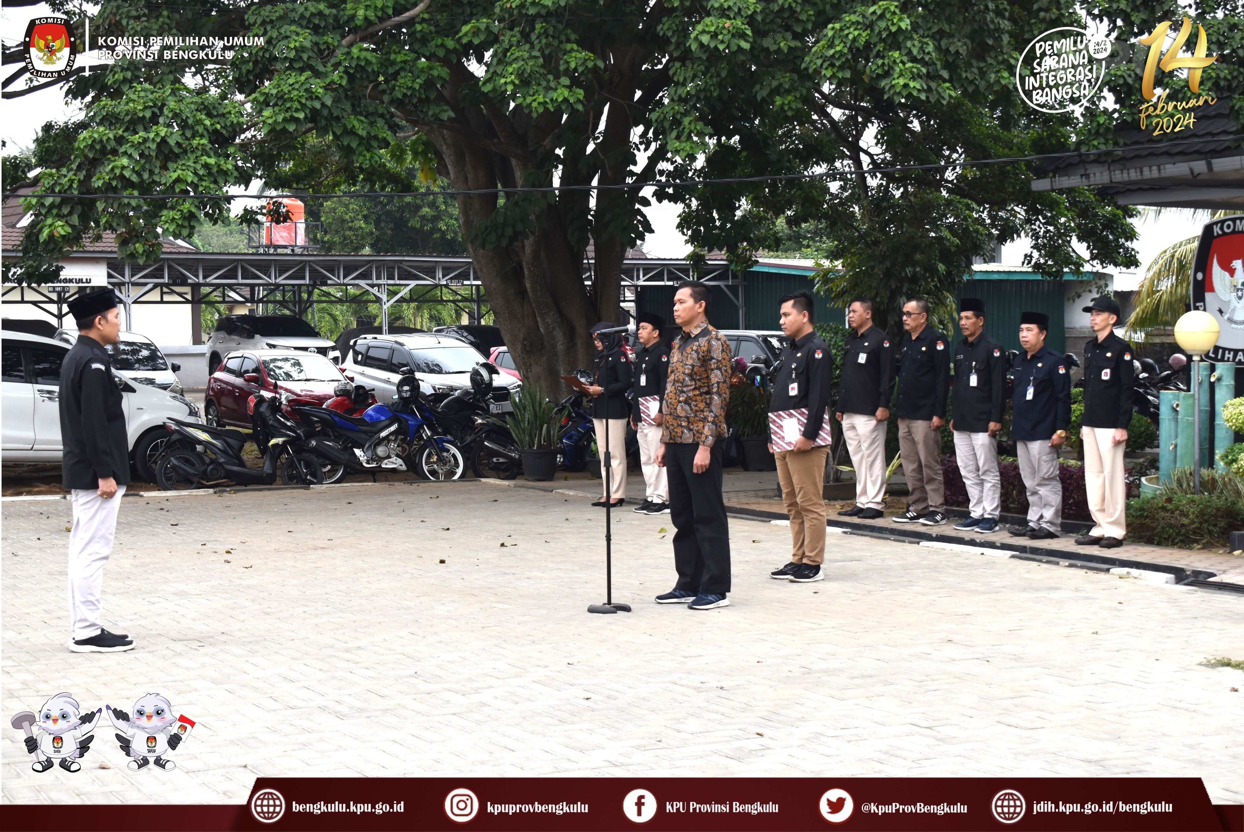 Bengkulu, bengkulu.kpu.go.id - Jajaran KPU Provinsi Bengkulu melaksanakan Upacara Peringatan Hari Kesaktian Pancasila. Minggu (1/10/2023) di Halaman Kantor KPU Provinsi Bengkulu. Anggota KPU Provinsi Bengkulu Sarjan Efendi bertindak sebagai Inspektur Upacara. Upacara diikuti Sekretaris, Kabag, Fungsional Penata Kelola Pemilu Ahli Madya, Kasubbag dan Staf di Lingkungan Sekretariat KPU Provinsi Bengkulu. Pelaksanaan upacara berjalan khidmat dan lancar.