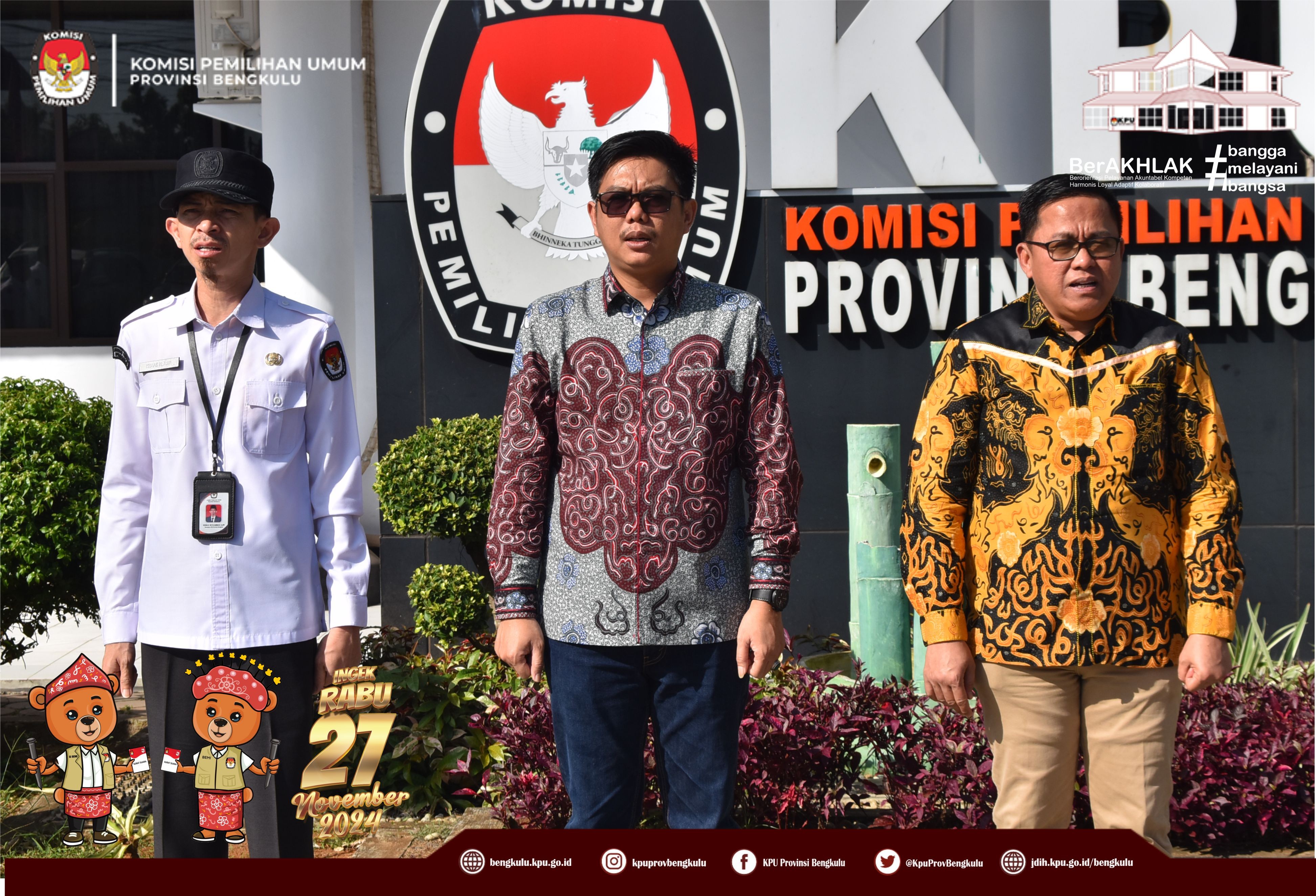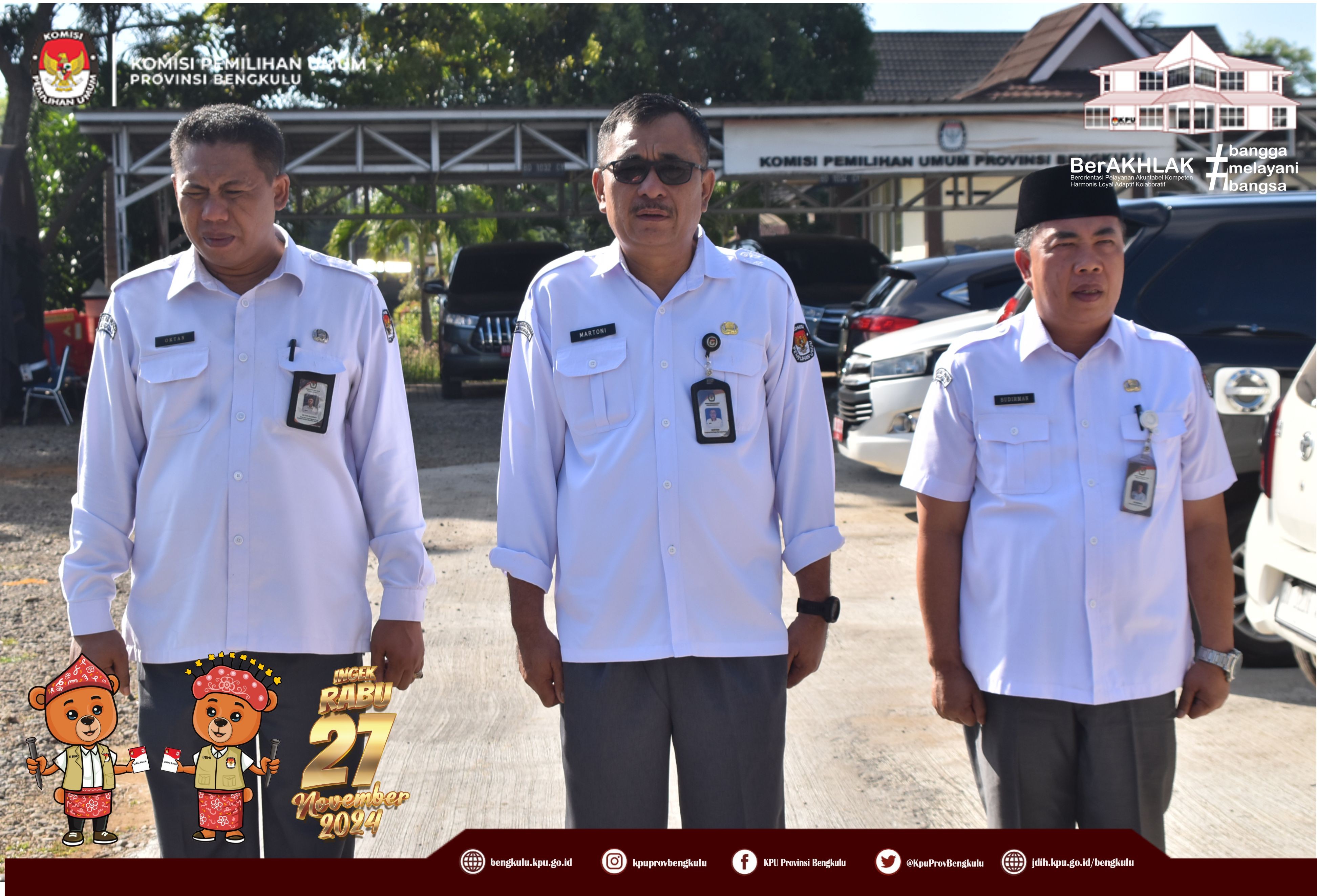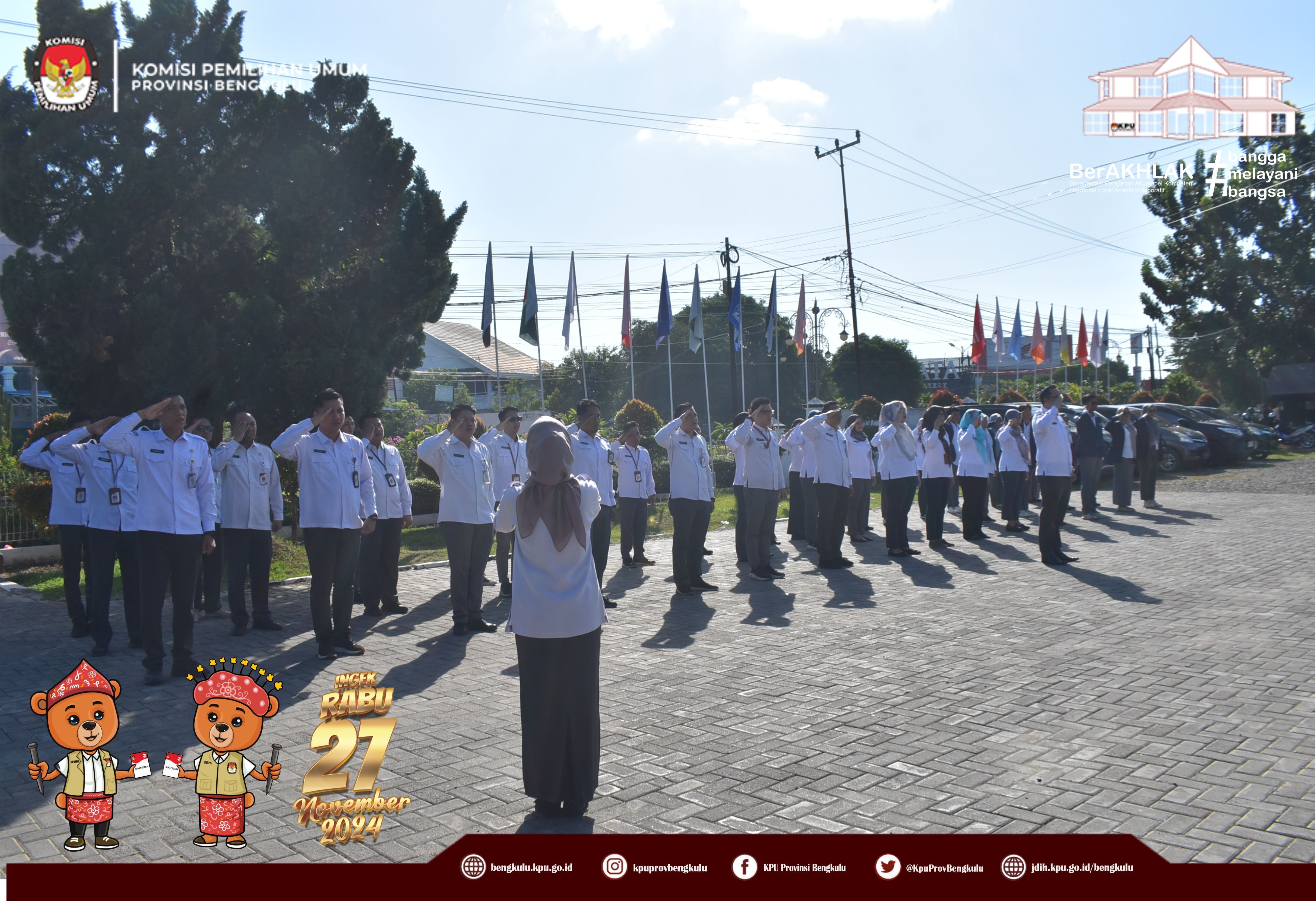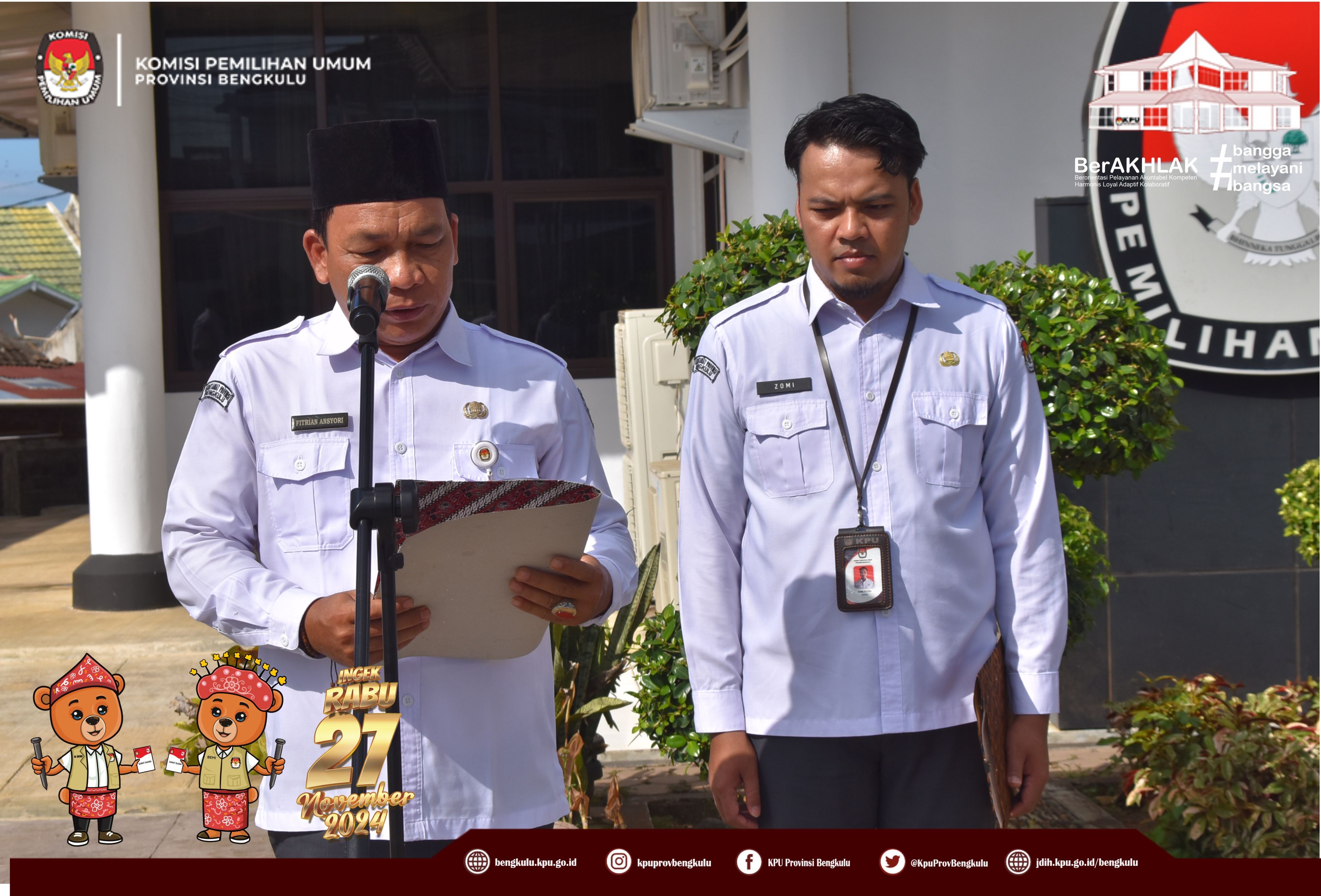Bengkulu, bengkulu.kpu.go.id - KPU Provinsi Bengkulu melaksanakan Upacara Peringatan Hari Sumpah Pemuda ke-96 Tahun 2024, Senin (28/10/2024) di Halaman Kantor KPU Provinsi Bengkulu. Bertindak sebagai Pembina Upacara Katua KPU Provinsi Bengkulu Bapak Rusman Sudarsono. Upacara diiikuti Anggota KPU Provinsi Bengkulu Bapak Alpin Samsen dan Bapak Emex Verzoni serta Sekretaris KPU Provinsi Bengkulu Bapak Kemas Mohammad Ajir, Kabag, Pejabat Penata Kelola Pemilu Ahli Madya, Kasubbag dan Staf di Lingkungan Sekretariat KPU Provinsi Bengkulu. Upacara berjalan khidmat dan lancar.