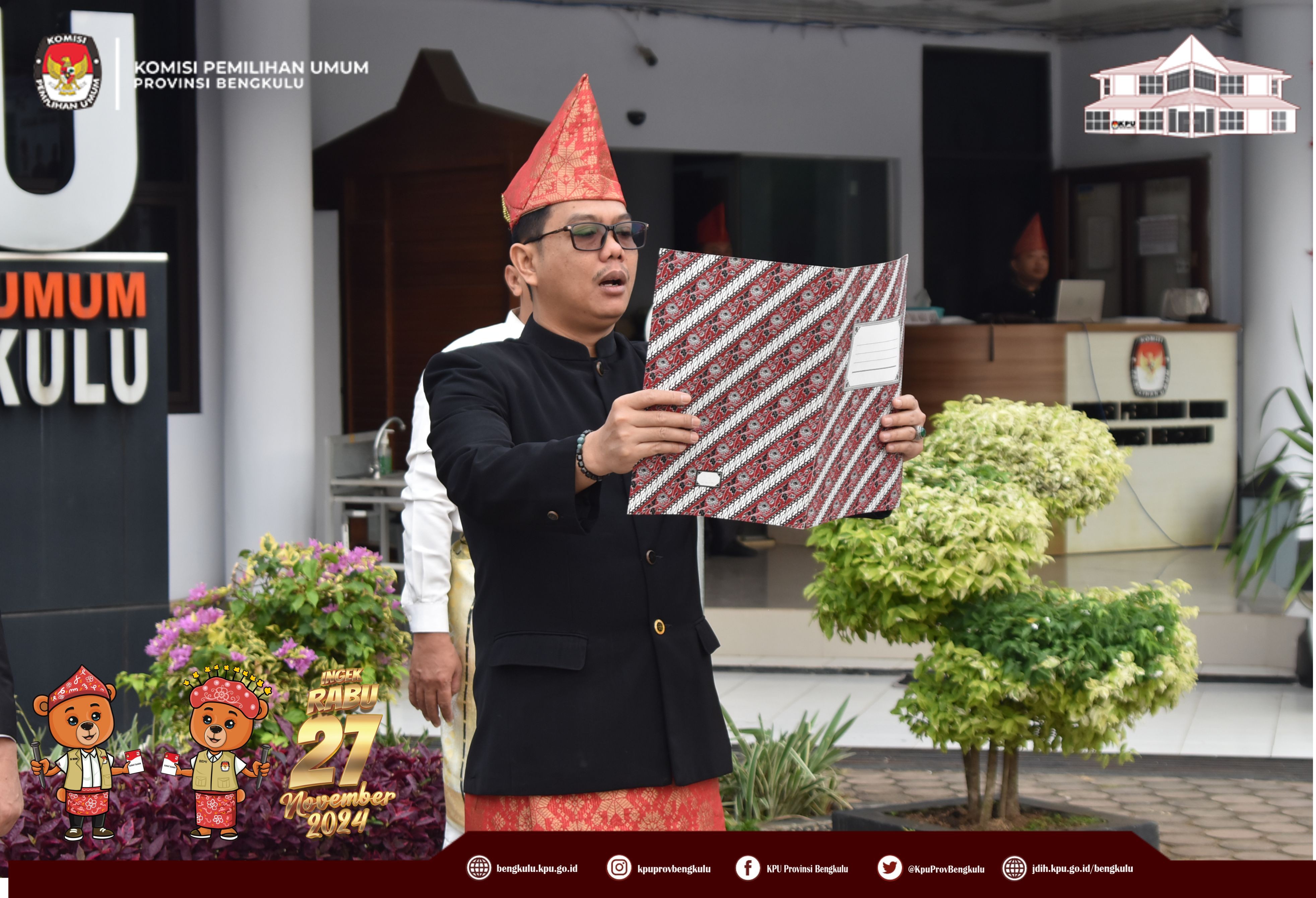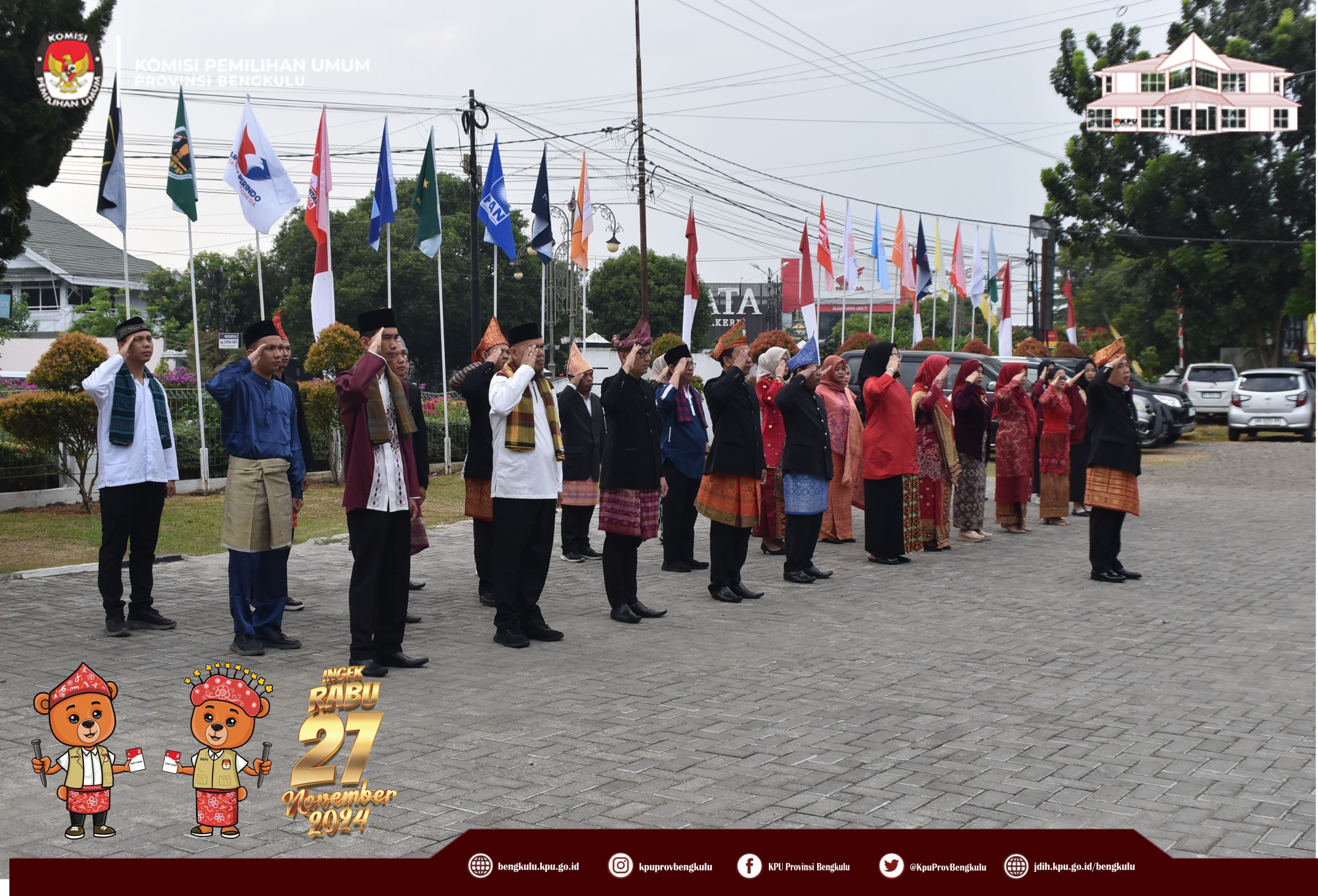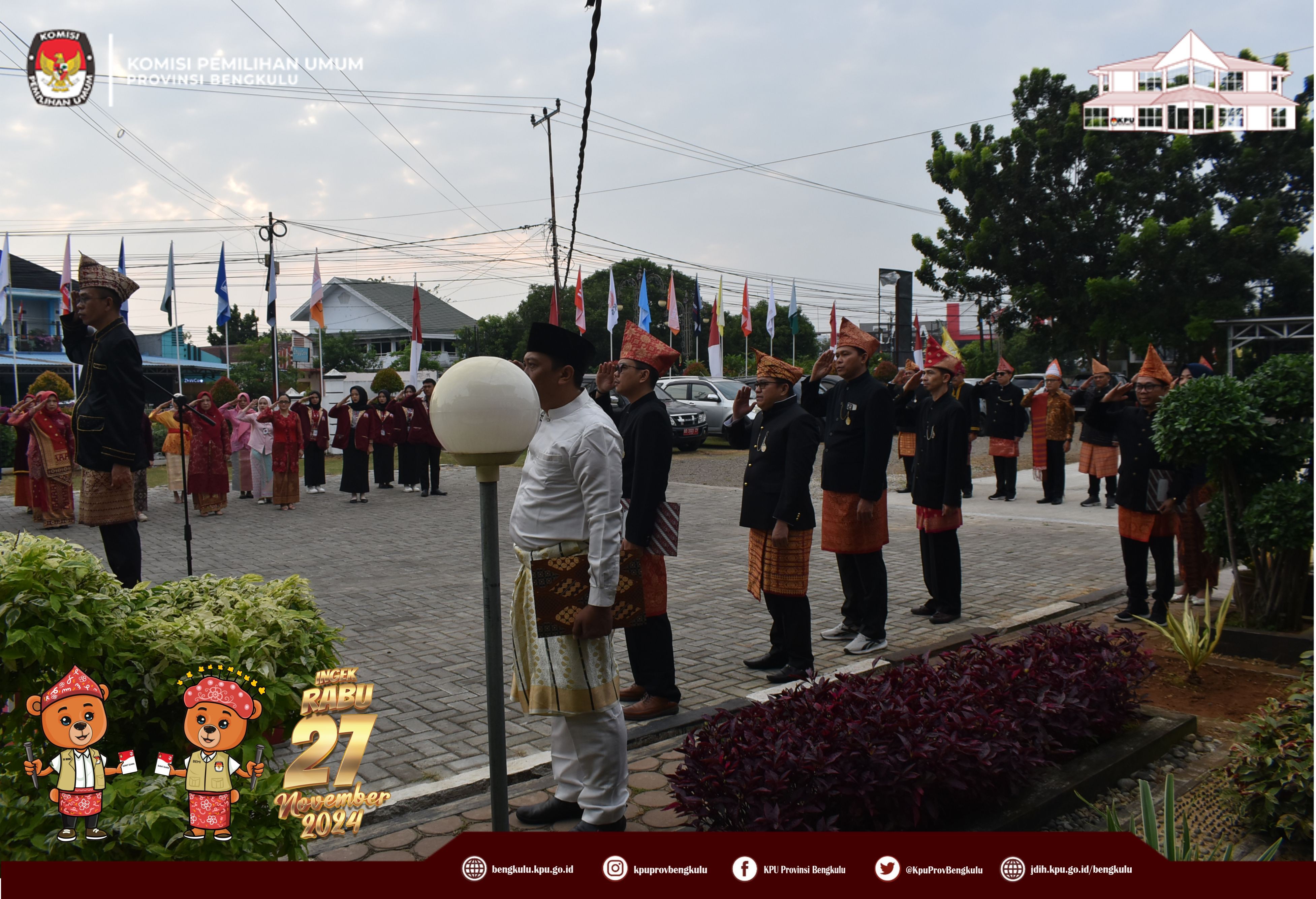 Bengkulu, bengkulu.kpu.go.id - KPU Provinsi Bengkulu melaksanakan Upacara Peringatan Hari Ulang Tahun ke - 79 Kemerdekaan Republik Indonesia, Sabtu (17/8/2024) di Halaman Kantor KPU Provinsi Bengkulu. Ketua KPU Provinsi Bengkulu Rusman Sudarsono bertindak sebagai Inspektur Upacara, kemudian diikuti Anggota KPU Provinsi Bengkulu Alpin Samsen, Dodi Hendra Supiarso, Emex Verzoni dan Sarjan Efendi, Ketua dan Sekretaris KPU Kabupaten, Kabag, Pejabat Penata Kelola Pemilu Ahli Madya, Kasubbag dan Staf di lingkungan Sekretariat KPU Provinsi Bengkulu. Upacara berjalan khidmat dan lancar.