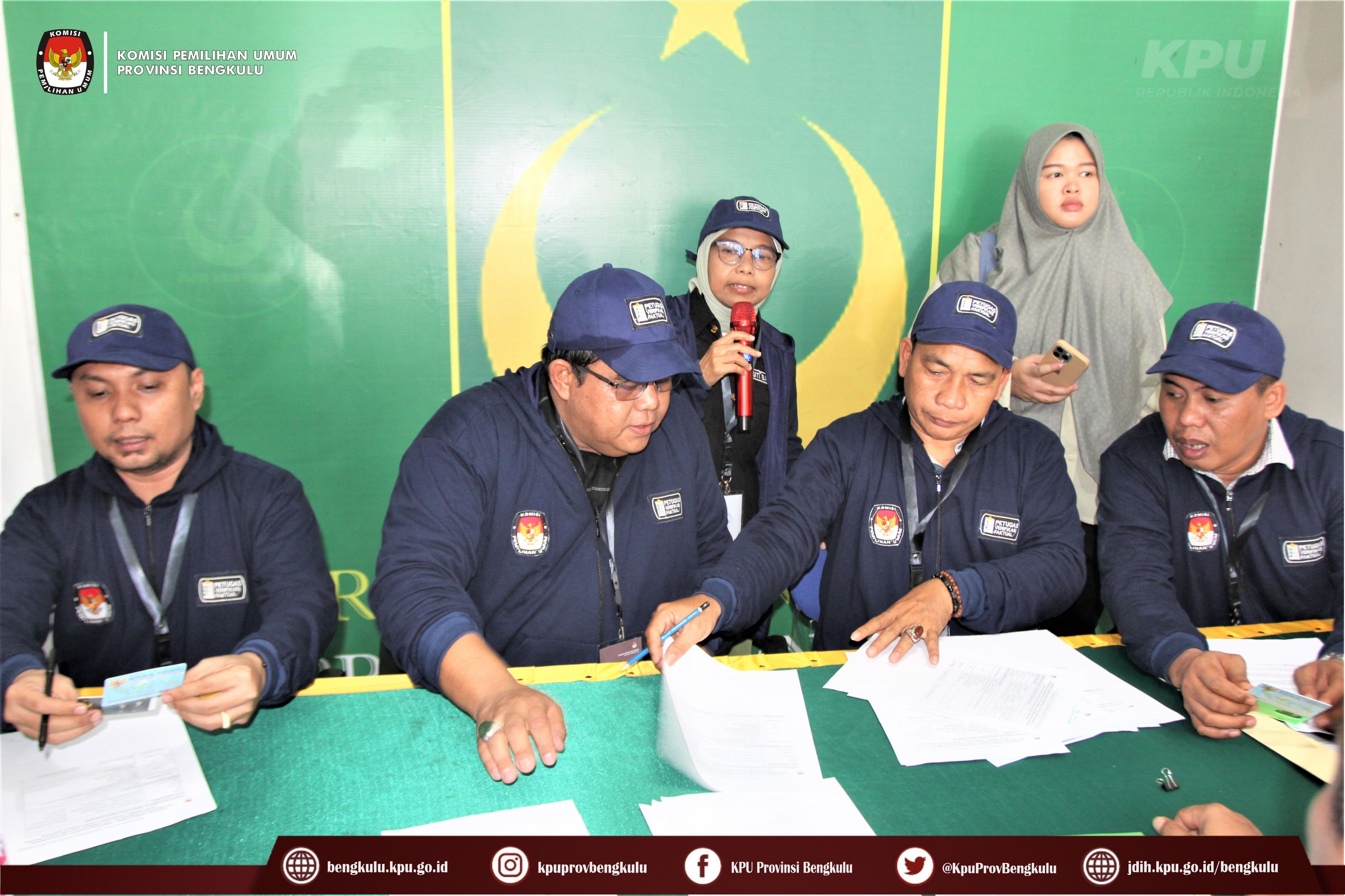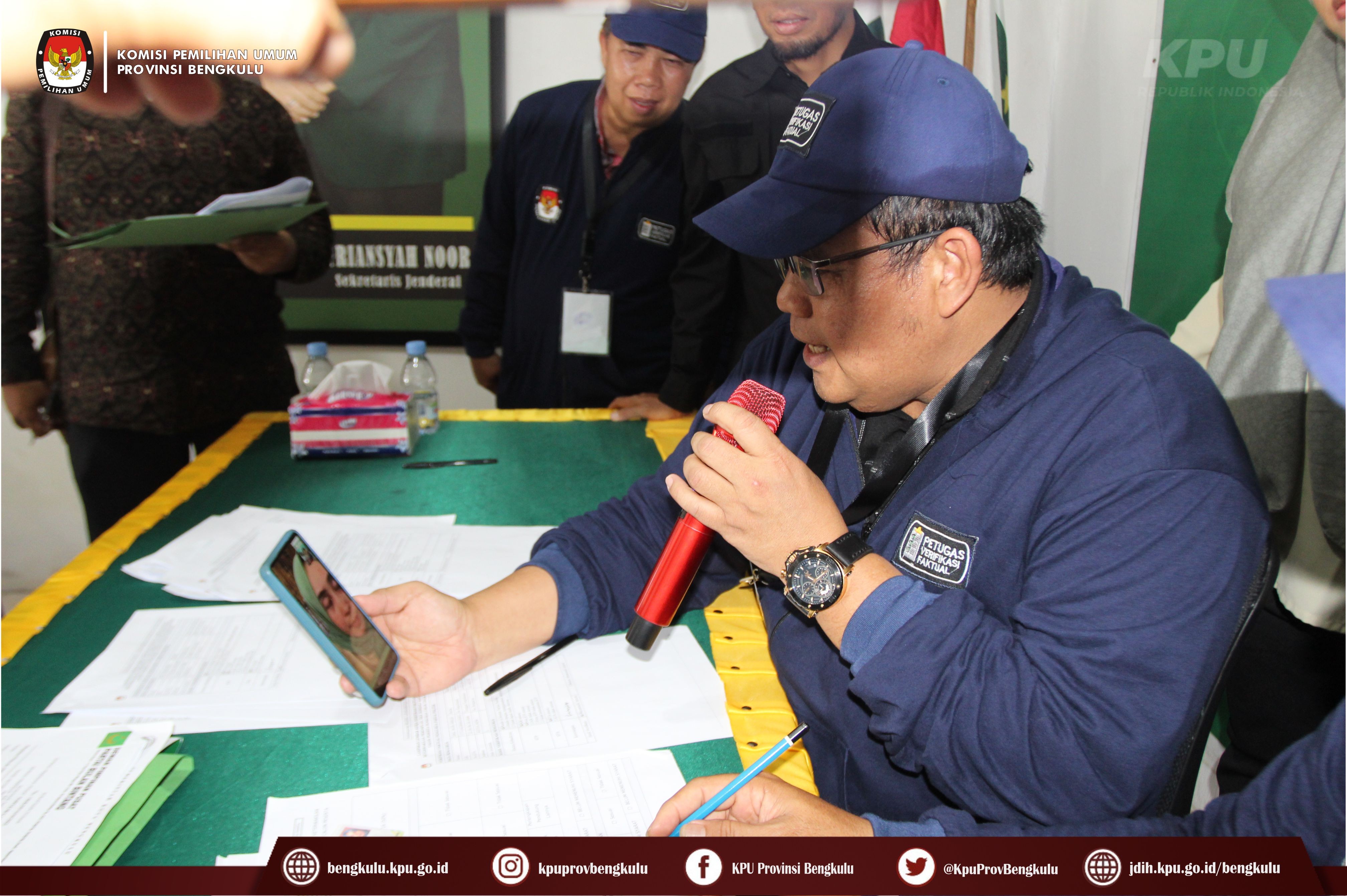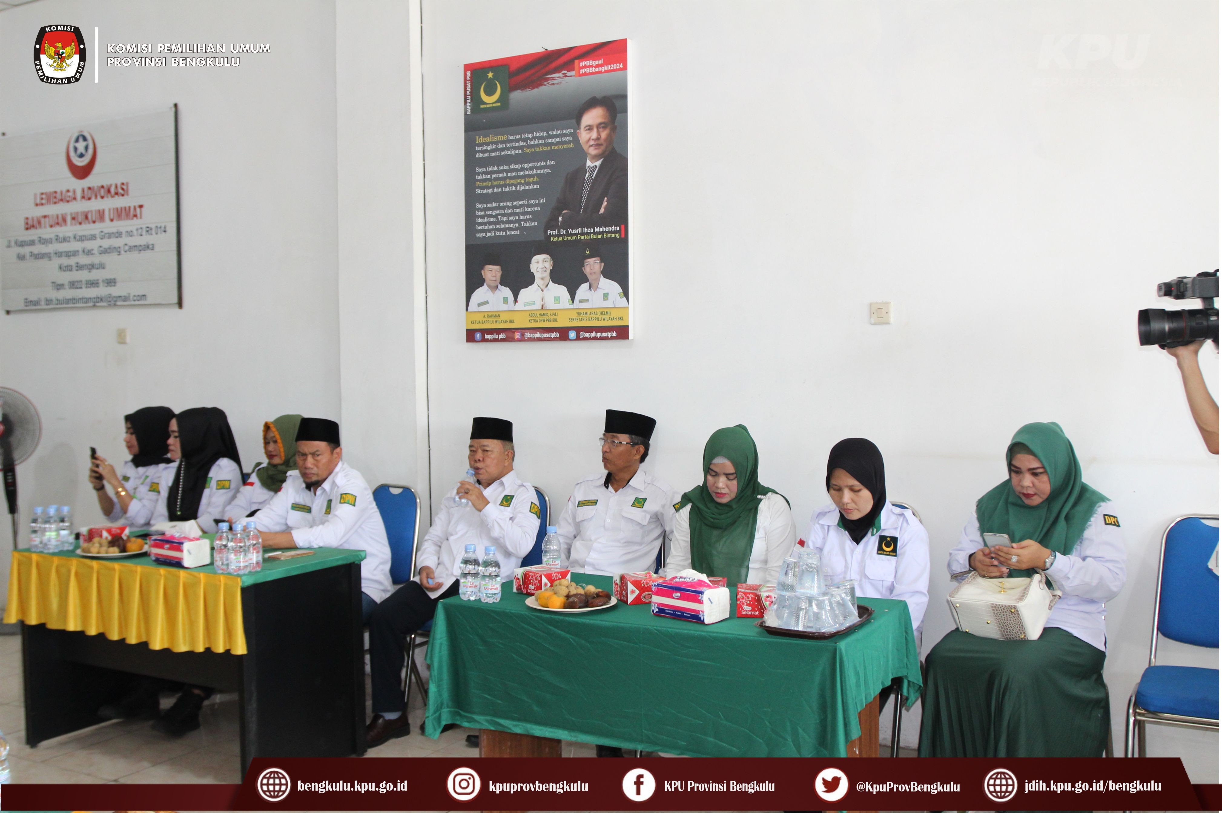 Bengkulu-bengkulu.kpu.go.id, Anggota KPU Provinsi Bengkulu Darlinsyah bersama Anggota KPU Provinsi Bengkulu Siti Baroroh serta jajaran Sekretariat KPU Provinsi Bengkulu dan Tim Pelaksana Kegiatan Verifikasi Partai Politik Peserta Pemilu 2024, yaitu Polda, Kesbangpol, Kejaksaan Tinggi dan Kanwil Kemenkumham Bengkulu mendatangi Sekretariat Partai Bulan Bintang (PBB) Tingkat Provinsi Bengkulu dalam rangka melaksanakan Verifikasi Faktual Kepengurusan Partai Politik, Minggu (16/10).