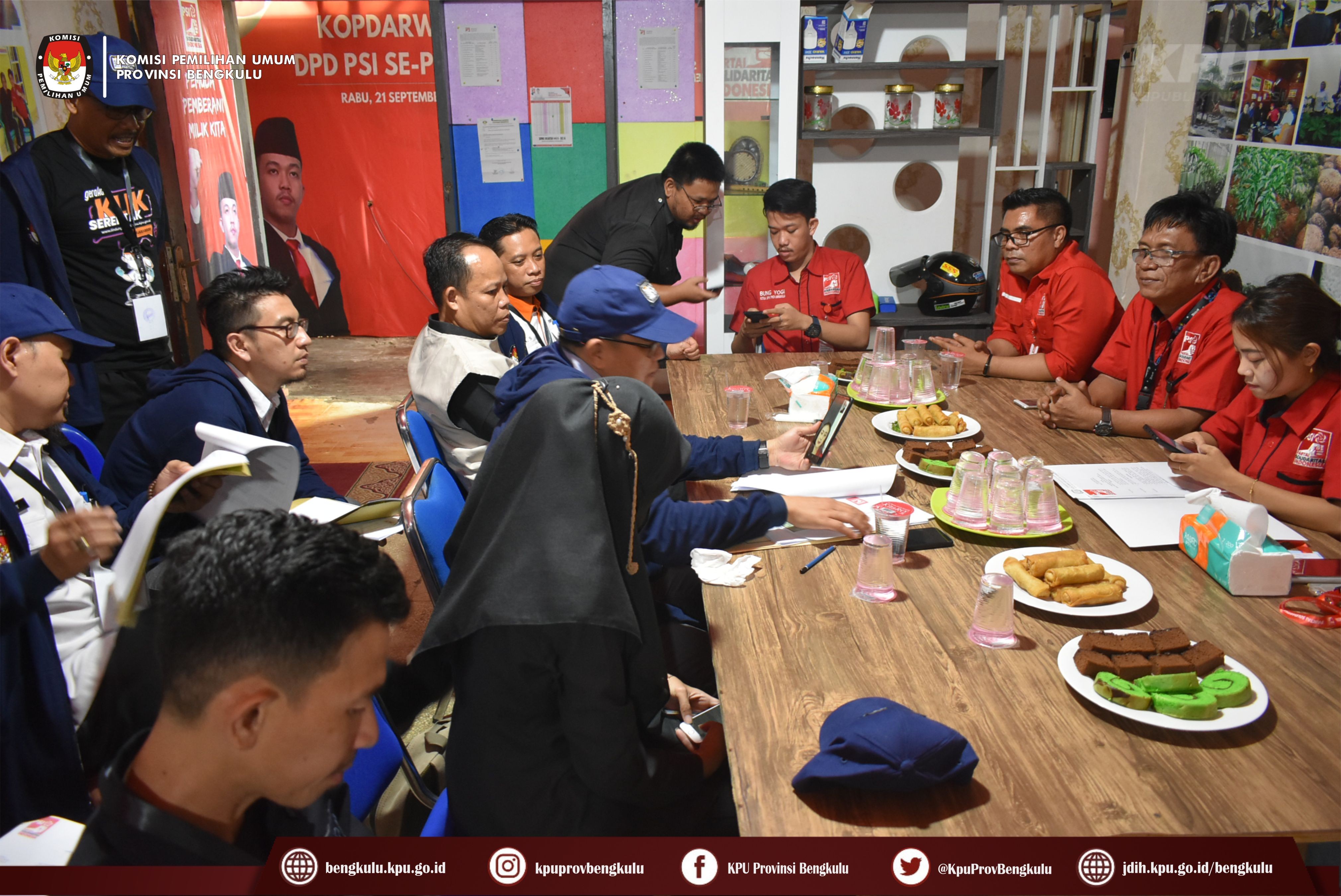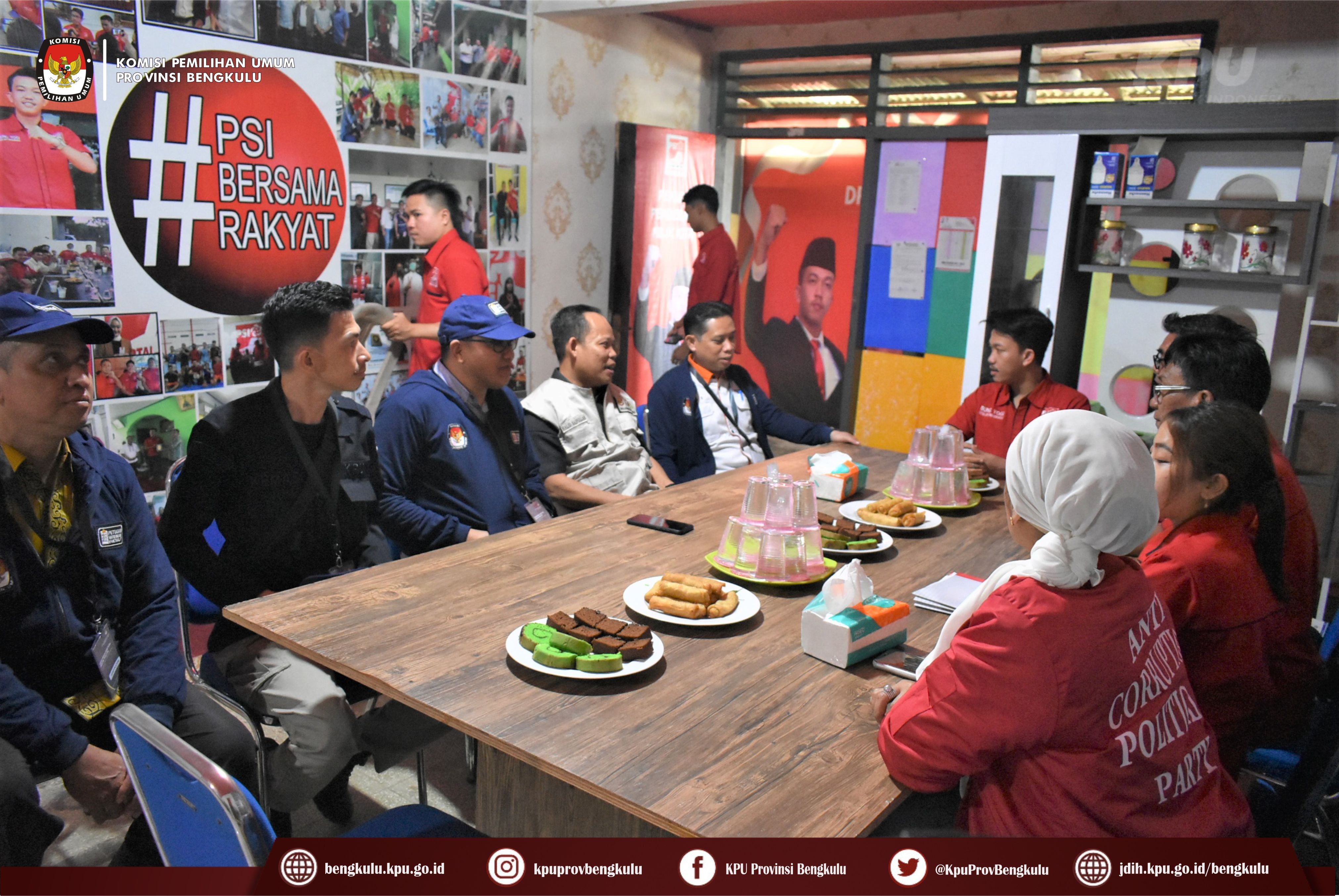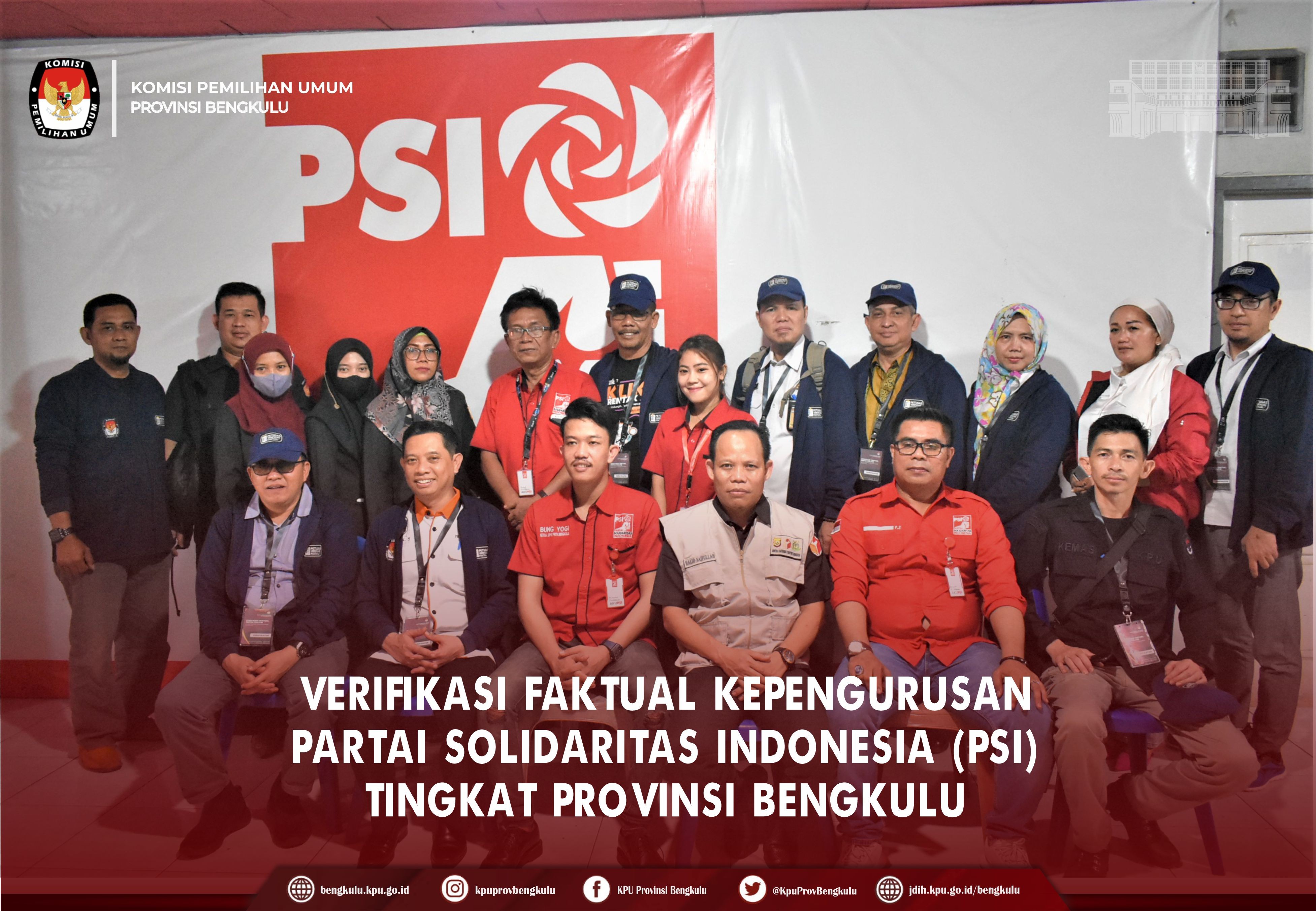 Bengkulu-bengkulu.kpu.go.id, Ketua KPU Provinsi Bengkulu Irwan Saputra bersama Anggota KPU Provinsi Bengkulu Emex Verzoni serta Sekretaris Kemas Mohammad Ajir dan Tim Pelaksana Kegiatan Verifikasi Partai Politik Peserta Pemilu 2024, yaitu Polda, Kesbangpol, Kejaksaan Tinggi dan Kanwil Kemenkumham Bengkulu mendatangi Sekretariat Dewan Pimpinan Wilayah Partai Solidaritas Indonesia (PSI) Tingkat Provinsi Bengkulu dalam rangka melaksanakan Verifikasi Faktual Kepengurusan Partai Politik, Senin (17/10).