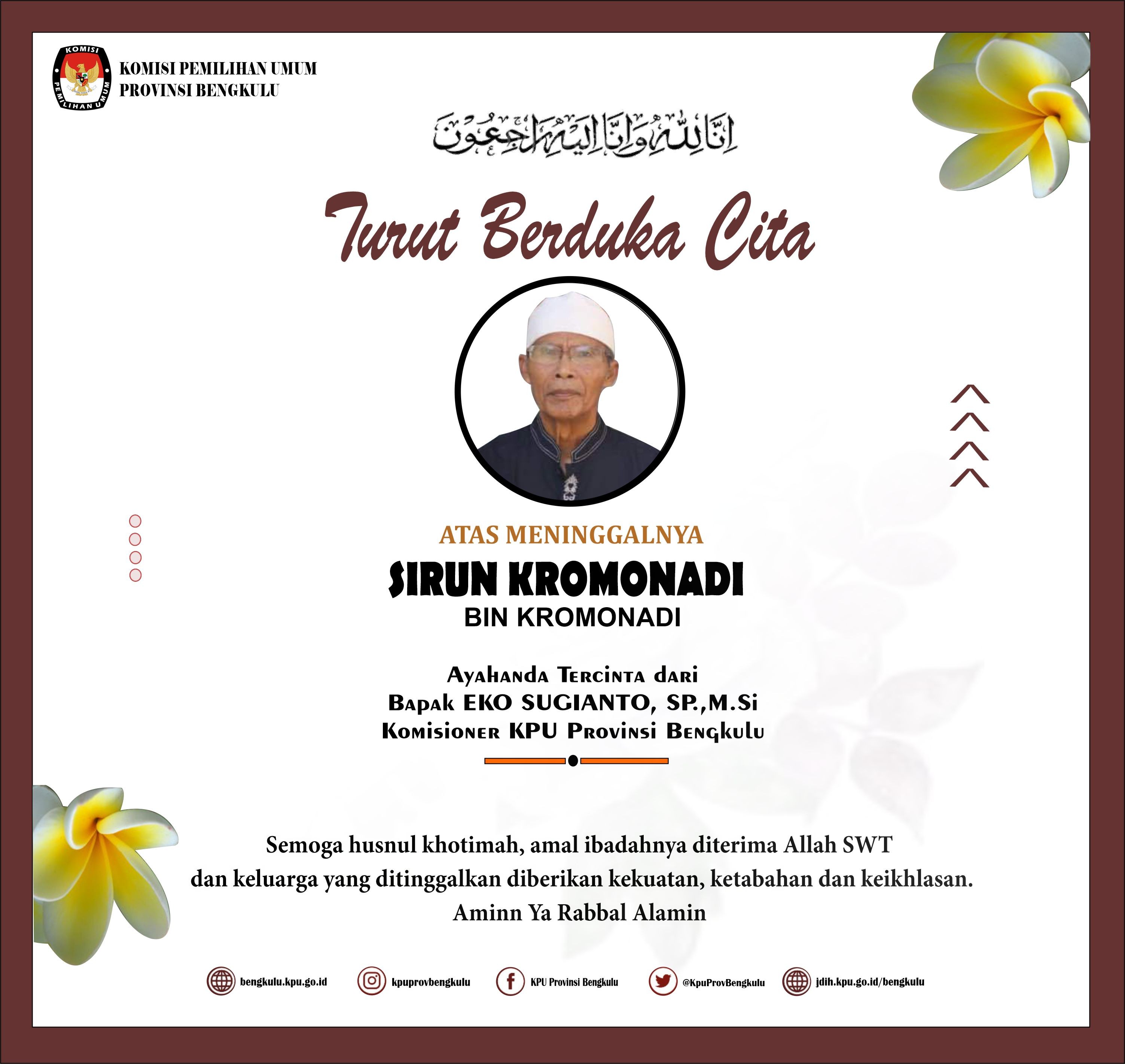 Dalam sambutannya, Sekretaris KPU Provinsi Bengkulu Kemas M Ajir menyampaikan ucapan selamat kepada pejabat yang telah diambil sumpah/janji semoga amanah dalam menjalankan tugas dengan terus meningkatkan kinerja secara jujur, profesional dan akuntabel. Selain itu, Kemas juga menambahkan bahwa dalam proses pergantian jabatan pada lingkungan kerja Pegawai Negeri Sipil itu adalah hal yang lumrah untuk itu kepada pejabat yang telah dilantik untuk bekerja dengan baik sesuai dengan tupoksinya.