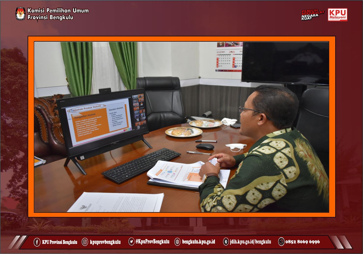 Ketua Divisi Teknis Penyelenggaran KPU Provinsi Bengkulu Emex Verzoni mengikuti Webinar Evaluasi Prinsip dan Urgensi Penataan Daerah Pemilihan Umum yang diselenggarakan oleh KPU Republik Indonesia secara daring pada Jum’at (10/12). Webinar ini diikuti oleh KPU Provinsi/KIP Aceh dan KPU Kabupaten/Kota Se-Indonesia. Webinar dibuka langsung oleh Anggota KPU RI Pramono Ubaid Tanthowi dan Evi Novida Ginting Manik. Kegiatan webinar yang dimoderatori oleh Heroik Pratama, menghadirkan beberapa narasumber, yakni Pemerhati Tata Kelola Pemilu, Prof. Ramlan Surbakti, Drs., MA.,Ph.D, Penulis Buku : Pemilu Indonesia Fakta, Angka, Analisis dan Studi Banding, Harun Husein, Peneliti pada Sindikasi Pemilu dan Demokrasi (SPD), Erik Kurniawan, Direktur Perkumpulan Untuk Pemilu dan Demokrasi (Perludem) Khoirunnisa Nur Agustyati.