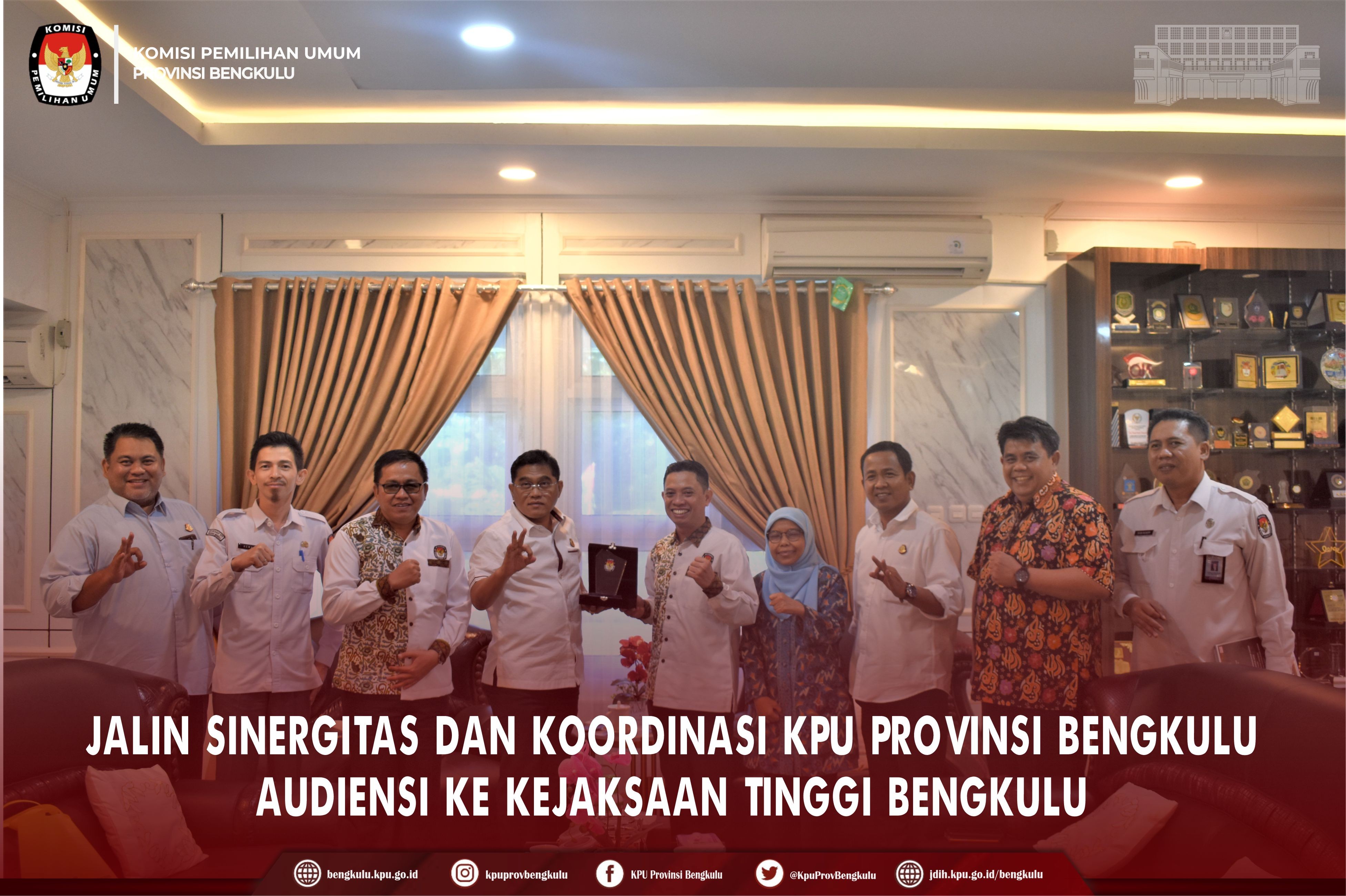 Bengkulu-bengkulu.kpu.go.id, Ketua KPU Provinsi Bengkulu Irwan Saputra didampingi Anggota Siti Baroroh, Darlinsyah, dan Emex Verzoni, serta Sekretaris Kemas M Ajir dan Kabag TPPPHHS Oktan Huzaeiry melaksanakan audiensi dengan Kejaksaan Tinggi Bengkulu, Kamis (7/7). Kedatangan KPU Provinsi Bengkulu disambut hangat Kepala Kejaksaan Tinggi Bengkulu Dr. Heri Jerman, SH.,MH dan jajaran di ruang kerjanya. Irwan menyampaikan terima kasih dan audiensi ini dalam rangka telah dimulainya tahapan Pemilu Tahun 2024 sejak dilaunching pada 14 Juni 2022. Ditambahkan Irwan bahwa audiensi ini guna membangun sinergitas dan koordinasi antar lembaga penyelenggara pemilu dan Kejaksaan Tinggi Bengkulu yang selama ini terjalin dengan baik serta mohon dukungan dalam menyukseskan pelaksanaan Pemilu Tahun 2024. Sementara itu, Heri Jerman mengucapkan terima kasih dan apresiasi kepada KPU Provinsi Bengkulu dan siap bekerjasama membangun komunikasi dan sinergitas dalam mendukung tahapan Pemilu Tahun 2024. Audiensi ditutup dengan penyerahan cinderamata dan PKPU 3 Tahun 2022.