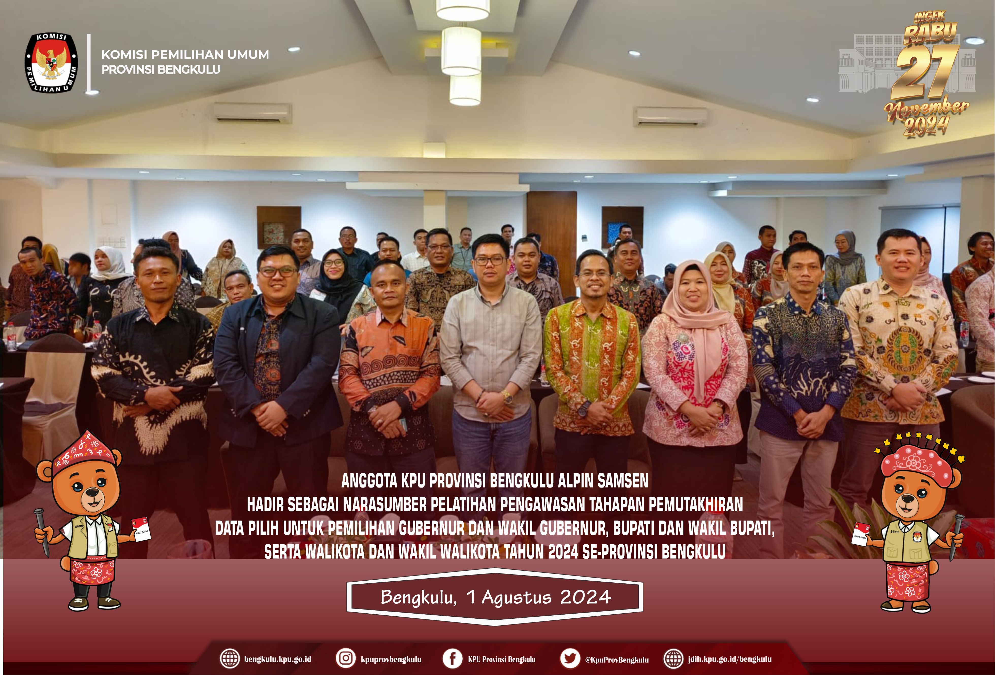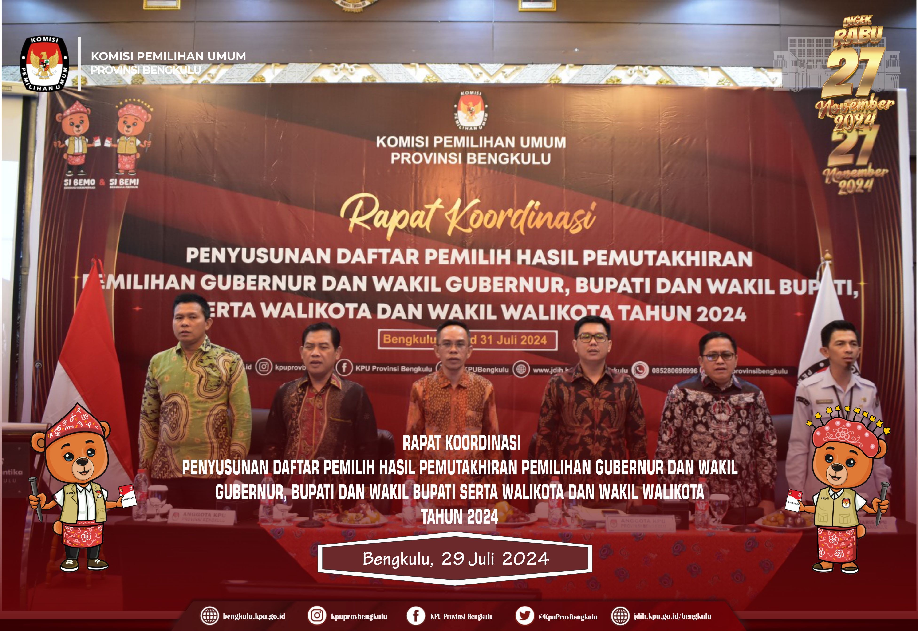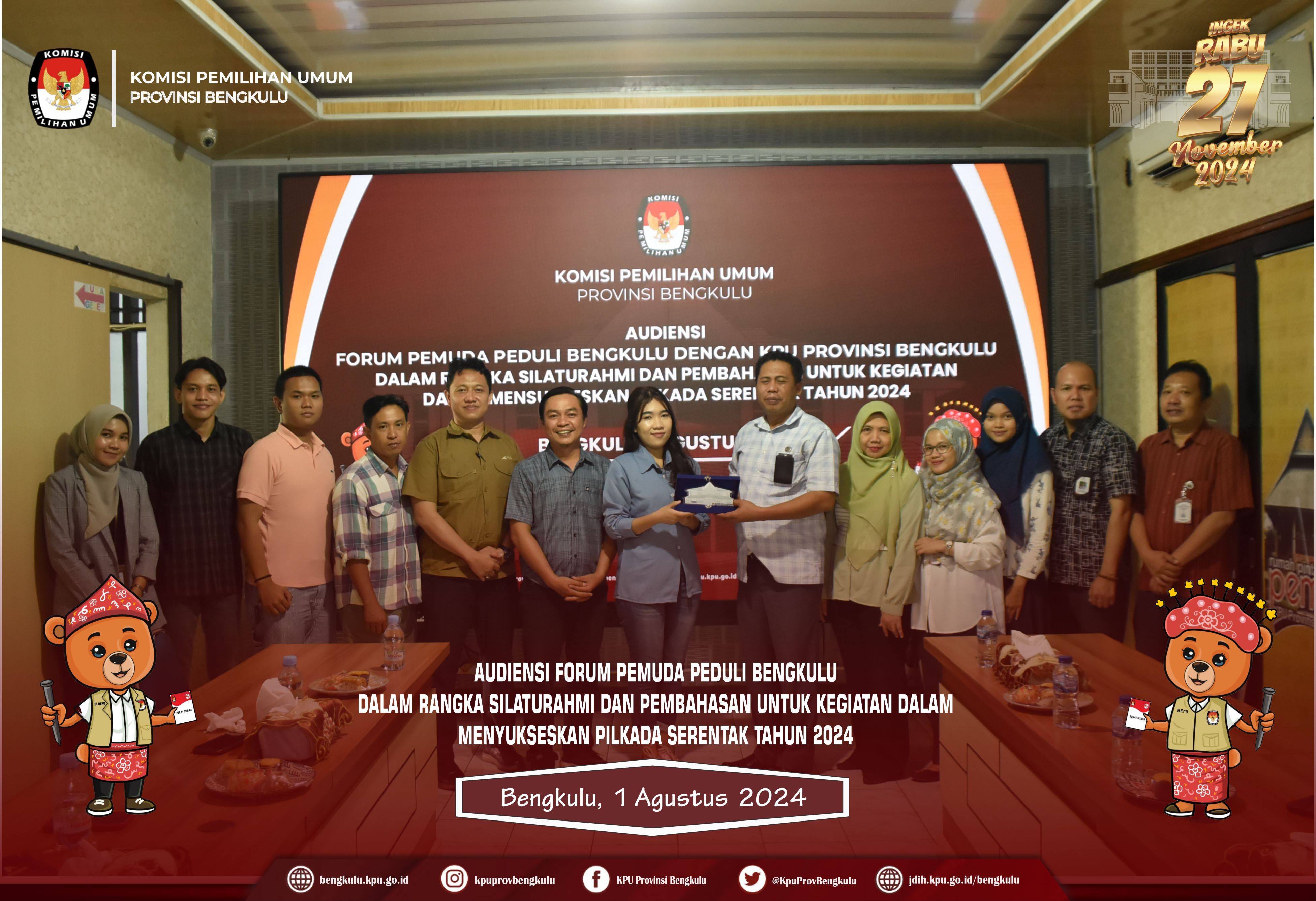 Bengkulu, bengkulu.kpu.go.id - Ketua KPU Provinsi Bengkulu Bengkulu Rusman Sudarsono, Anggota KPU Provinsi Bengkulu Alpin Samsen, Dodi Hendra Supiarso, Emex Verzoni dan Sarjan Efendi serta Sekretaris Kemas Mohammad Ajir membuka Rapat Koordinasi Peningkatan Kapasitas Penyusunan Produk Hukum serta Pengelolaan Jaringan Dokumentasi dan Informasi Hukum (JDIH) bagi KPU Provinsi dan KPU Kabupaten/Kota se-Provinsi Bengkulu dalam penyelenggaraan Pilkada Serentak 2024, Kamis (1/8/2024) di Hotel Mercure Bengkulu. Rusman menegaskan bahwa rapat koordinasi dilaksanakan dalam rangka meningkatkan pemahaman dan pengetahuan mengenai penyusuan produk hukum dan pengelolaan JIDH yang baik sesuai dengan standar pengelolaan JDIH KPU RI. Untuk itu, Rusman meminta kepada seluruh peserta untuk mengikuti kegiatan ini dengan serius dan sungguh-sunggu. Acara dilanjutkan dengan Penyampaian materi dari Biro Hukum Bagian Perundang-undangan dan Informasi Hukum Setjen KPU RI Evi Yulianda dan Khalisa Magfira Putri. Klaisa menjelaskan materi Teknik Penyusunan Keputusan di Lingkungan KPU, KPU Provinsi dan KPU Kabupaten/Kota sedangkan Evi menjelaskan materi Pengelolaan Jaringan Dokumentasi dan Informasi Hukum (JDIH). Emex dalam arahannya menegaskan bahwa perlu dilakukan langkah konkrit dalam penataan dan pengelolaan JDIH KPU Provinsi dan JDIH KPU Kabupaten/Kota se-Provinsi Bengkulu yang baik dan sesuai dengan standar KPU RI. Hal itu ditambahkan Emex dilakukan dalam rangka mendukung KPU RI yang selama 5 (lima) tahun berturut-turut mendapatkan pengelolaan JDIH terbaik nasional sehingga harus ada upaya lebih JDIH di setiap satker lebih tertib dan berkesinambungan dalam rangka wujud keterbukaan infromasi kepada publik mengenai regulasi tahapan pemilu maupun pemilihan. Pengelolaan tersebut bukan hanya melalui website resmi JDIH tetapi media sosial harus dilakukan dengan menampilkan konten-konten kreatif dan inovatif. Sarjan menyampaikan usulan agar JDIH lebih aktif dan meminta KPU Provinsi Bengkulu untuk memantau dan mensupervisi pengelolaan JDIH di setiap satker. Hadir dalam kegiatan, Ketua, Anggota, Sekretaris, Kasubbag dan Operator JDIH KPU Kabupaten/Kota se-Provinsi Bengkulu