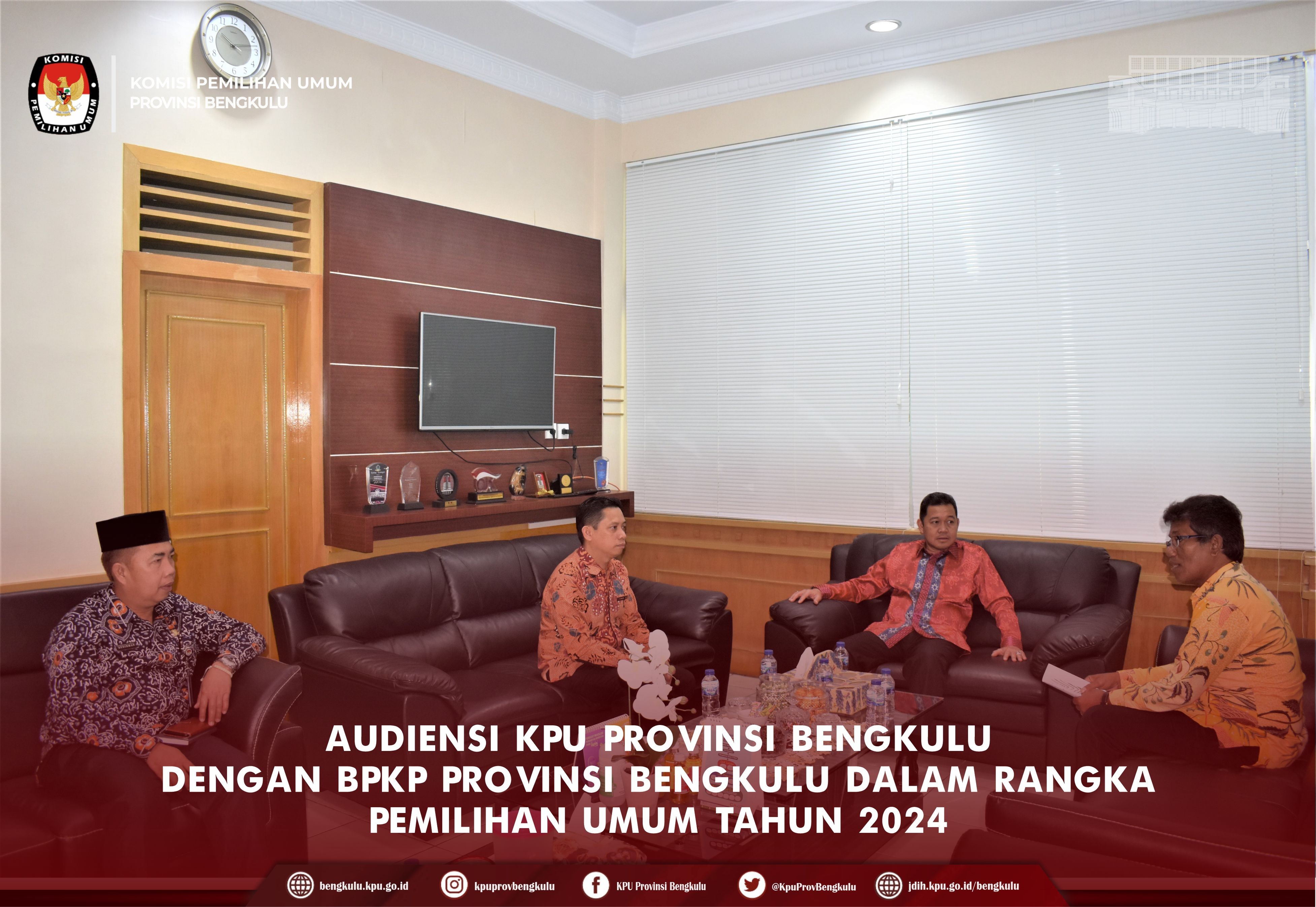 Bengkulu-bengkulu.kpu.go.id, Ketua KPU Provinsi Bengkulu Irwan Saputra bersama Anggota KPU Provinsi Bengkulu Siti Baroroh, Darlinsyah, Emex Verzoni, dan Irna Riza Yuliastuty serta Sekretaris Kemas Mohammad Ajir membuka Rapat Pleno Rekapitulasi Hasil Verifikasi Administrasi Perbaikan Kesatu Dukungan Minimal Pemilih Bakal Calon Perseorangan Anggota Dewan Perwakilan Daerah (DPD) RI Daerah Pemilihan Provinsi Bengkulu bertempat di RPP KPU Provinsi Bengkulu, Jum’at (3/2/2023).