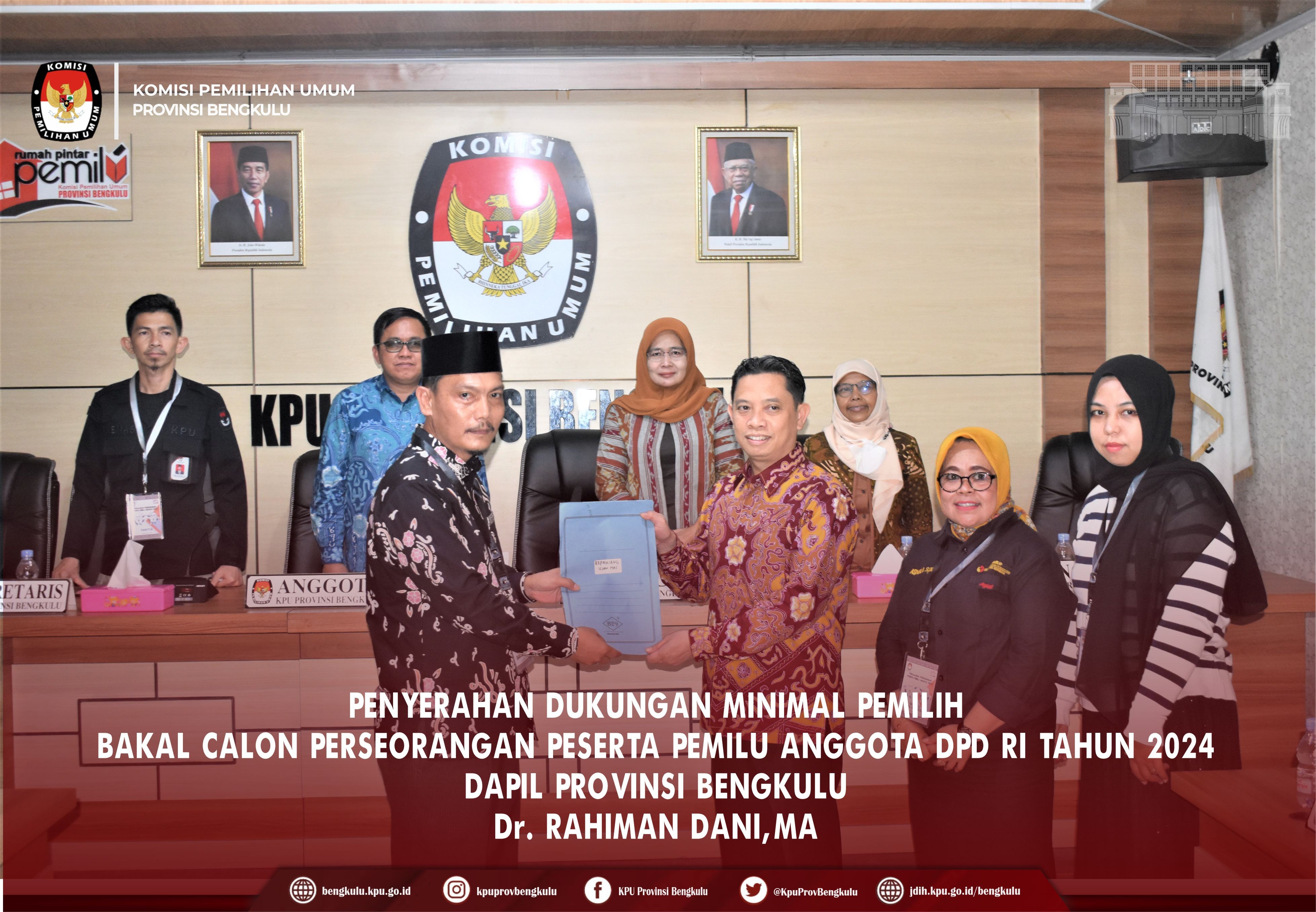 Hadir dalam rapat pleno dari Unsur Forkopimda, yaitu Gubernur, DPRD Provinsi, Polda, DPRD, Kejaksaan Tinggi, Pengadilan Tinggi, BIN Daerah, Danlanal, dan Danrem 041 Gamas Bengkulu, KIP, KPID, Tim Pelaksana Kegiatan Verifikasi Partai Politik Calon Peserta Pemilu Tahun 2024 meliputi Kejati, Kemenkumham, Kesbangpol dan Polda Bengkulu, Bawaslu Provinsi, Parpol Calon Peserta Pemilu 2024, yaitu PKN, Hanura, Gelora, Buruh, Garuda, PBB, Ummat, Perindo, dan PSI, serta Ketua, Anggota, Sekretaris, Kasubbag Teknis Penyelenggaraan Pemilu Partisipasi dan Hubungan Masyarakat serta Operator Sipol KPU Kabupaten/Kota se-Provinsi Bengkulu.